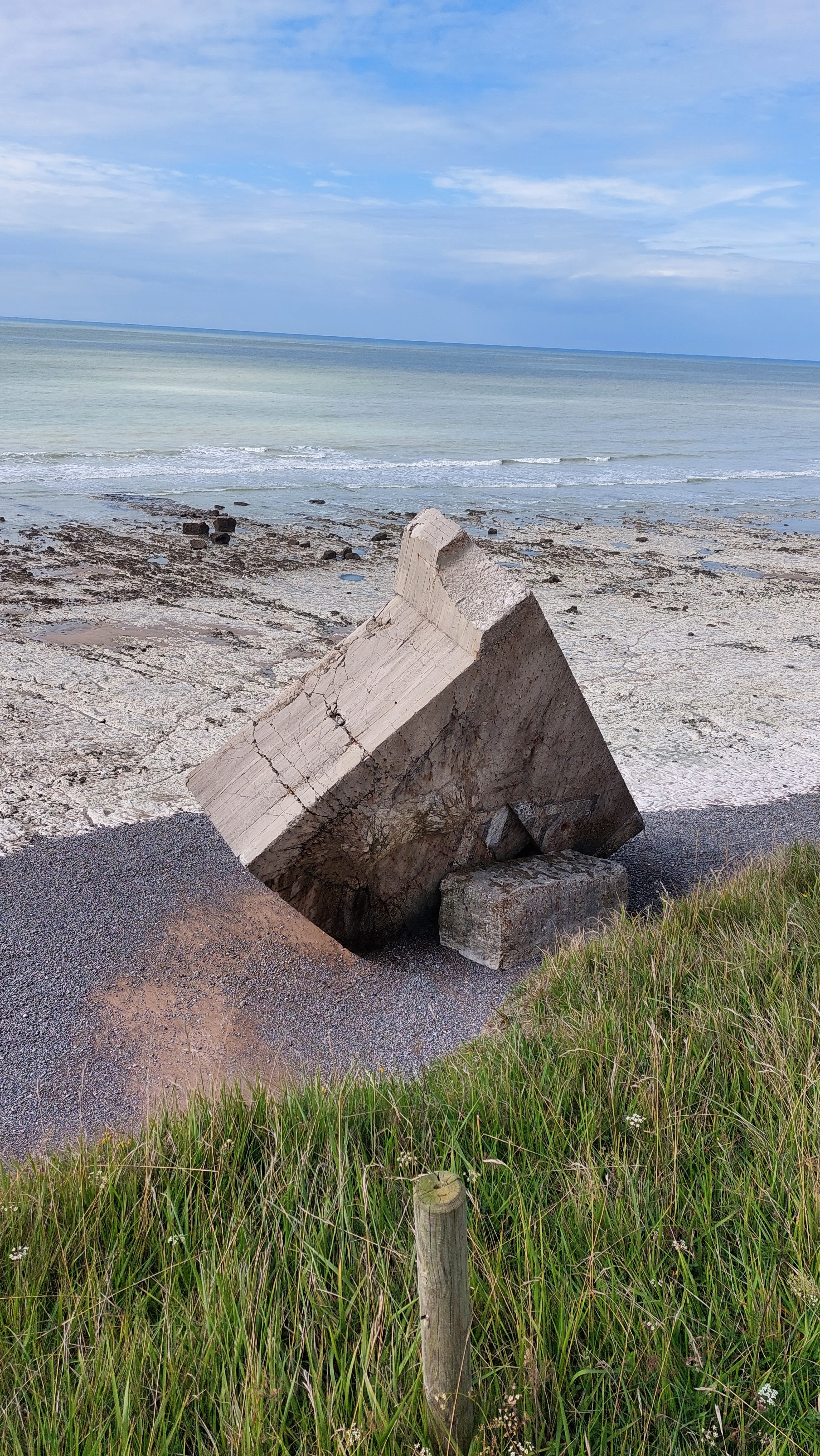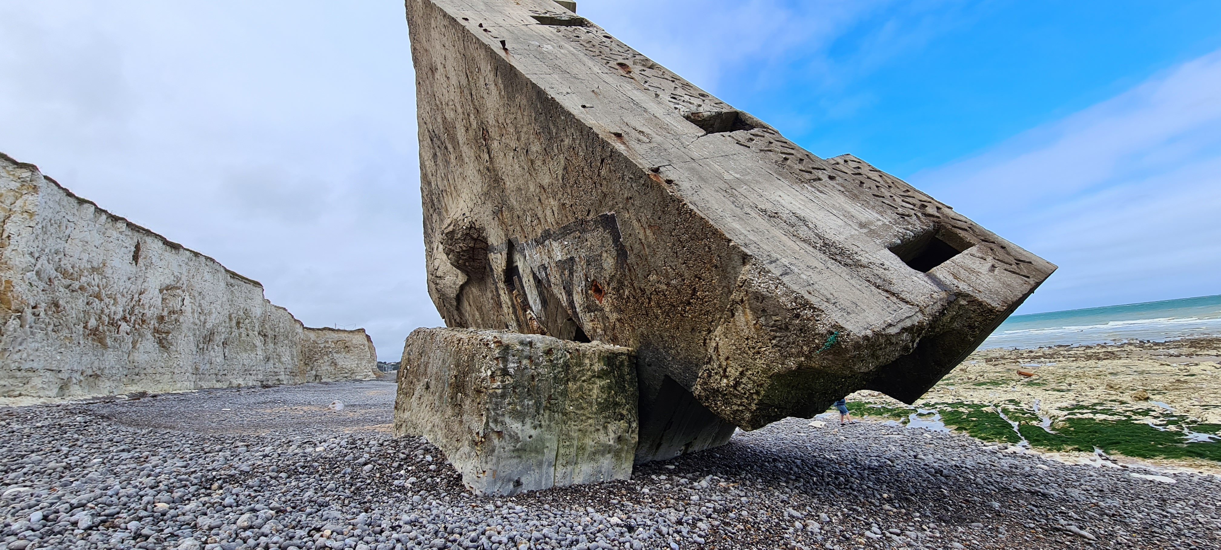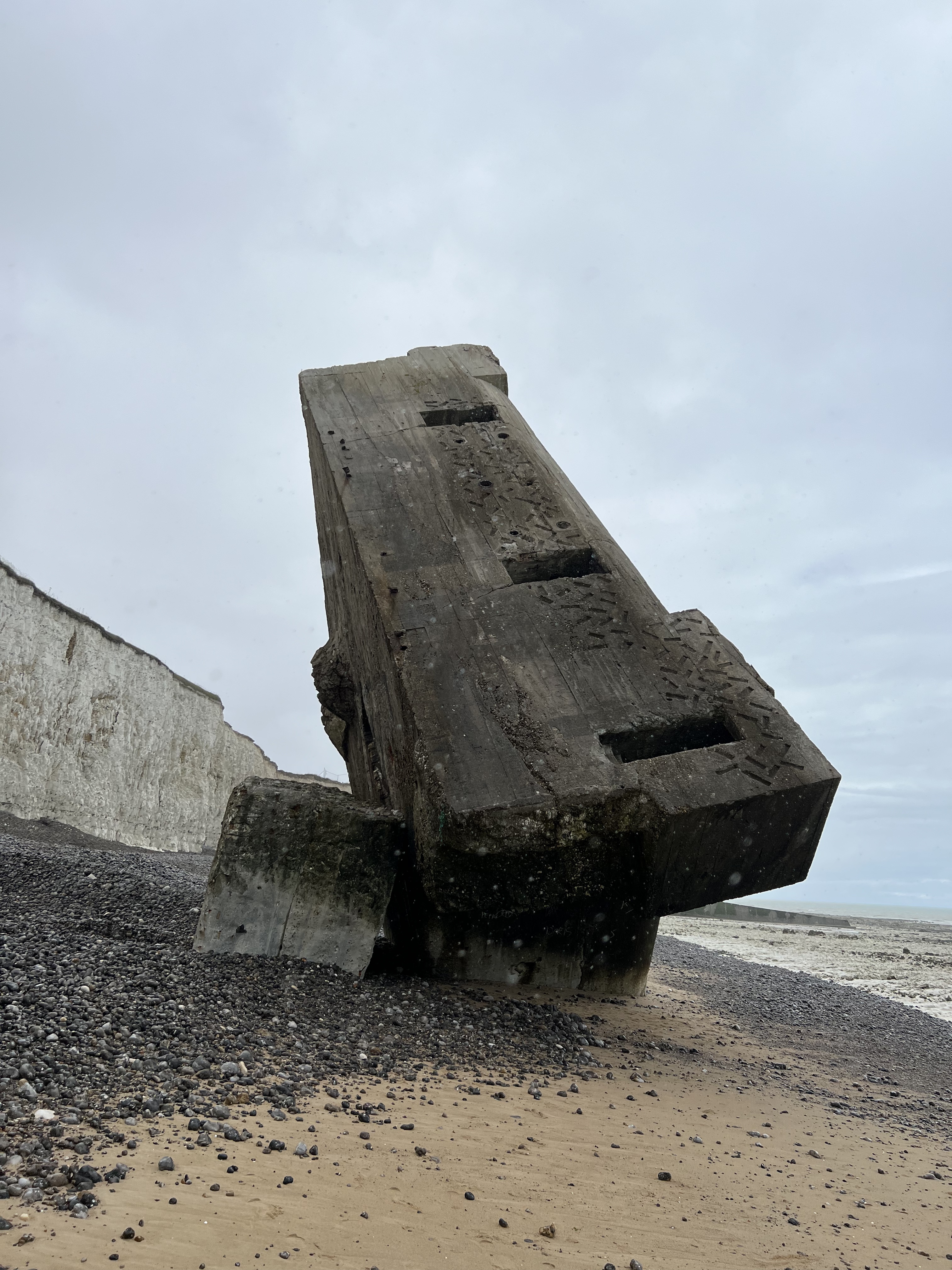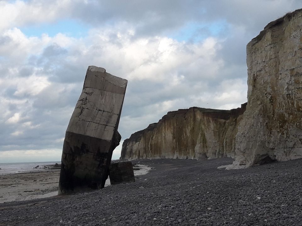 Bunker tombé sur la plage de Pourville sur mer le visiter est possible mais attention ne pas oublier de rester loin des falaises en cas de nouveaux éboulements Danger ⚠️⛔