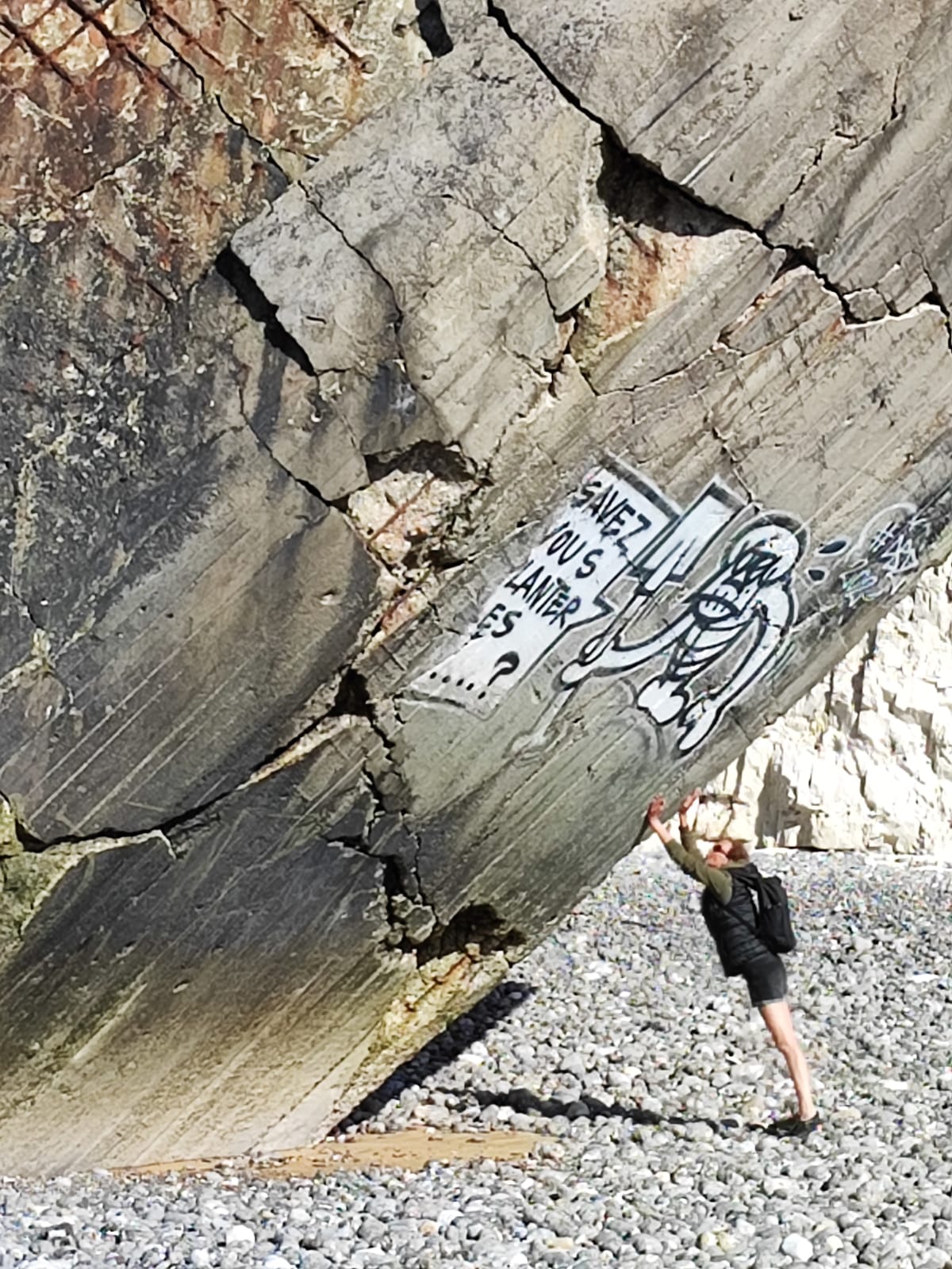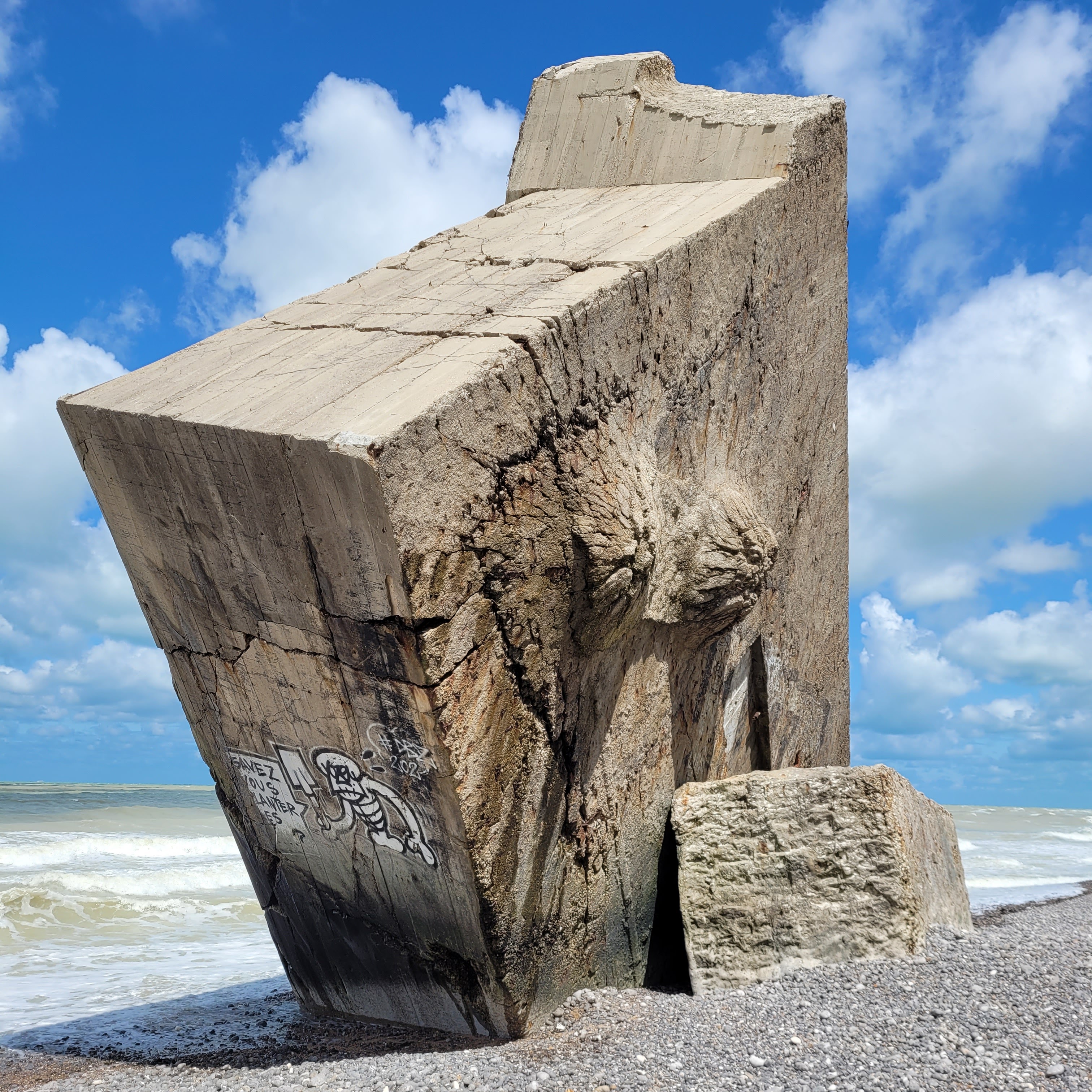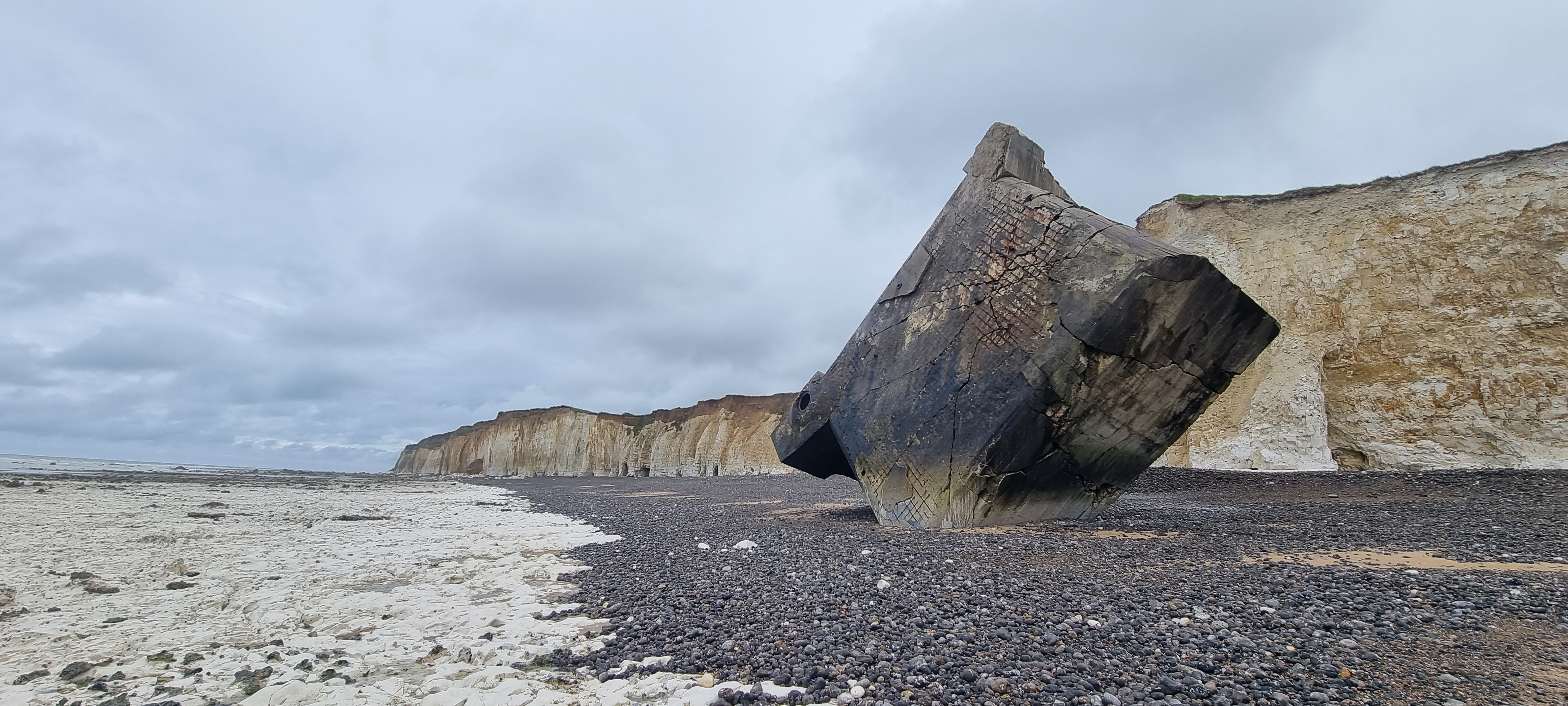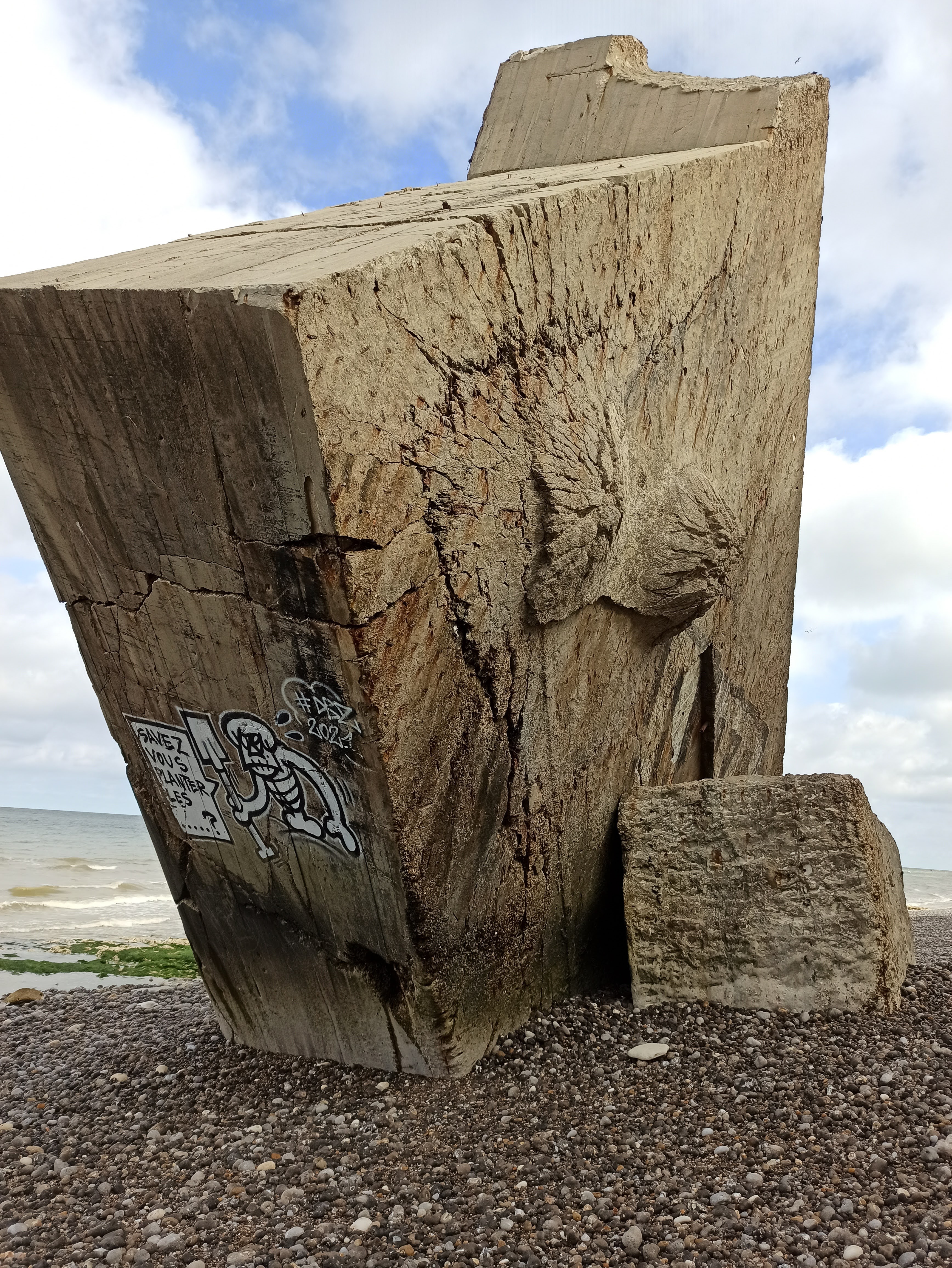 Bunker tombé sur la plage de Pourville sur mer le visiter est possible mais attention ne pas oublier de rester loin des falaises en cas de nouveaux éboulements Danger ⚠️⛔