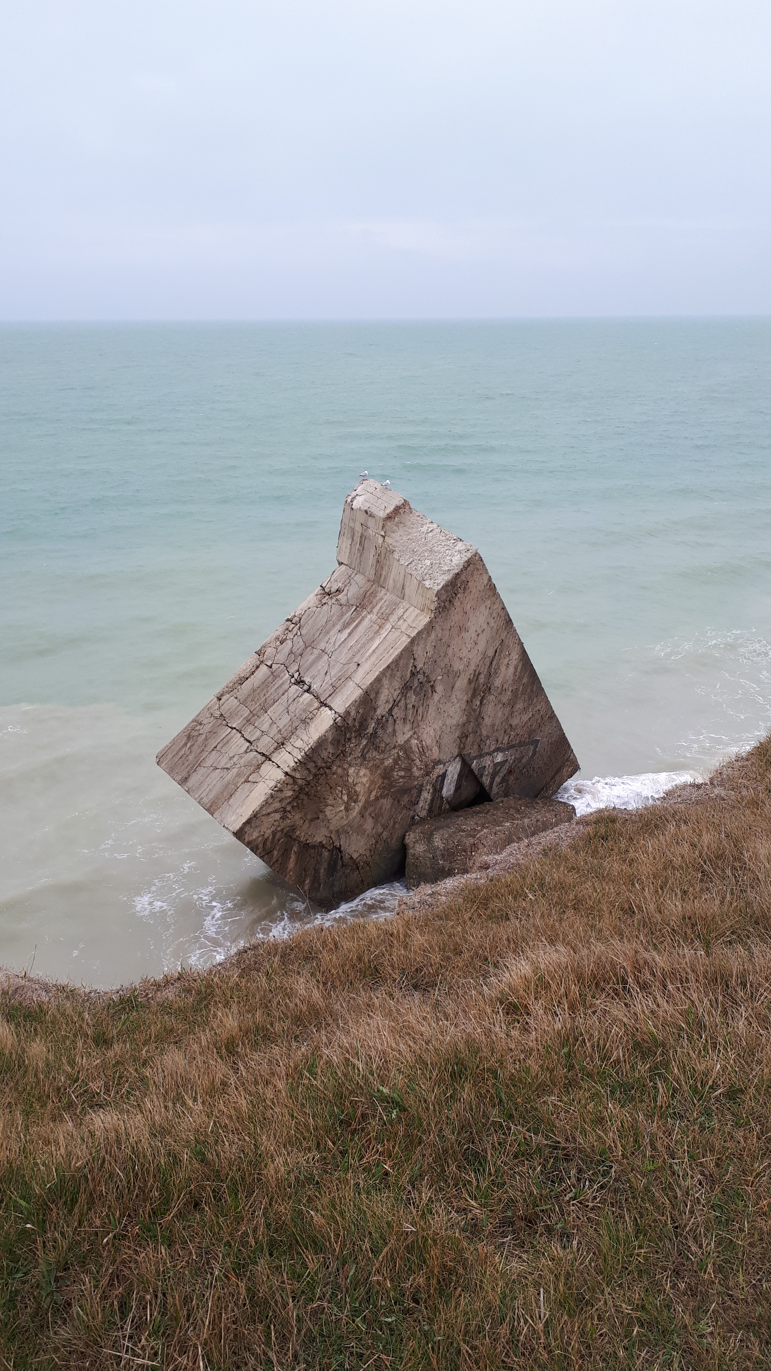 Ce bunker est tombé de la falaise suite à l'érosion de la mer sur les falaises.