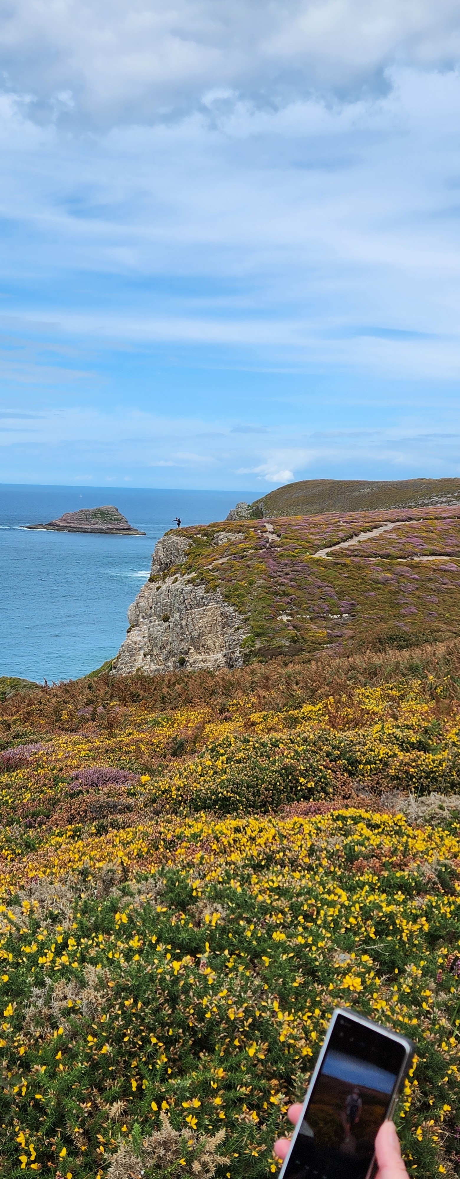 Un rêve au bord de la mer. De superbes baies, des rochers de surf, de superbes sentiers de randonnée à travers les landes avec des ajoncs jaune vif.