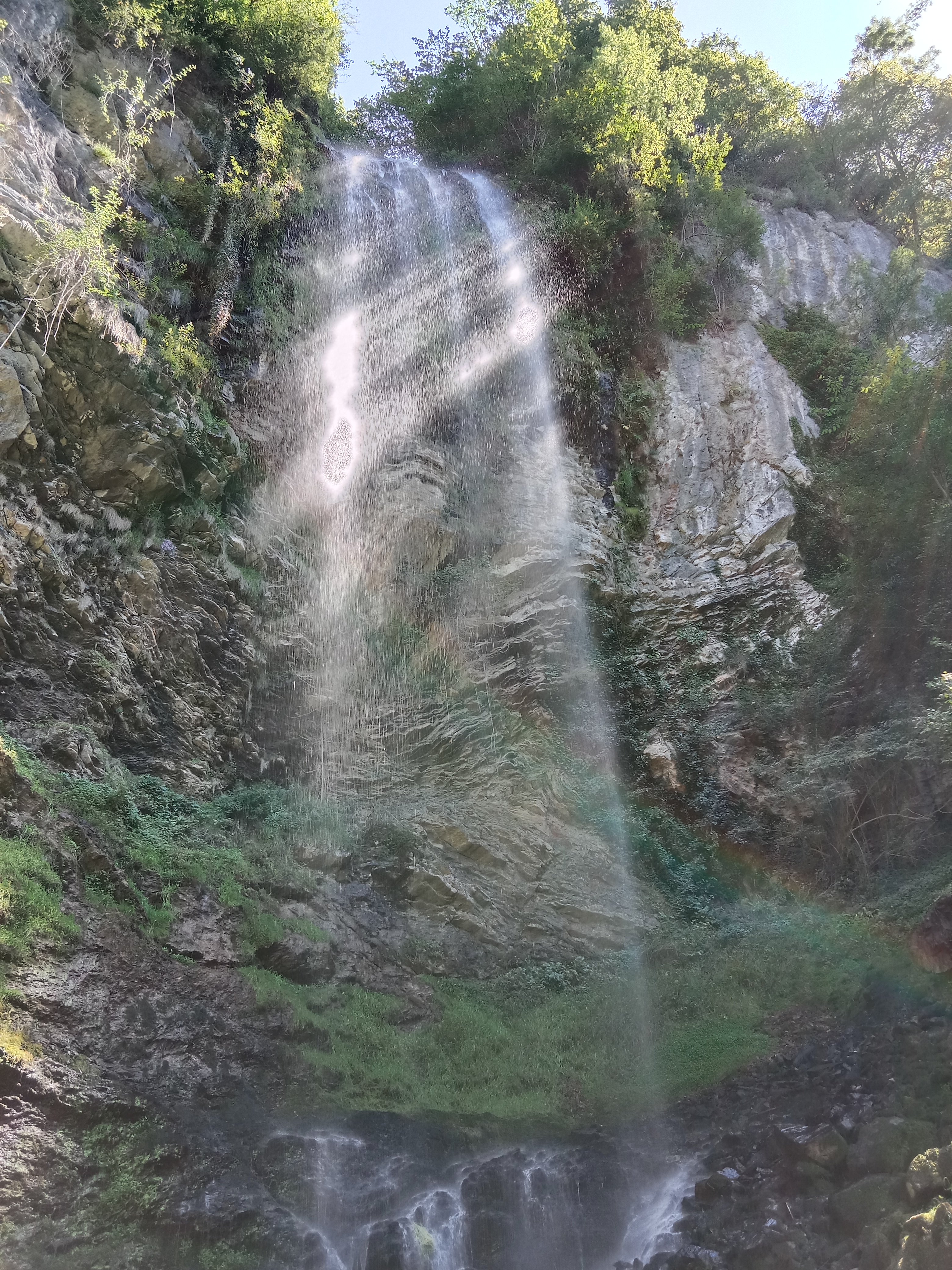 Ne à proximité de ce lieu je le trouve, bien sûr, idyllique. Des centaines de fois j’y suis passé avec à chaque fois la même admiration pour cette création de la nature qui a été aidée par l’homme. La cascade est une chute d’eaux qui proviennent d’Alzen où à l’origine il y avait un lac naturel que l’homme a vidé en créant un tunnel dans la roche. Montez au dessus de la cascade et vous découvrirez outre un paysage à couper le souffle, cet étrange conduit que vous pourrez emprunter. Vous serez surpris par ce que nos ancêtres ont pu faire!