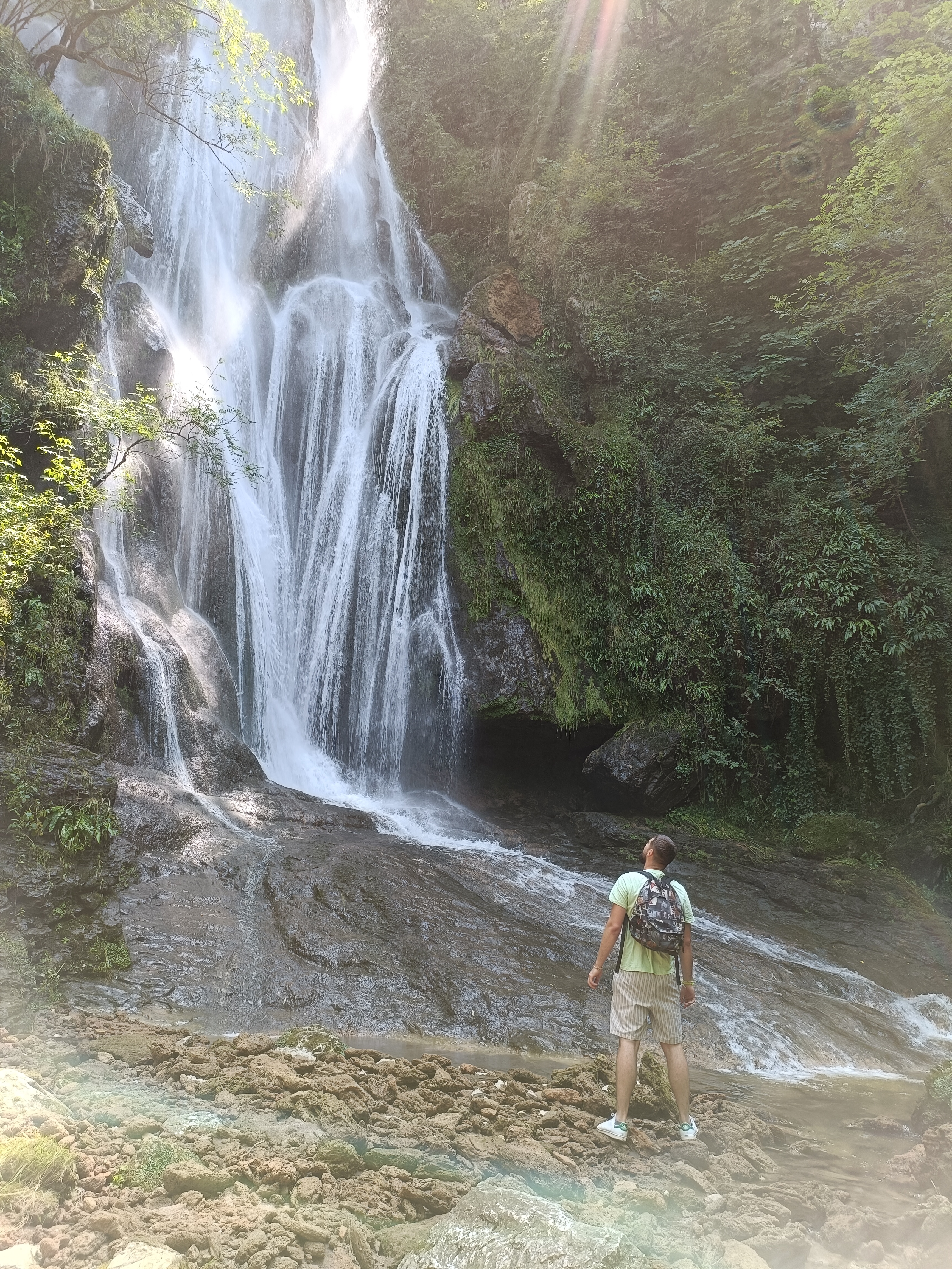 La marche d'accès est sympa ( attention passages ardus à déconseiller aux personnes âgées). La cascade en elle même avait un faible débit en ce mois de juillet et n'était donc pas très spectaculaire. Jolie ballade quand même. Le chemin de retour au village est plus facile.