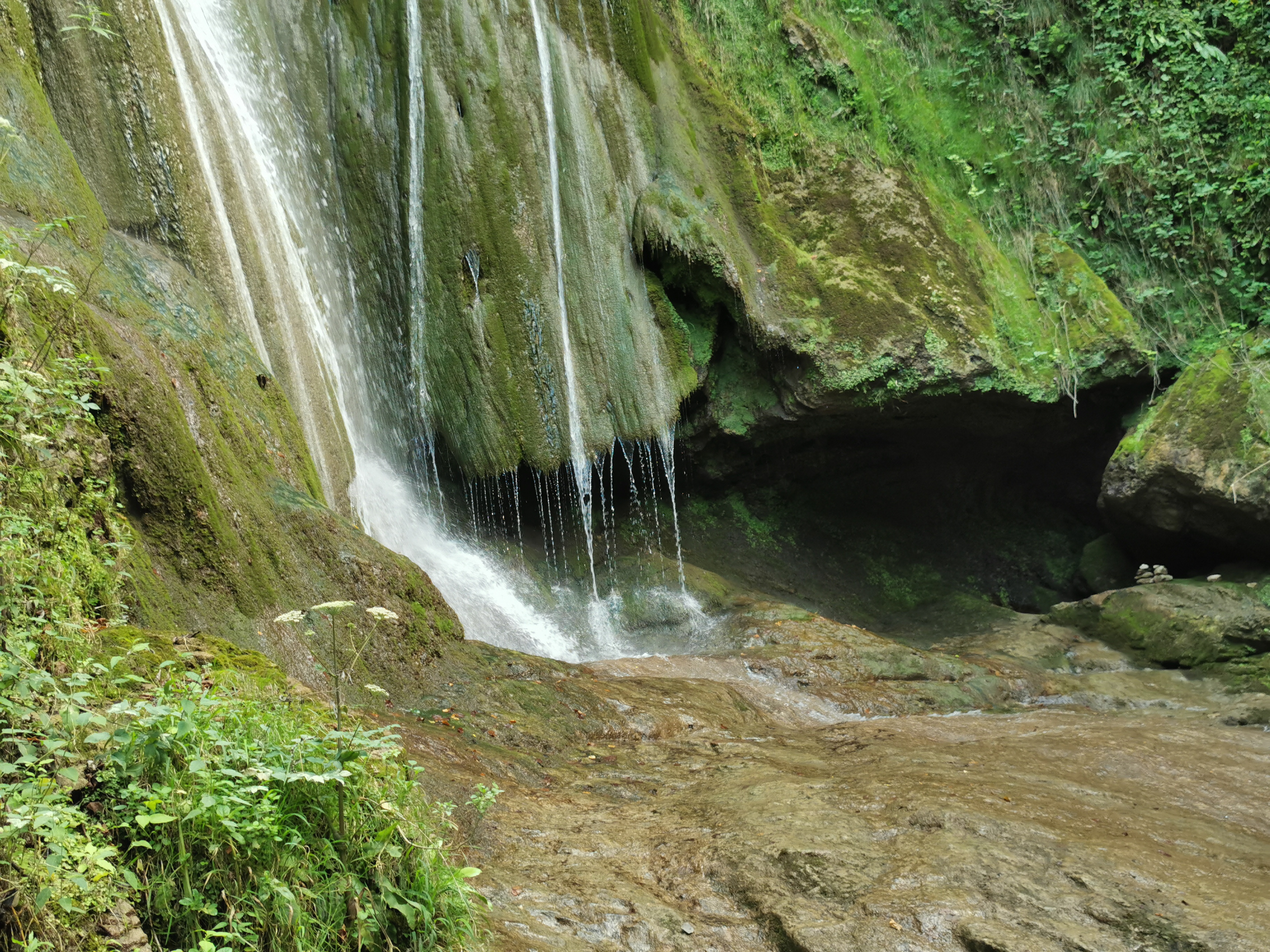 Jolie cascade mais fin juillet il n y avait que très peu d eau donc un filet au niveau de la cascade. De plus la cascade est protégée donc impossible de se baigner les pieds et un peu plus bas, près du pont une affiche sur un arbre vous prie, afin de protéger les lieux, de ne pas marcher dans l eau. Je n avais pas vu cela dans les avis mais je le comprends tout à fait donc nous avons fait une petite balade agréable avec 3 enfants (3, 6 et 8 ans) mais moins magique que prévue. La poussette ne passera pas partout et sera encombrante