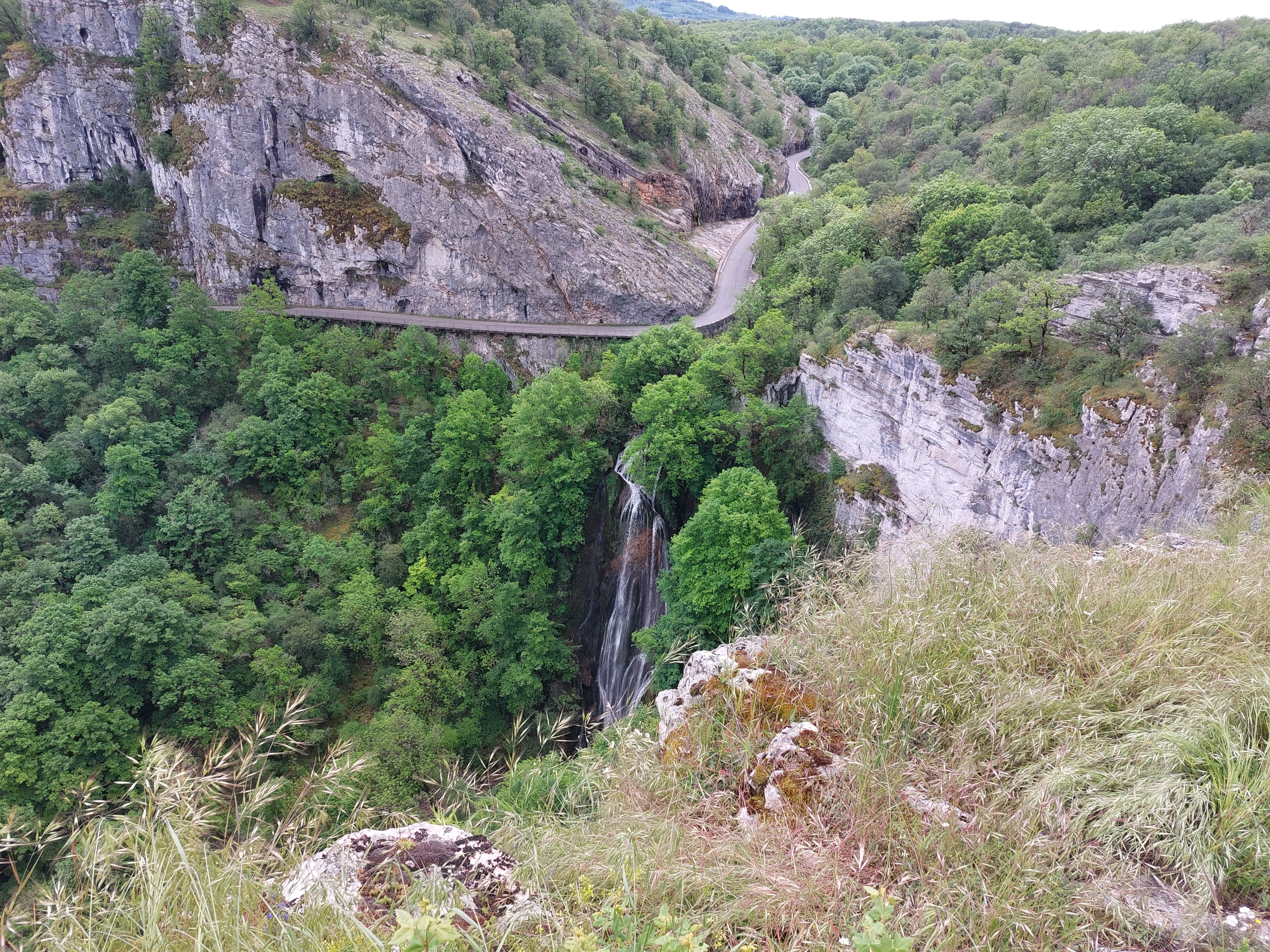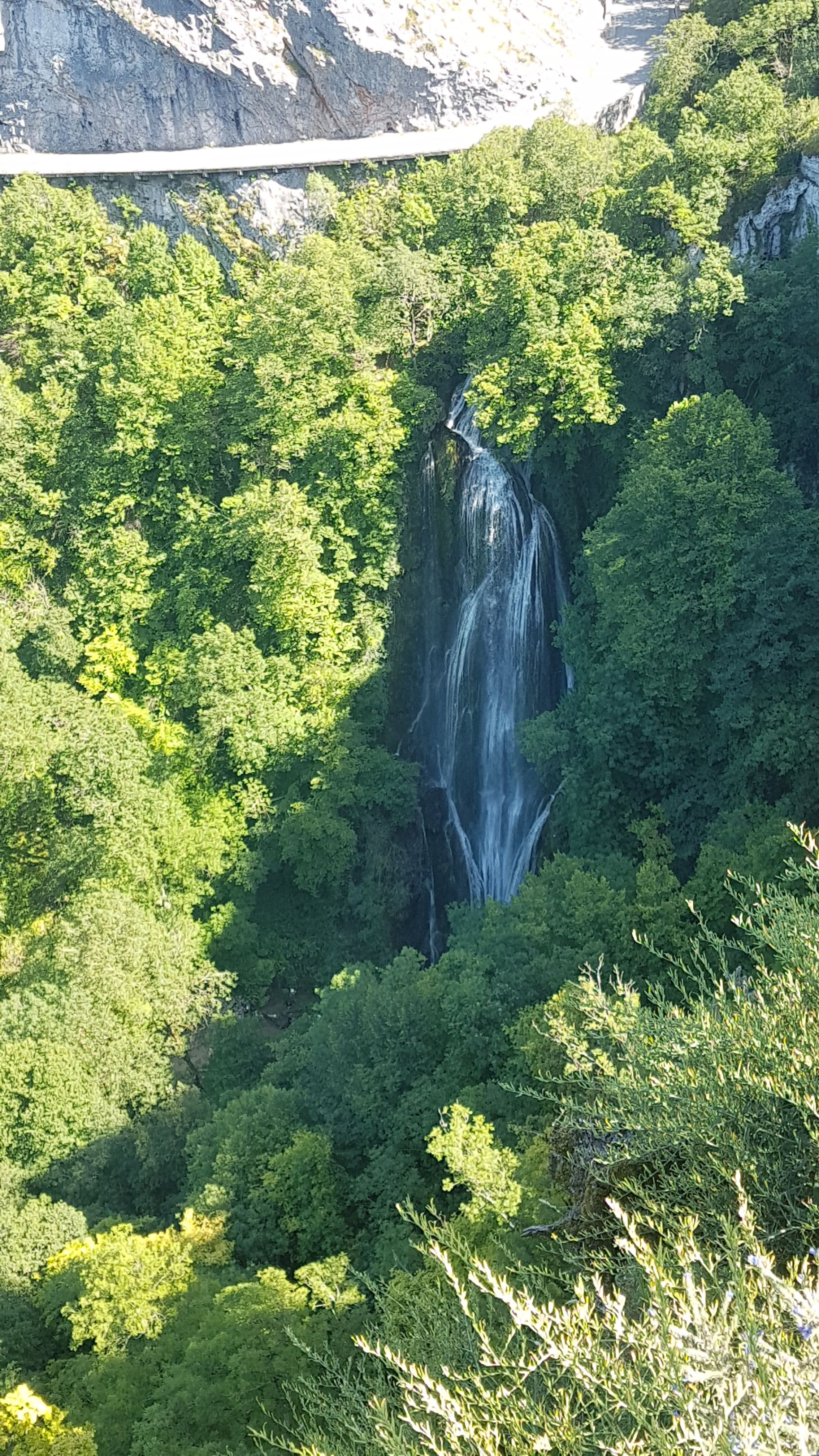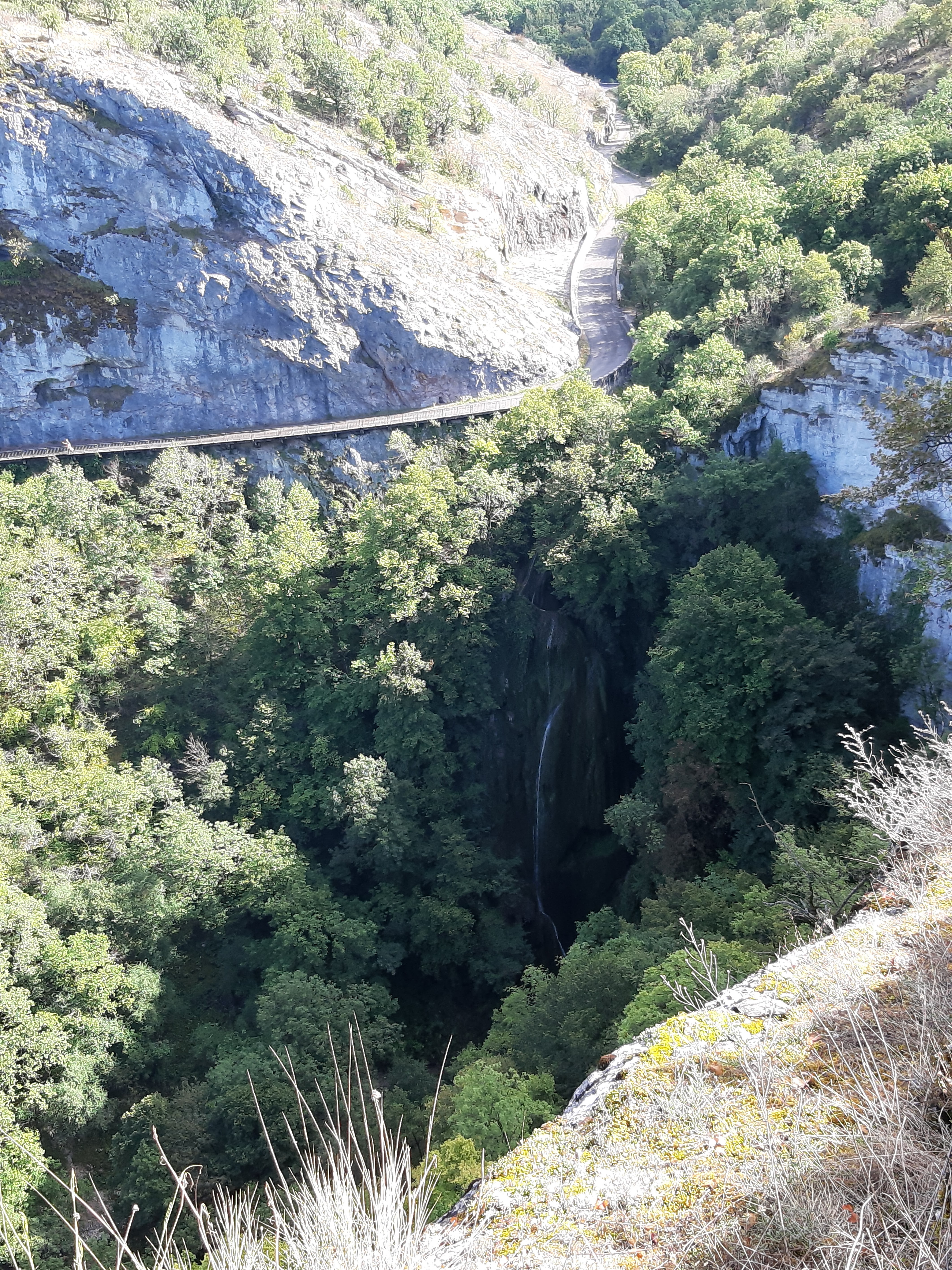 Le point de vue est superbe. Un chemin vous amène jusqu'à une plateforme aménagée, surplombant la vallée et la rivière, d'où un magnifique panorama s'étend devant vous. Malheureusement pas de cascade en cette période de sécheresse. La signalétique pour y accéder est défaillante, heureusement le GPS a pallié au problème. Un minuscule parking au bout du chemin vous attend. En hiver et au printemps cet endroit doit être très beau. Je vous conseillerais alors de descendre dans la vallée pour profiter du spectacle. Il y a 1/2 h de marche pour descendre. Certainement un peu plus pour remonter 😂. Si vous n'avez pas le courage de faire l'aller-retour à pieds, vous pourrez la découvrir de la vallée.