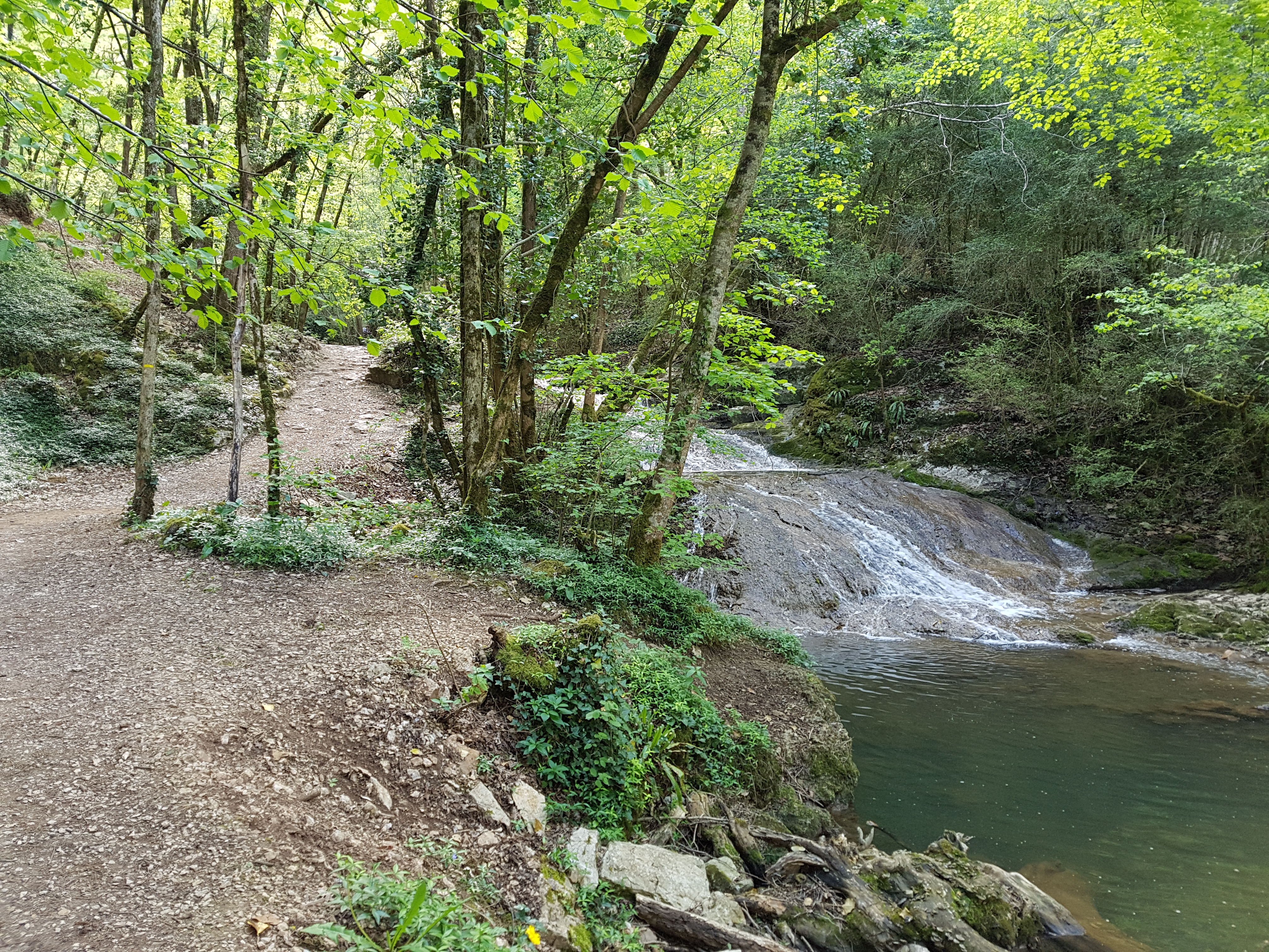 Même si il n’y avait que très peu d’eau, c’est très joli ! Le petit sentier qui part du village est vraiment sympa, ombragé et accessible. Prévoir quand même des chaussures adaptées (ça glisse !). Nous avons poursuivi vers le Château des Anglais, le reste de la promenade est superbe !