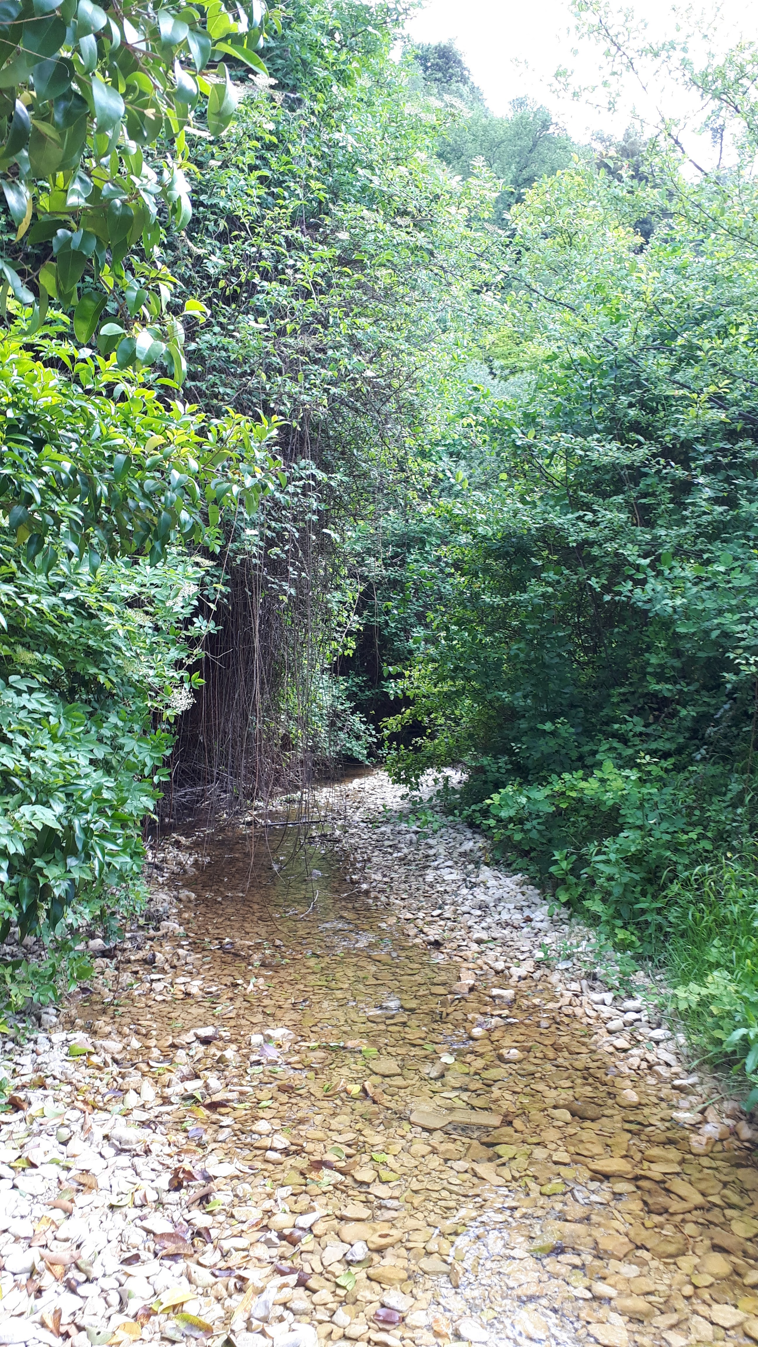 Balade à la recherche de la cascade pendant 10 minutes à pied depuis le parking et au bord du ruisseau. Très sympa même si le débit de la rivière est bas.