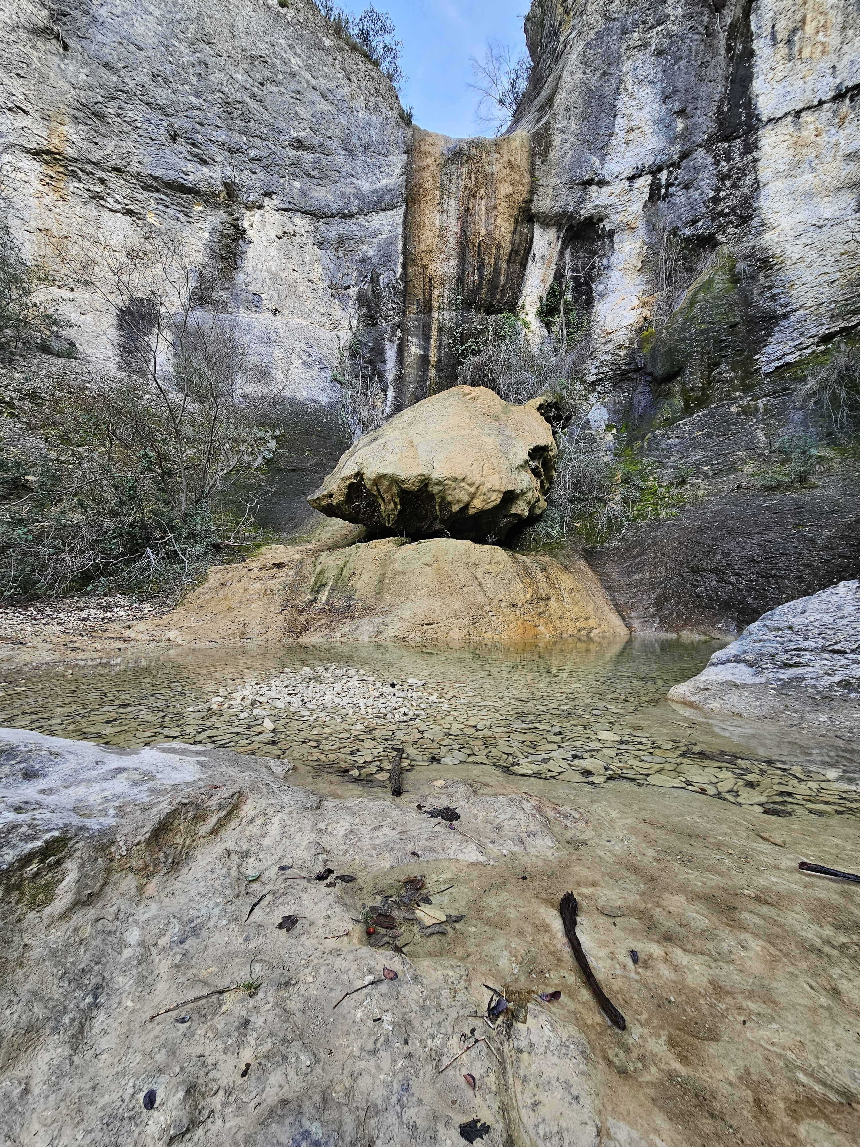 La cascade ne coule pas ! Seulement une fois en hiver s'il a plu pendant des semaines ! Pour la baignade, passez votre chemin !