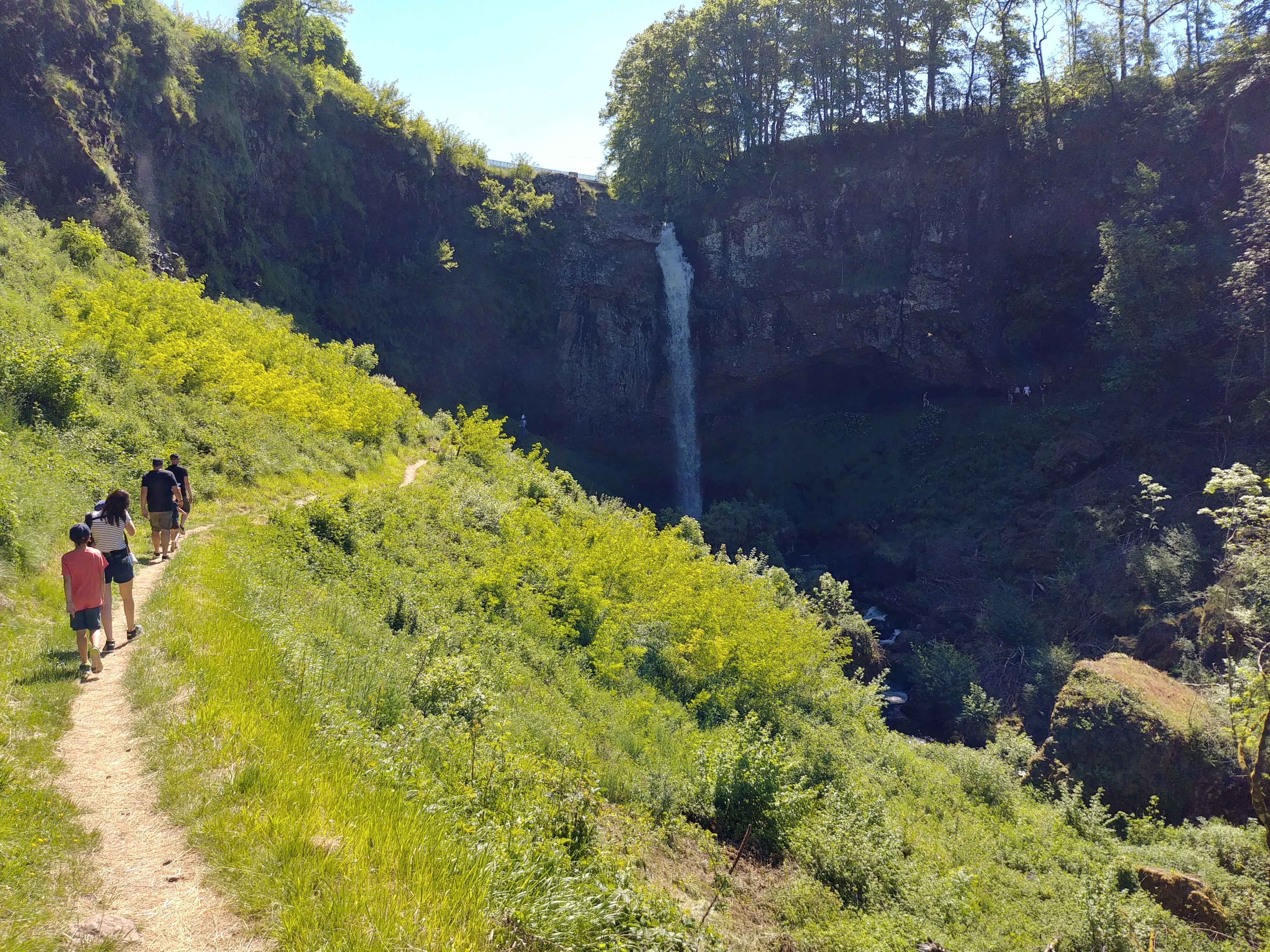 Une très belle balade d'une heure trente environ (si vous avez des enfants) qui commence par un passage sous la cascade et se poursuit à l'ombre dans une magnifique forêt moussue, d'abord à côté de belles parois de basalte puis, passé un petit pont suspendu, le long d'une rivière. Le superbe sentier vous emmène ensuite dans le village de Salins jusqu'à rejoindre le parking de la cascade, formant une boucle bien balisée de panneaux (impossible de se perdre).