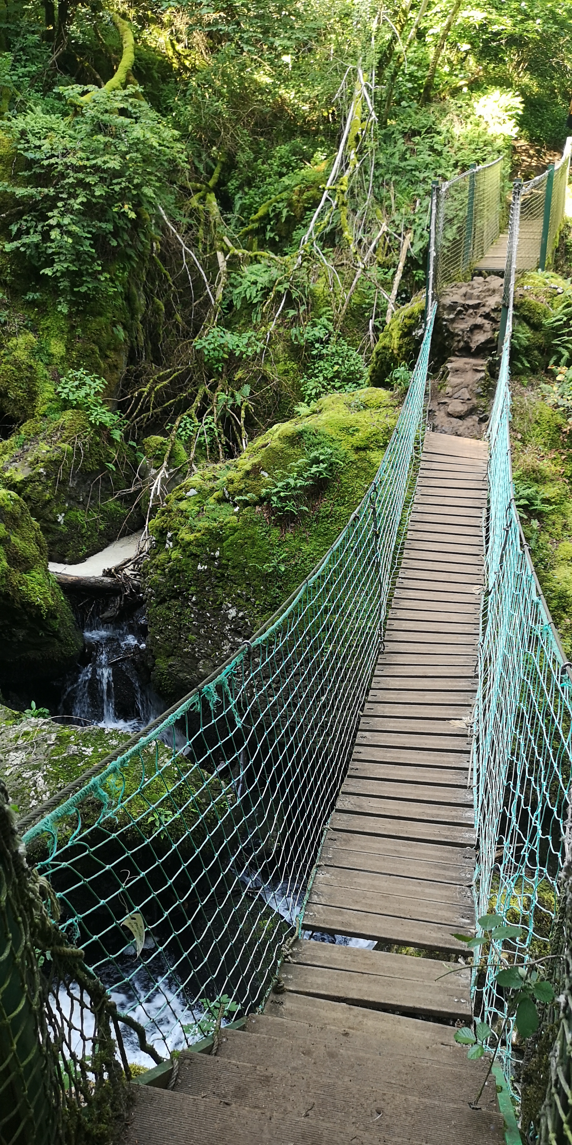 Superbe balade en boucle dans la nature. Très impressionnant de se retrouver sous la cascade grondante en cette saison. Il faut la faire complètement, environ 1h30. Il y a un passage sur un pont suspendu très ludique. On suit la rivière qui est magnifique.