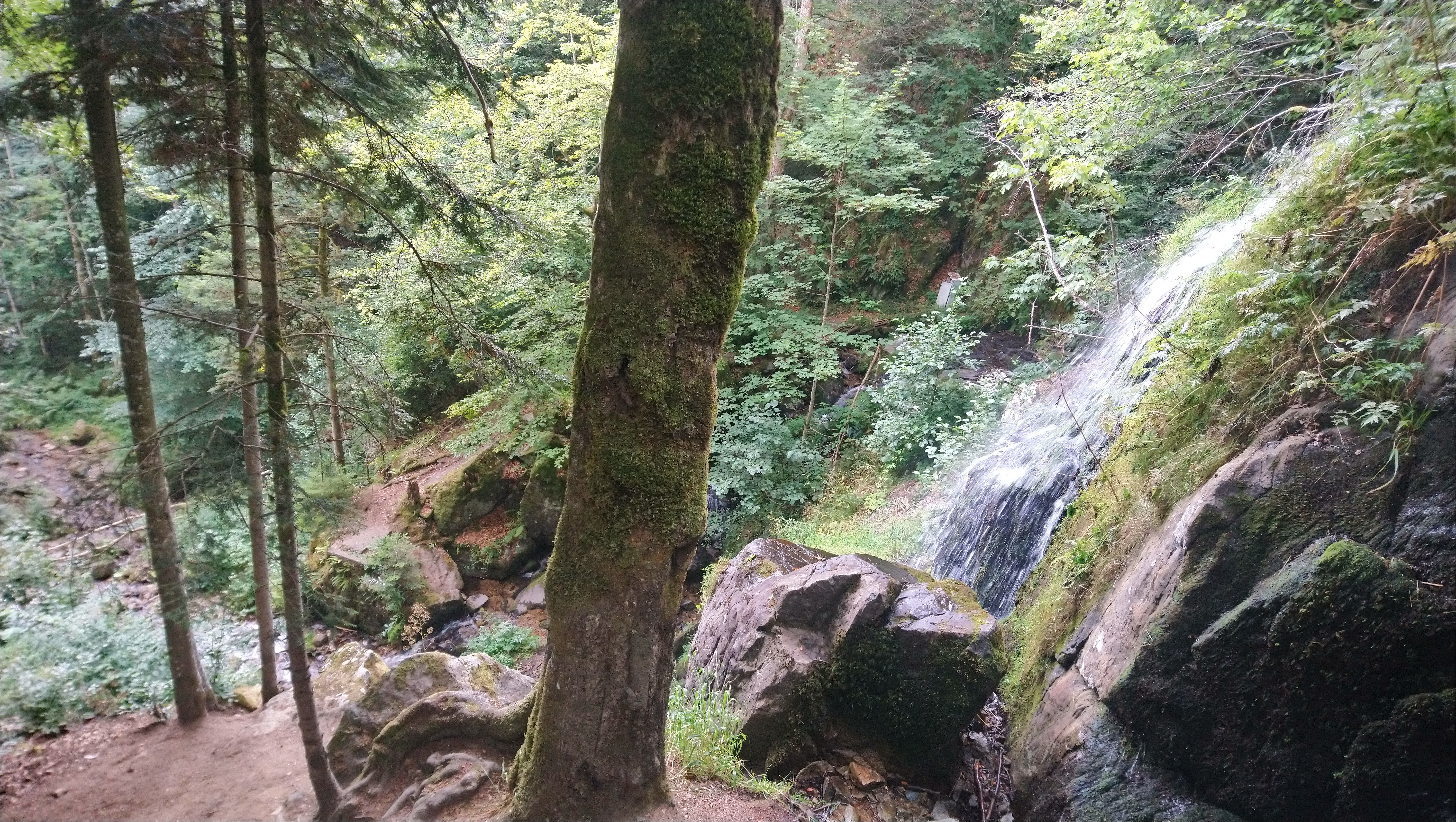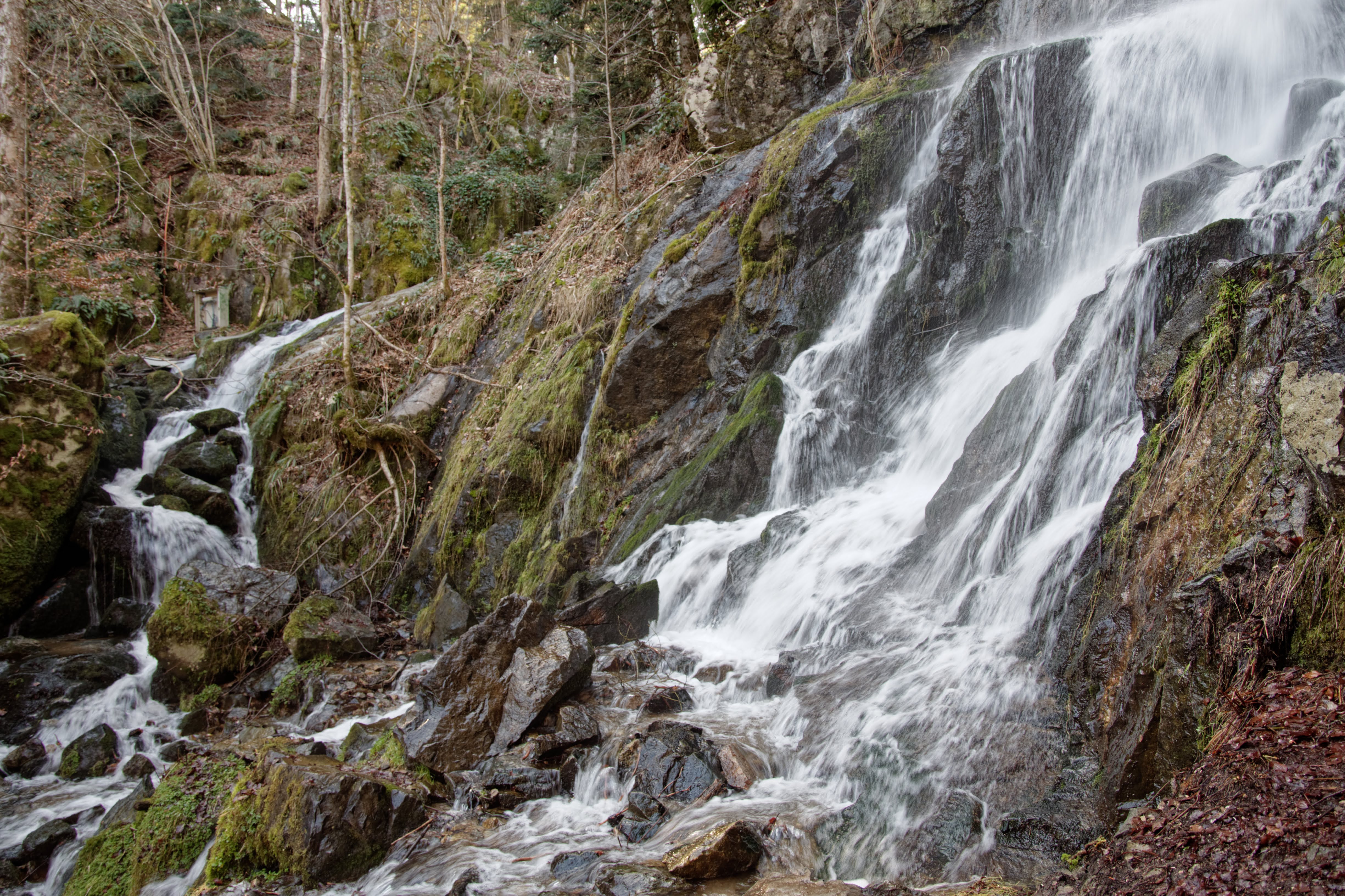 Petite cascade toute jolie qui vaut bien la (petite) montée accessible à petits et grands hormis cannes et poussettes. On la remonte par le chemin de la cascade au sud-ouest du Hohwald et accessible en voiture sauf les dernières centaines de mètres réservés aux pieds.
