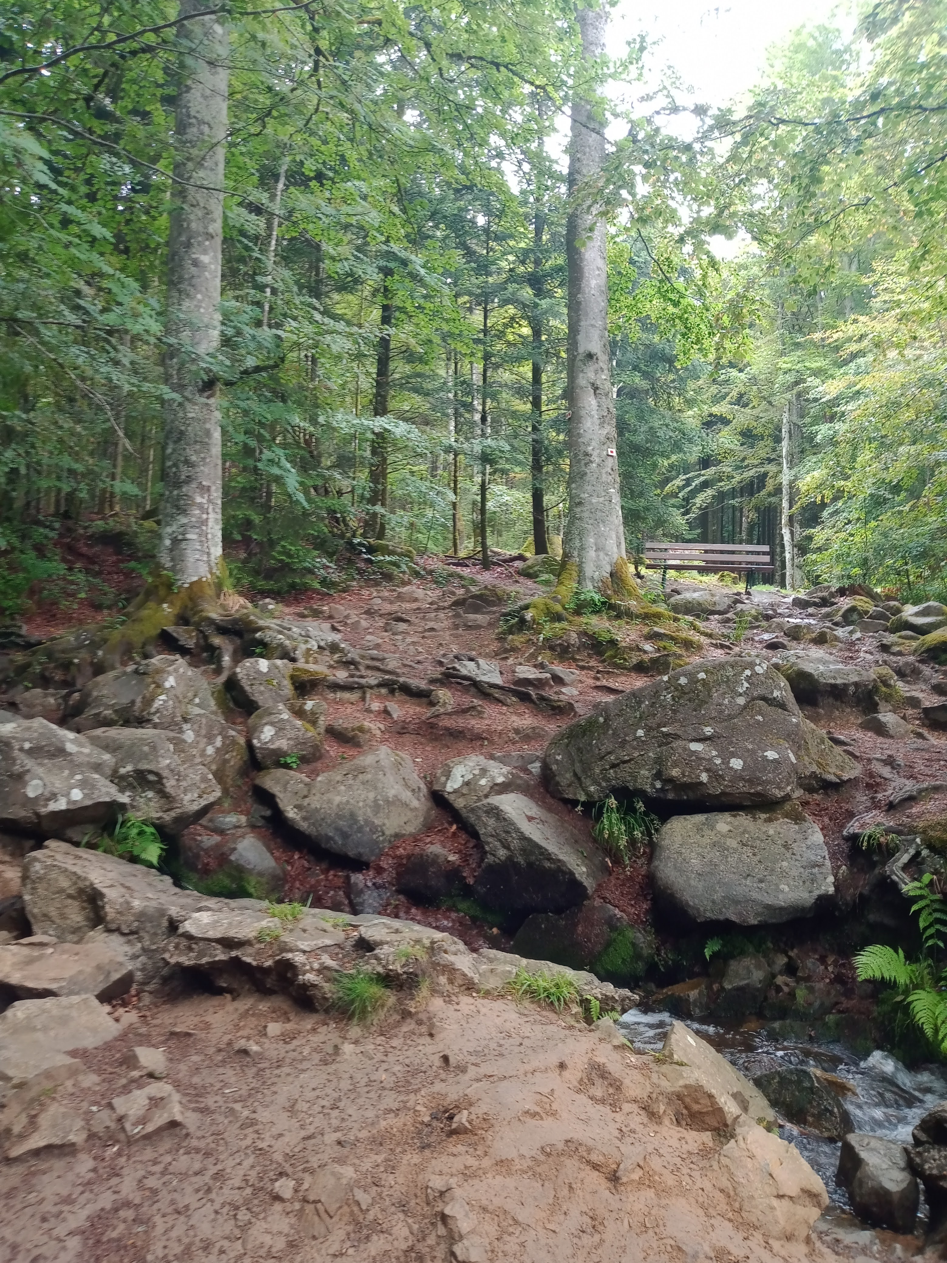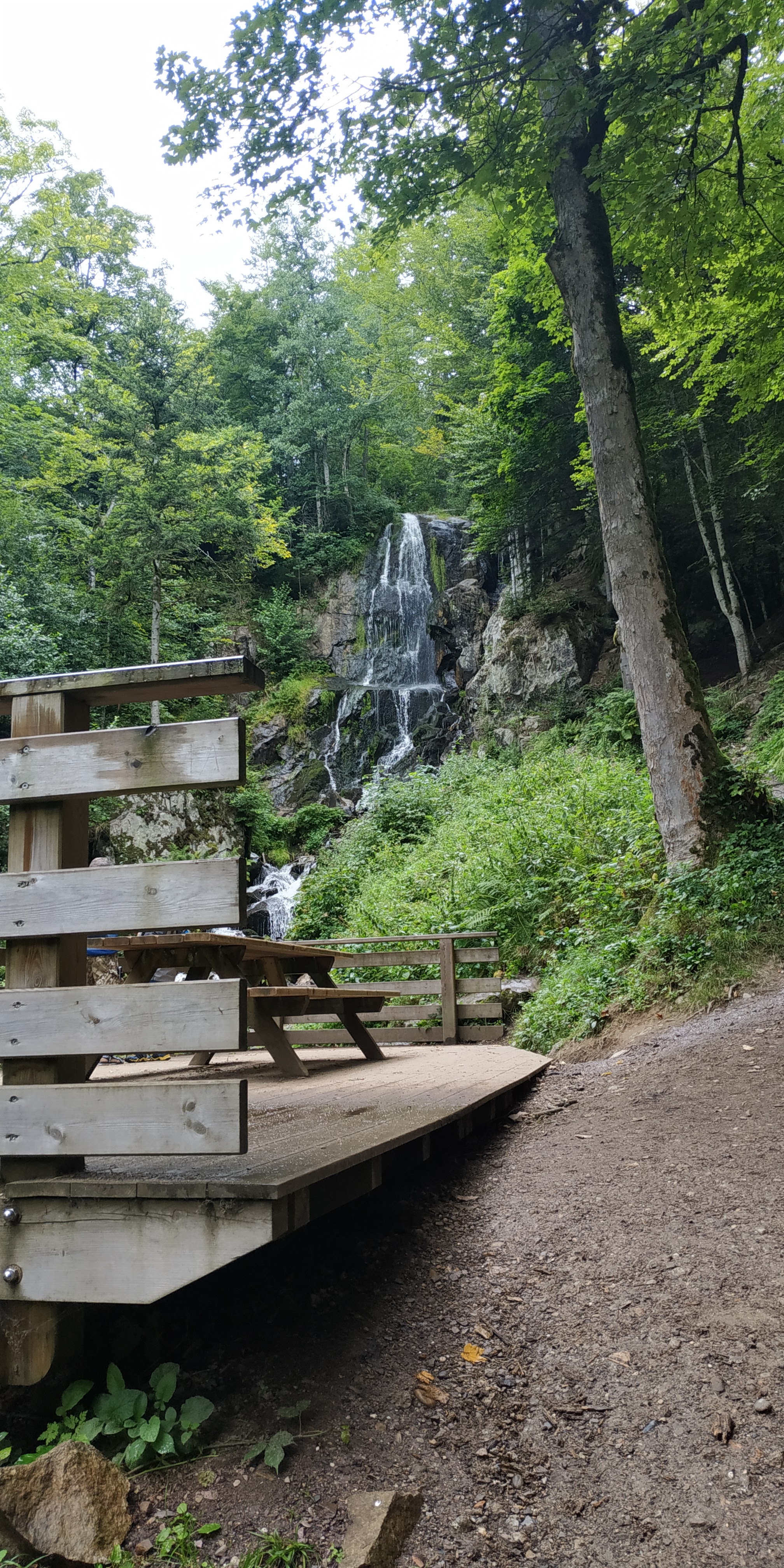 Après une montée assez rude 800 m. Jusqu'à la cascade , où, bonheur banc et table, ouf . Il faudrais un banc dans la montée. Ceci dit pour info aux personnes plus âgées.