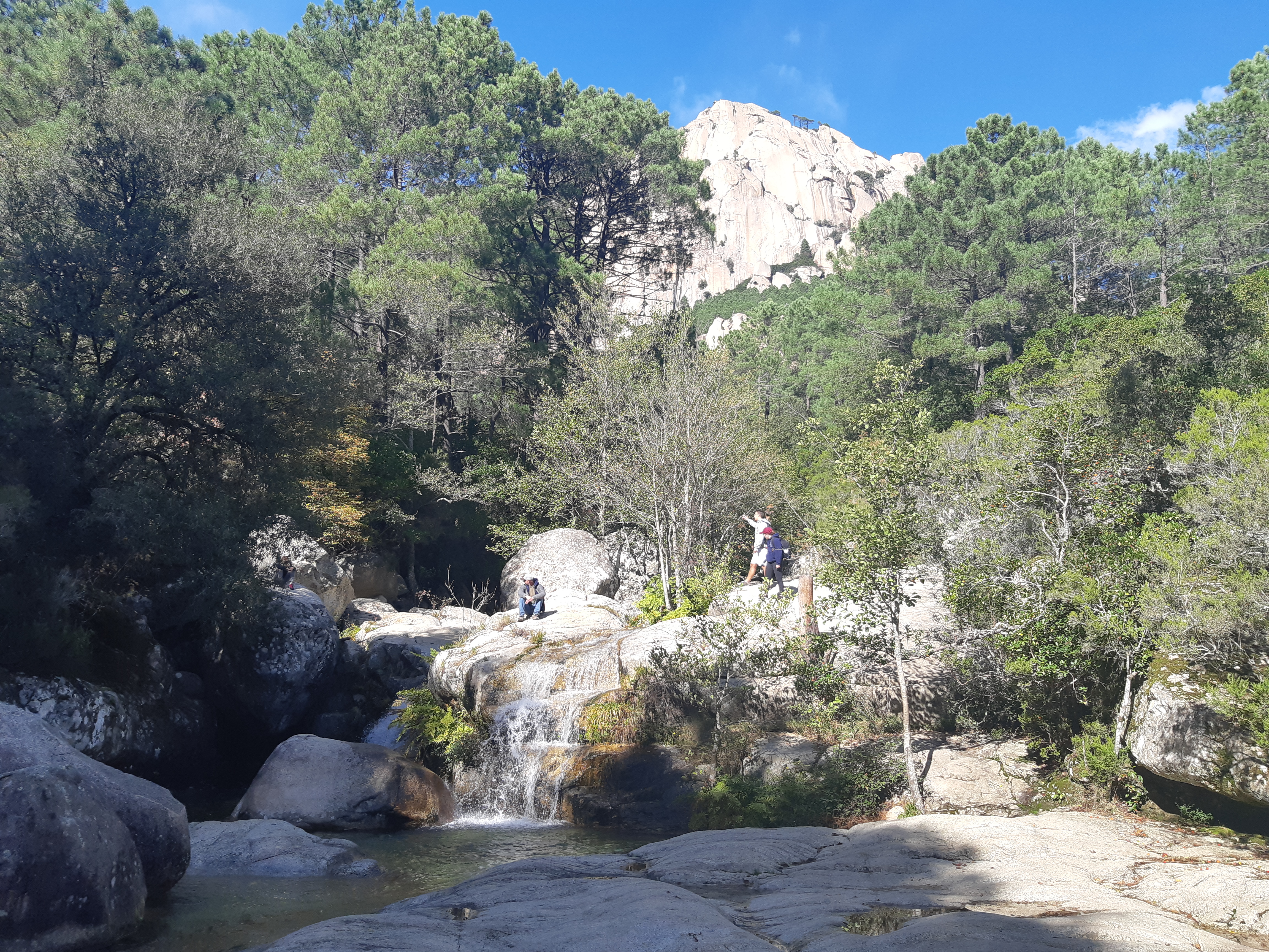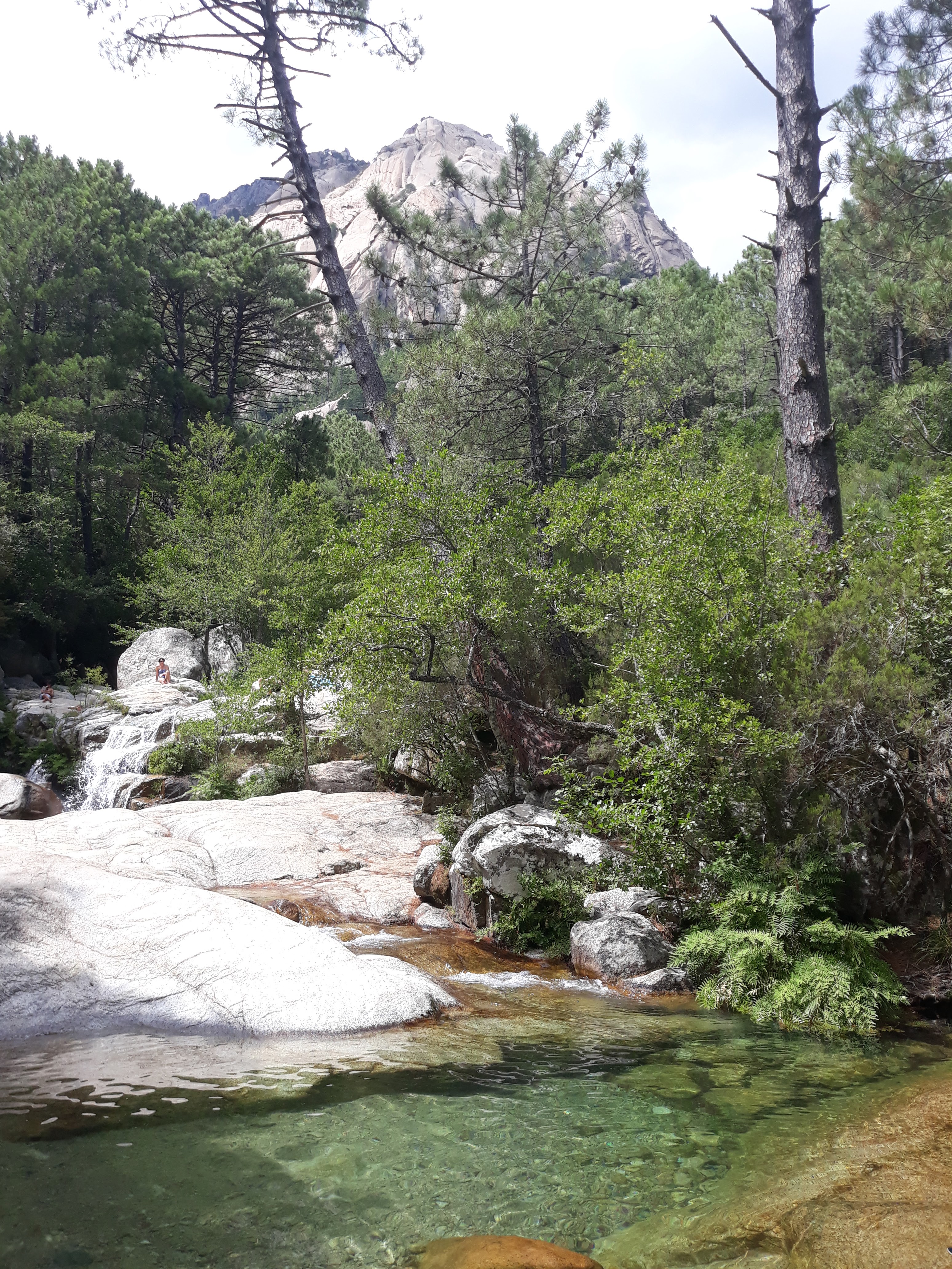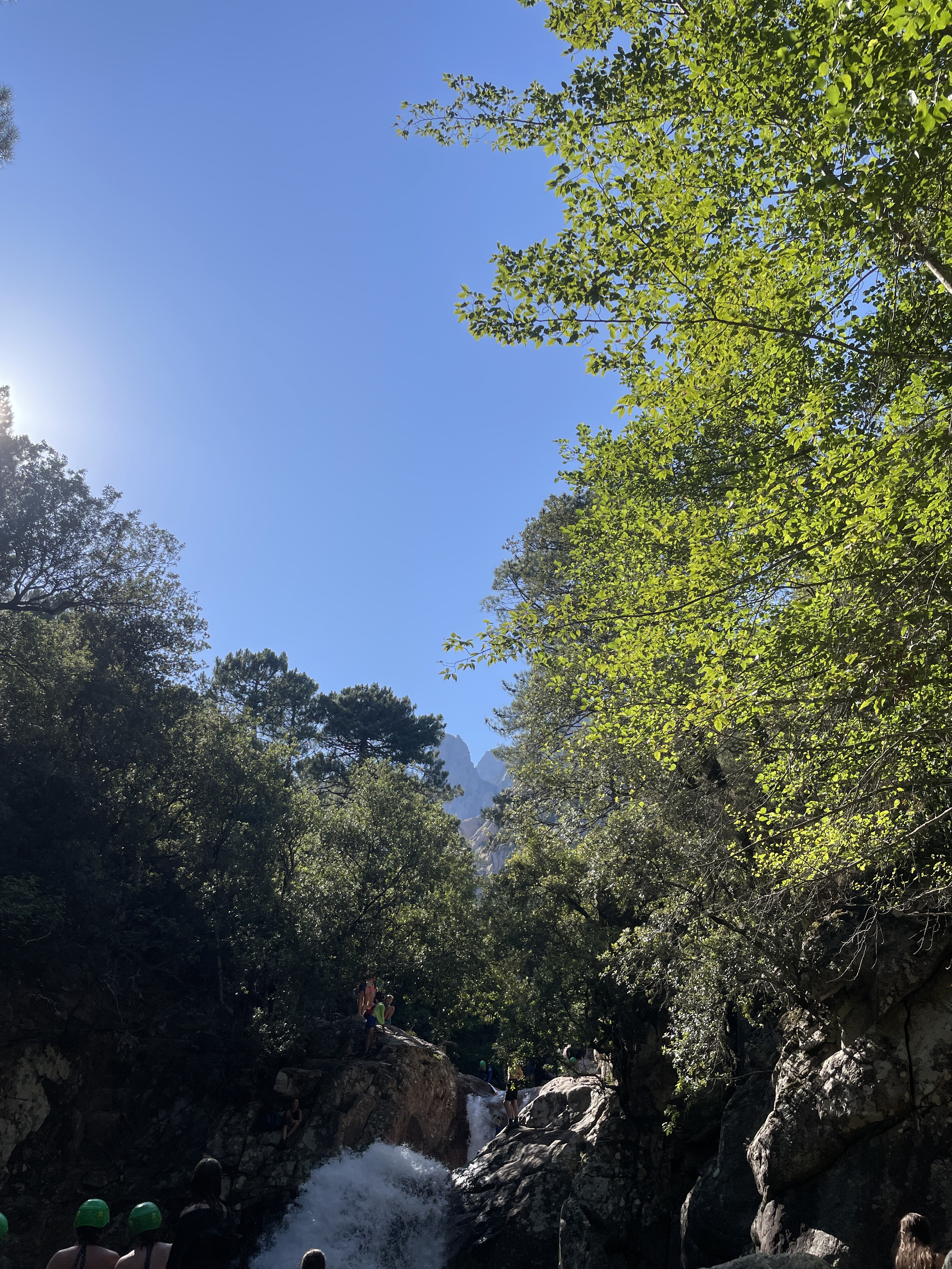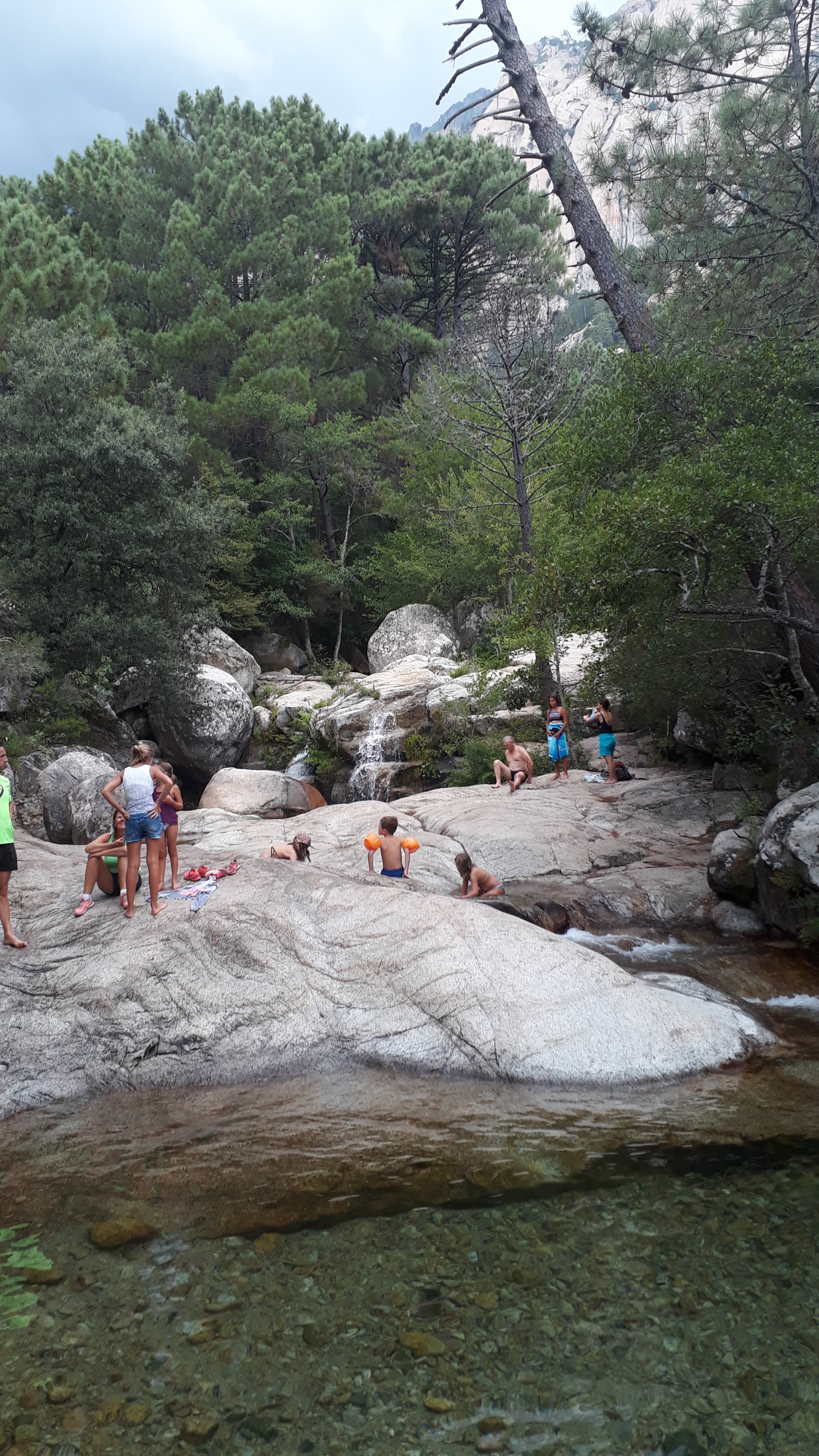 Il ne faut pas hésiter a monter pdt 20 min. Plus c est haut moins il y a de monde… Hormis les groupes de canyonning. Franchement un bel endroit pour se poser apres une belle rando apres les aiguilles de bavella…