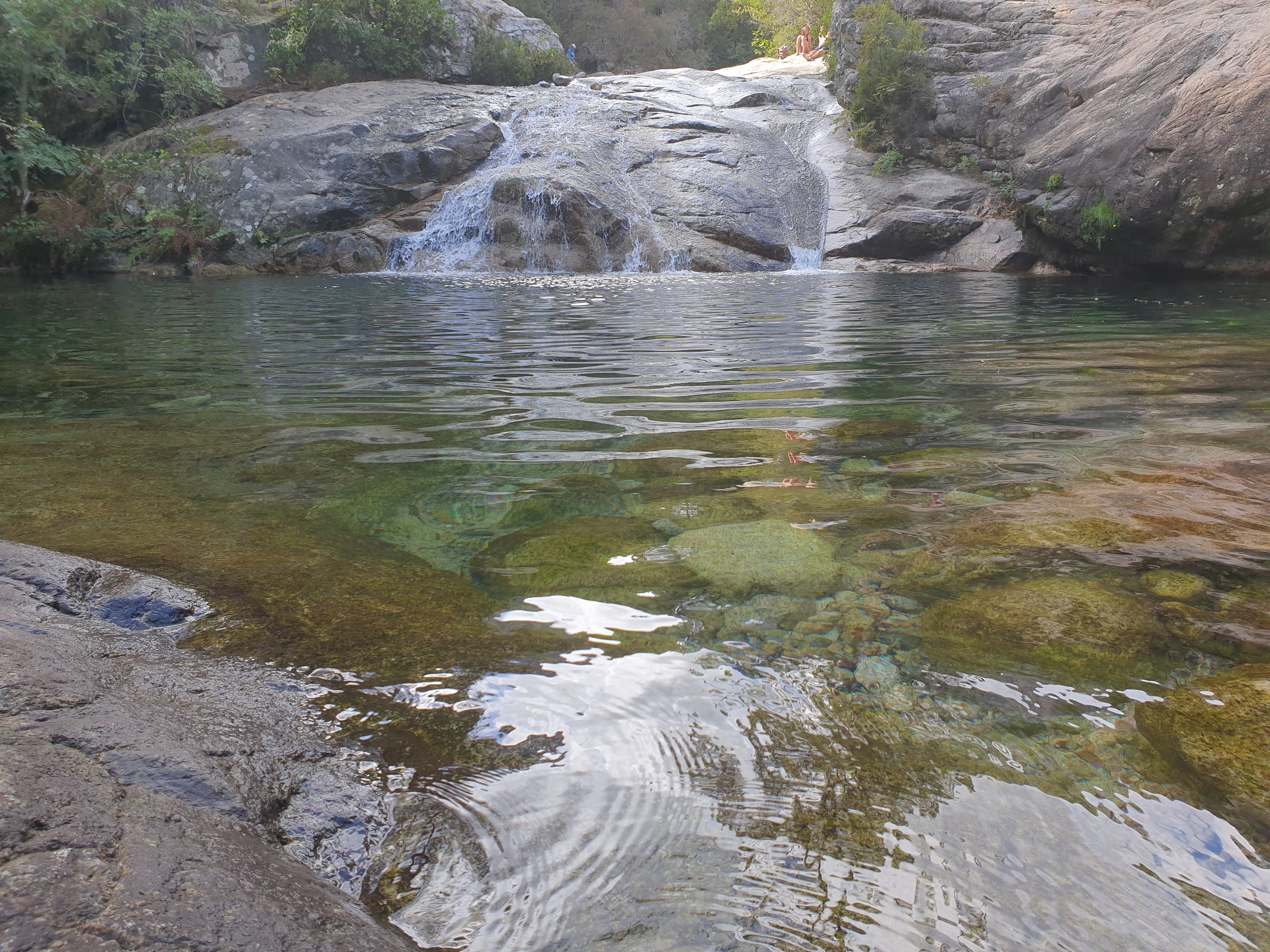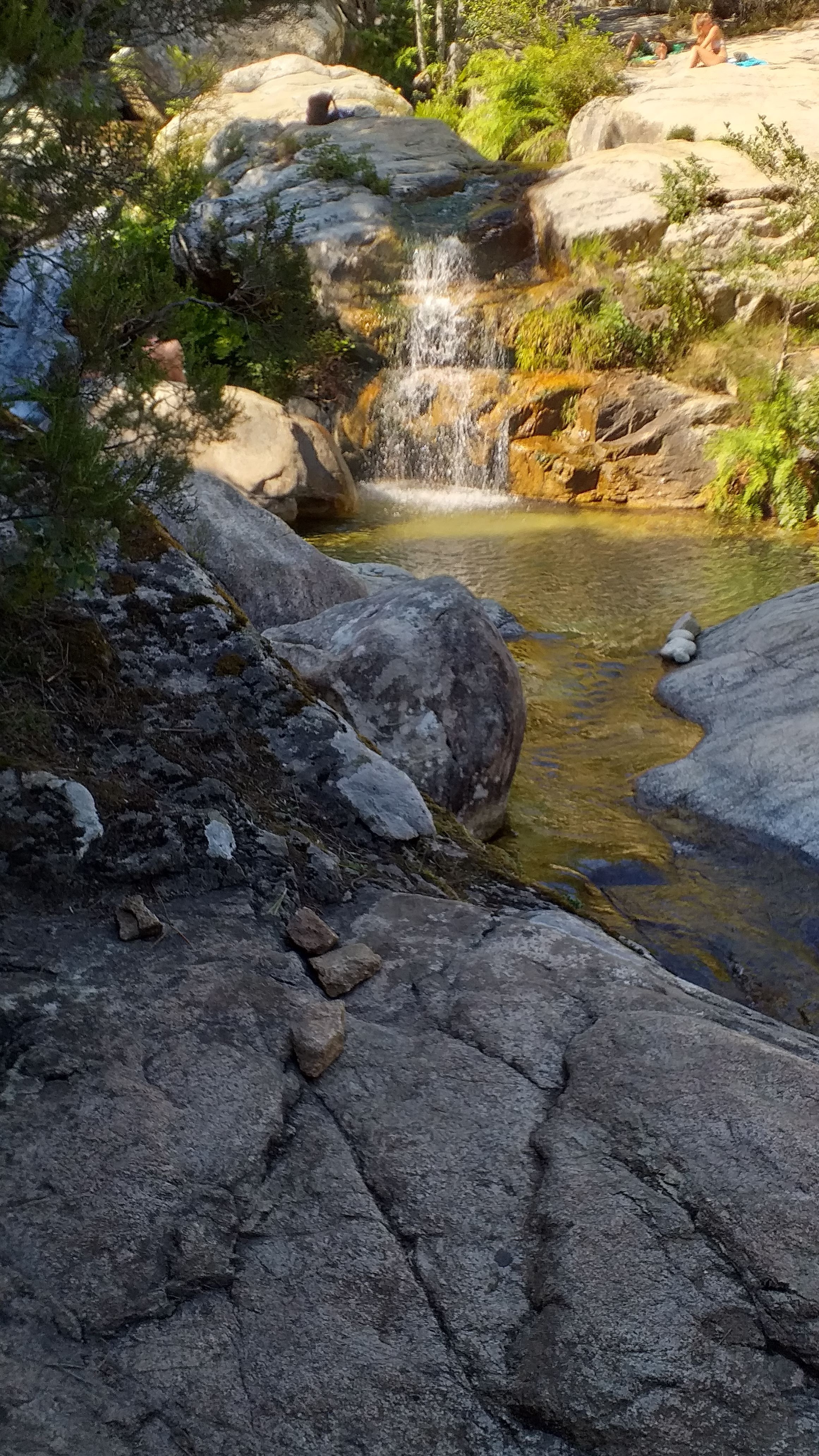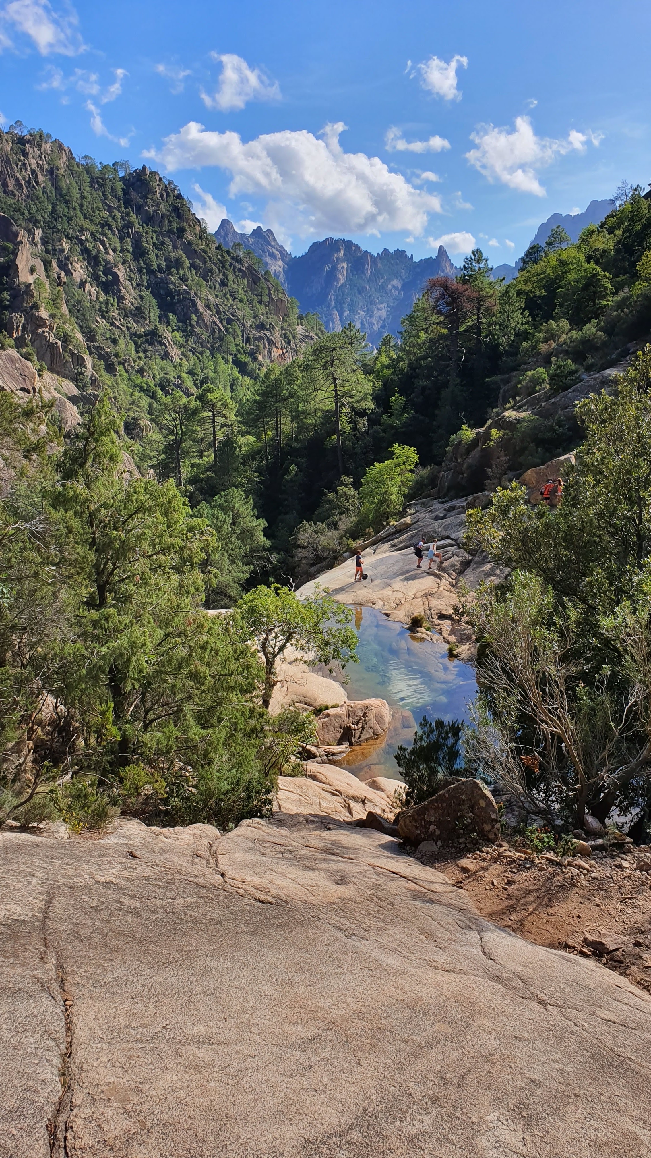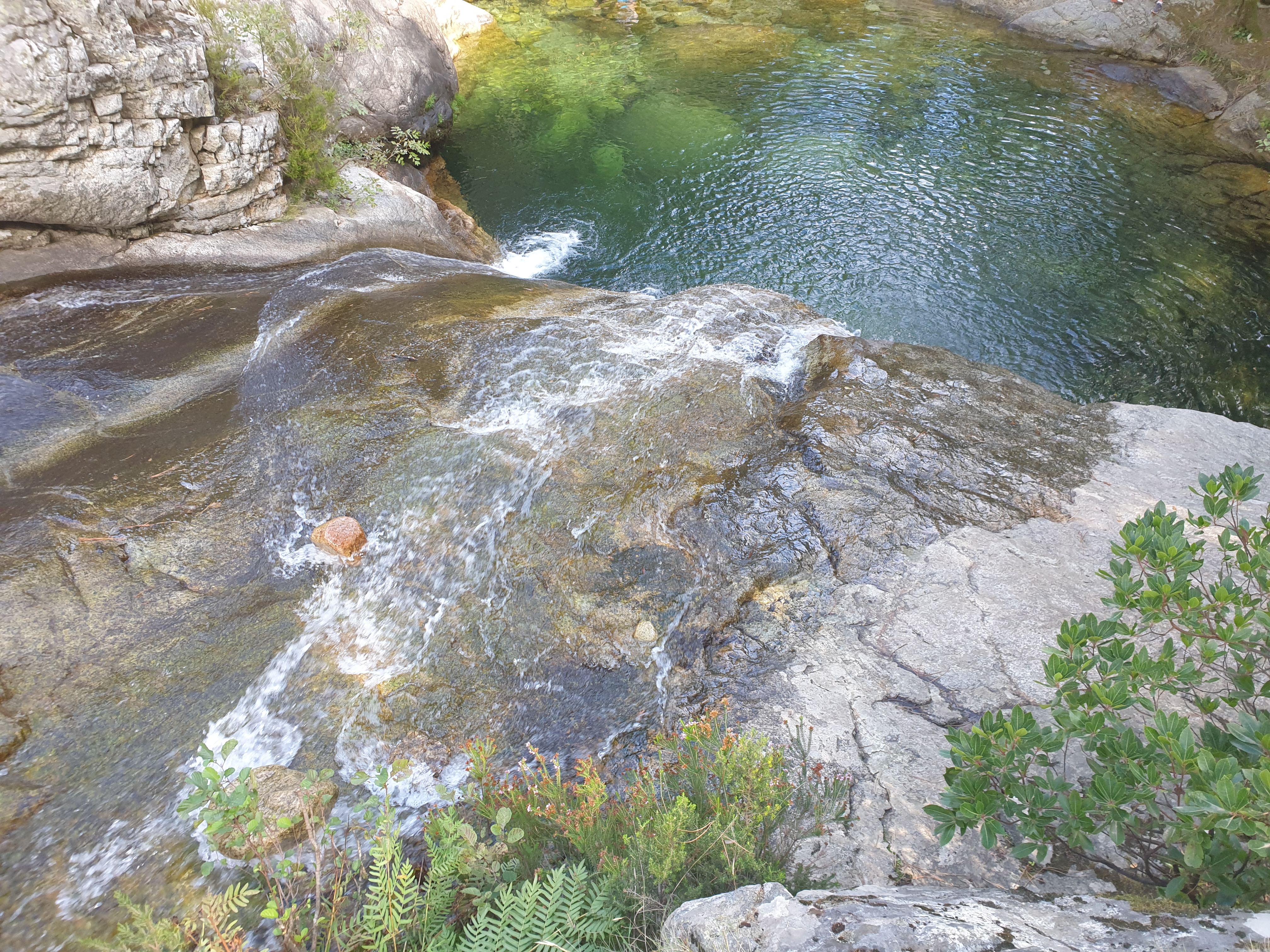 Il ne faut pas hésiter a monter pdt 20 min. Plus c est haut moins il y a de monde… Hormis les groupes de canyonning. Franchement un bel endroit pour se poser apres une belle rando apres les aiguilles de bavella…