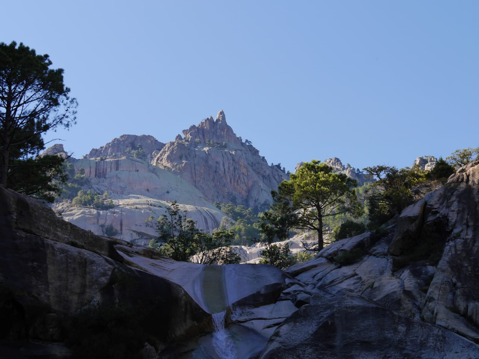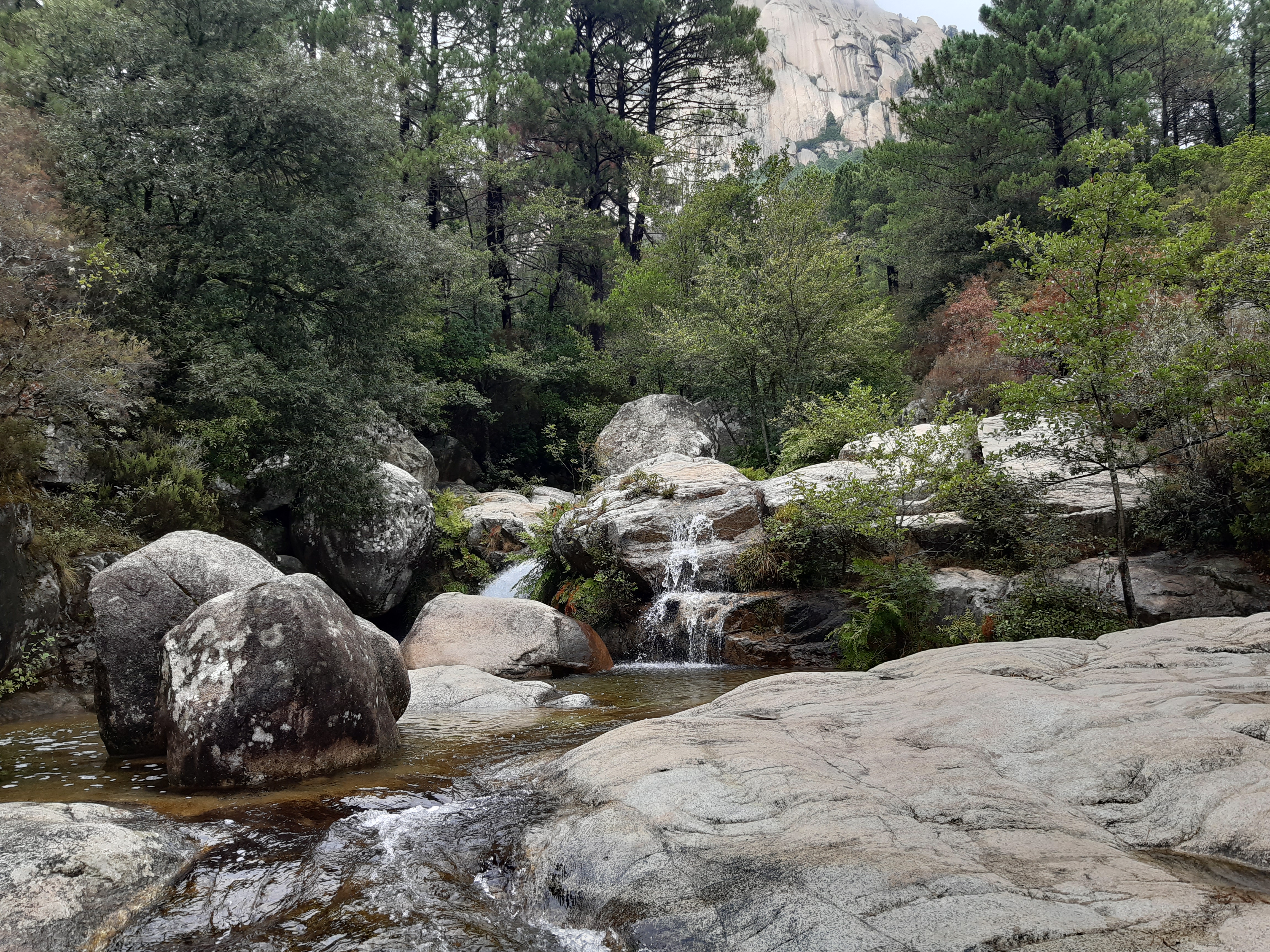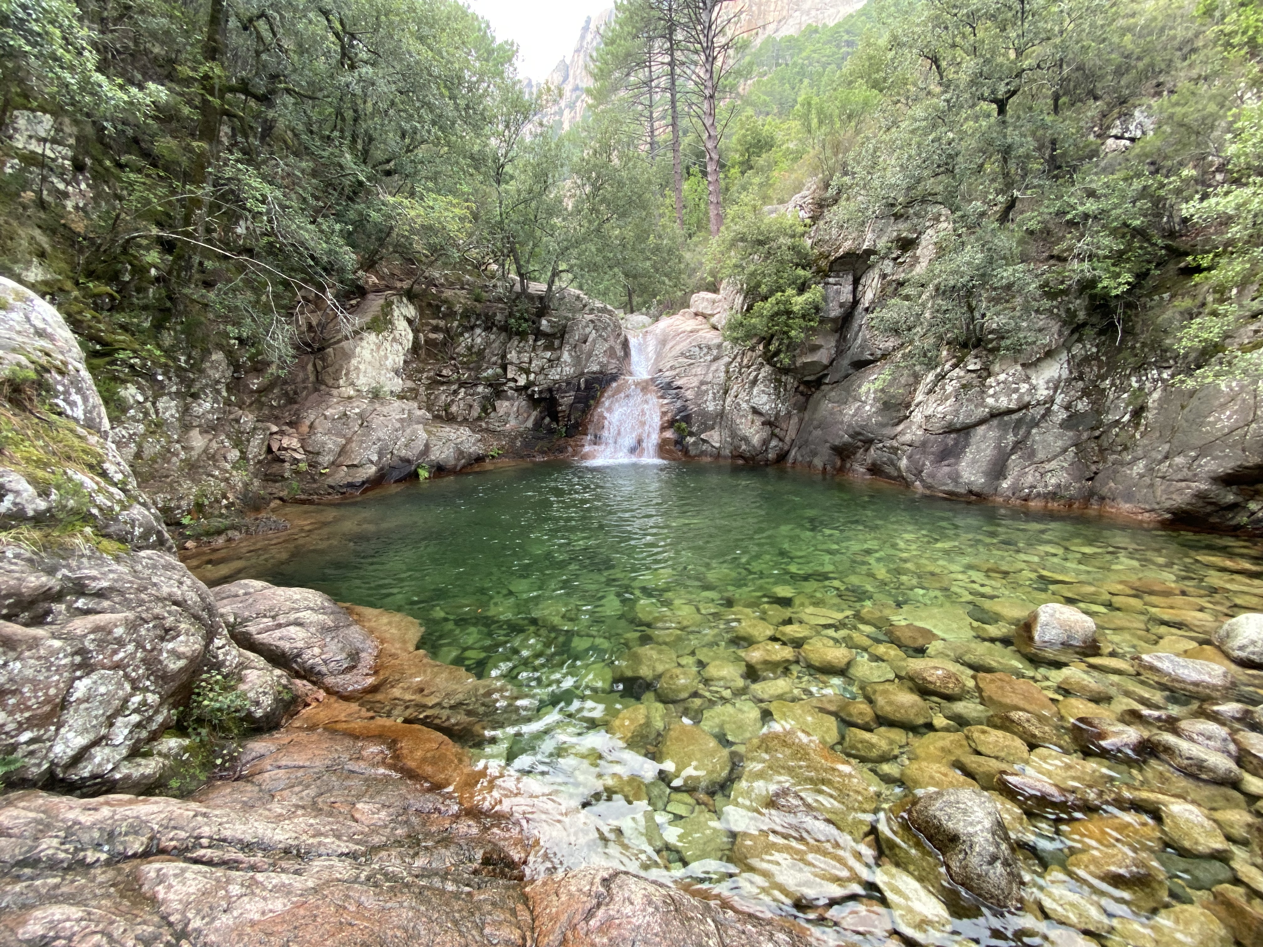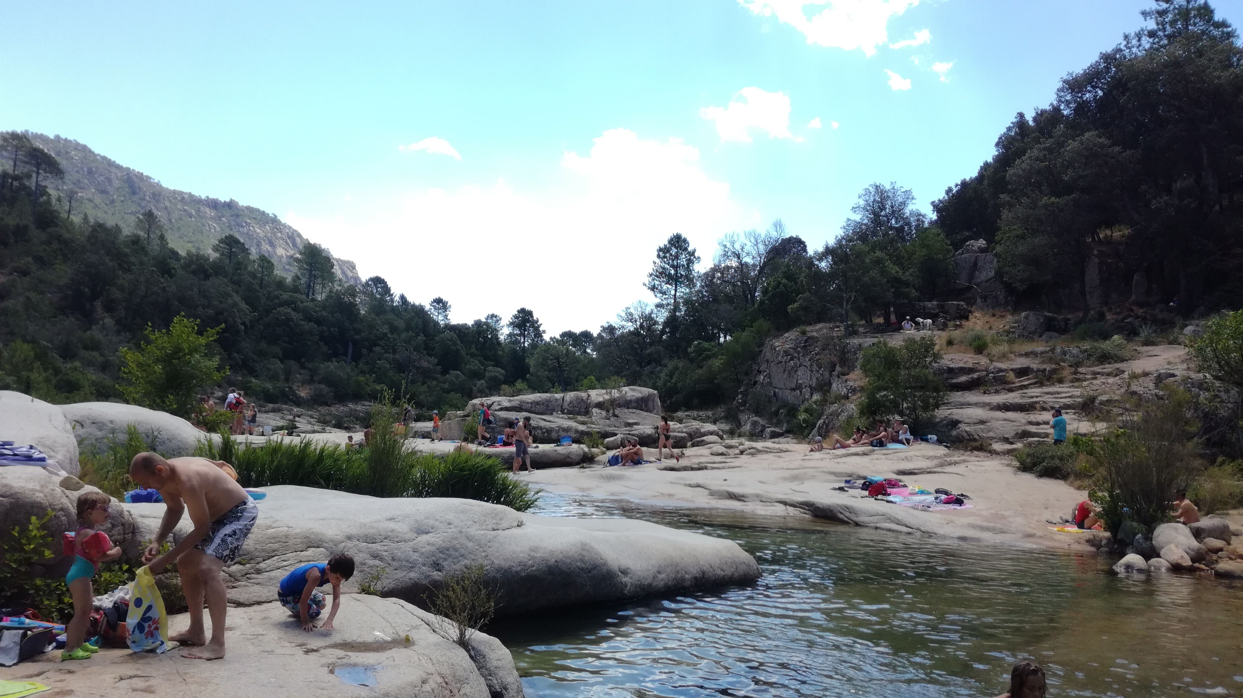 Il ne faut pas hésiter a monter pdt 20 min. Plus c est haut moins il y a de monde… Hormis les groupes de canyonning. Franchement un bel endroit pour se poser apres une belle rando apres les aiguilles de bavella…