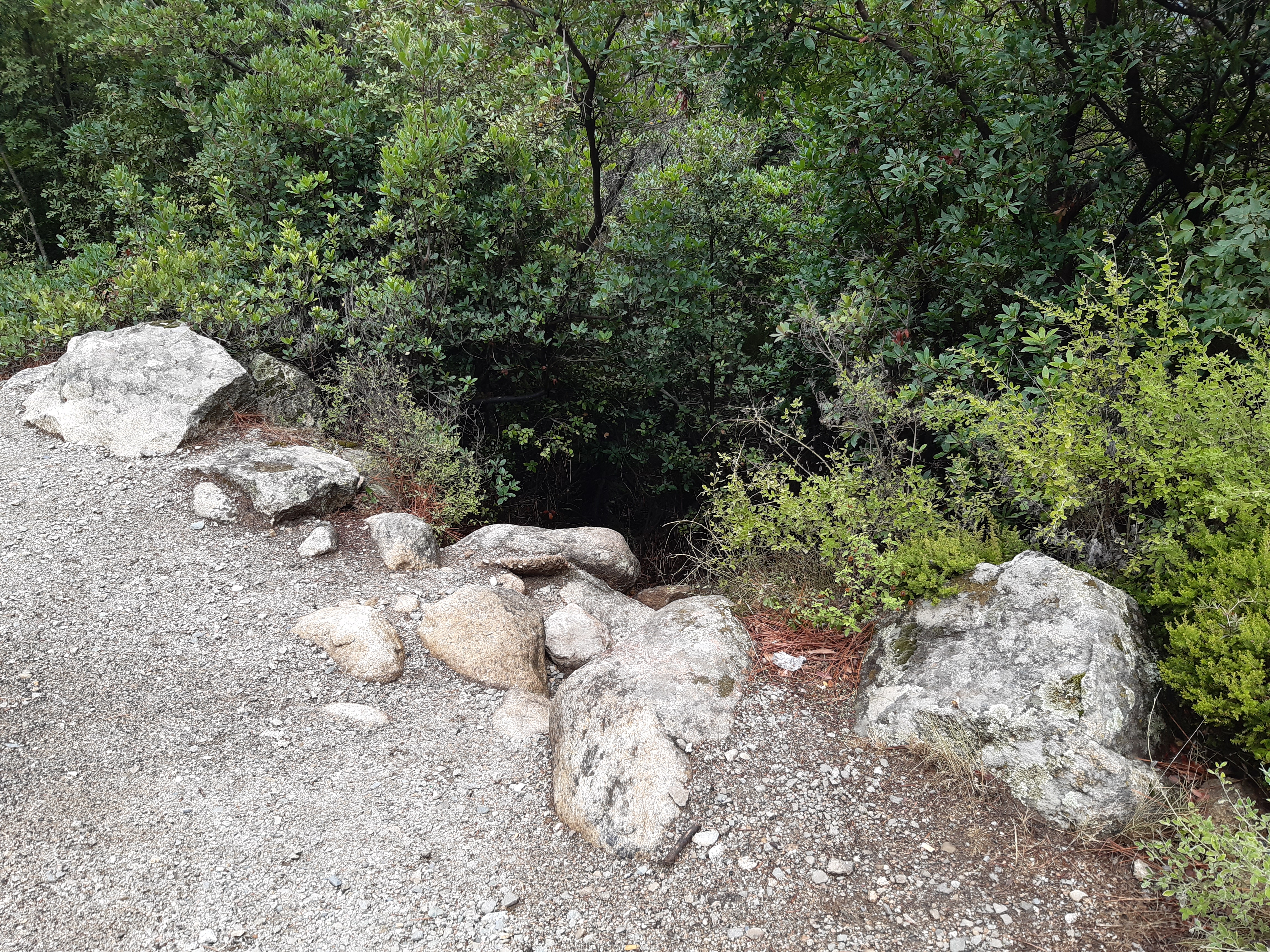 Une fois sur le parking principal, descendre la route sur une cinquantaine de mètres et vous trouverez un premier chemin sur votre droite: accès en terre battu et roche sous les arbres. En moins de 5 min vous y êtes. Petit coin de paradis !
