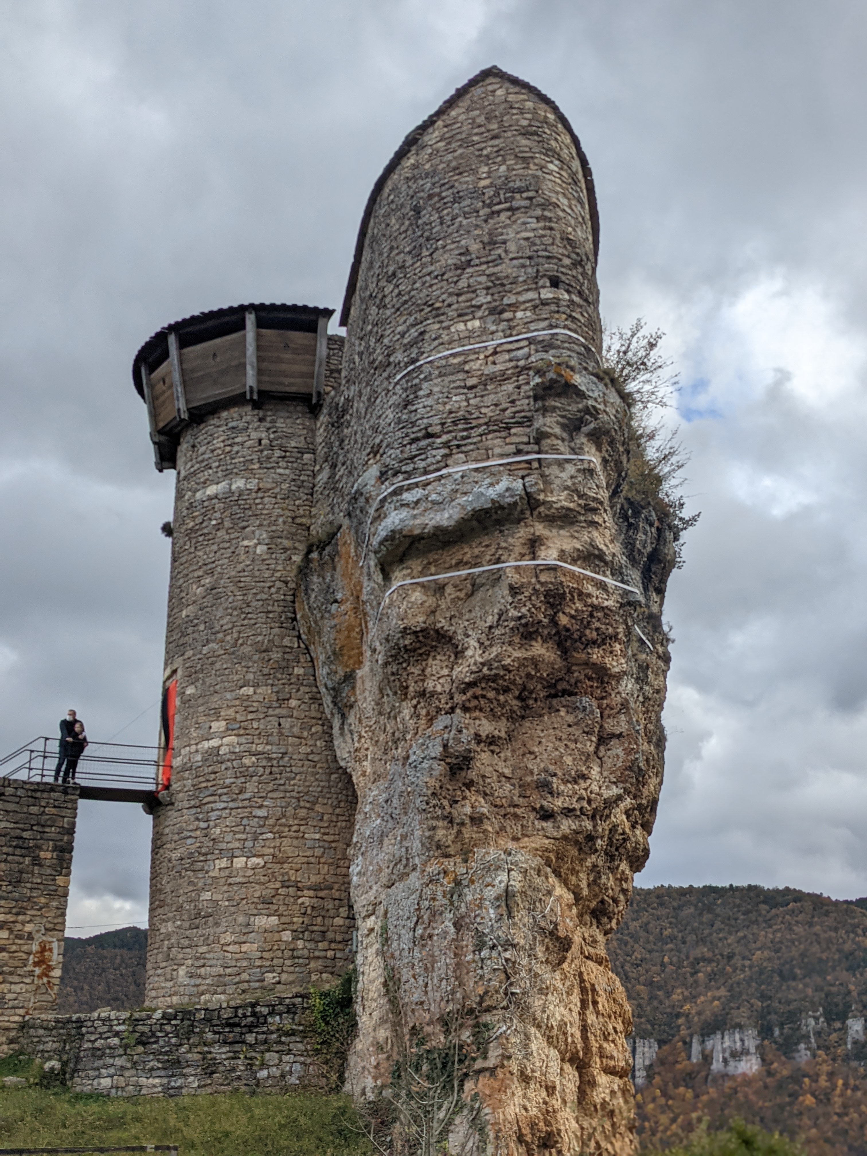 Un lieu surprenant comme suspendu en haut du rocher. Visite 5 euros par personne (environ 45mn). Pass obligatoire. Chiens acceptés. Le château est en travaux mais manque encore beaucoup trop de sécurité à mon goût et d'espace interactif à cette période.