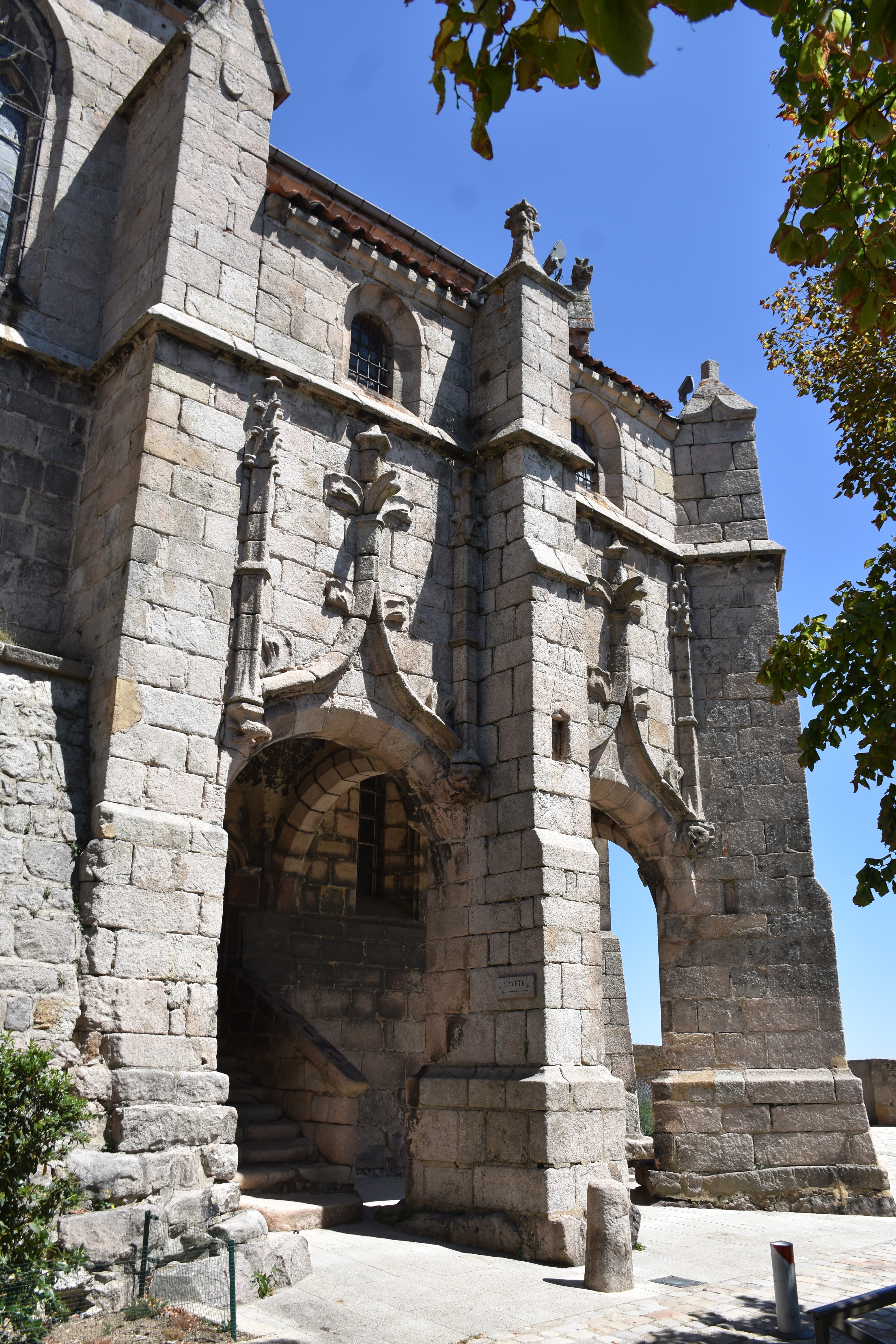 Collégiale du XIVe-XVe siècle. de dimensions importantes située sur la colline dominant la plaine autour de Saint-Bonnet-le-Château. Voûtes et chapelles peintes à la même époque.