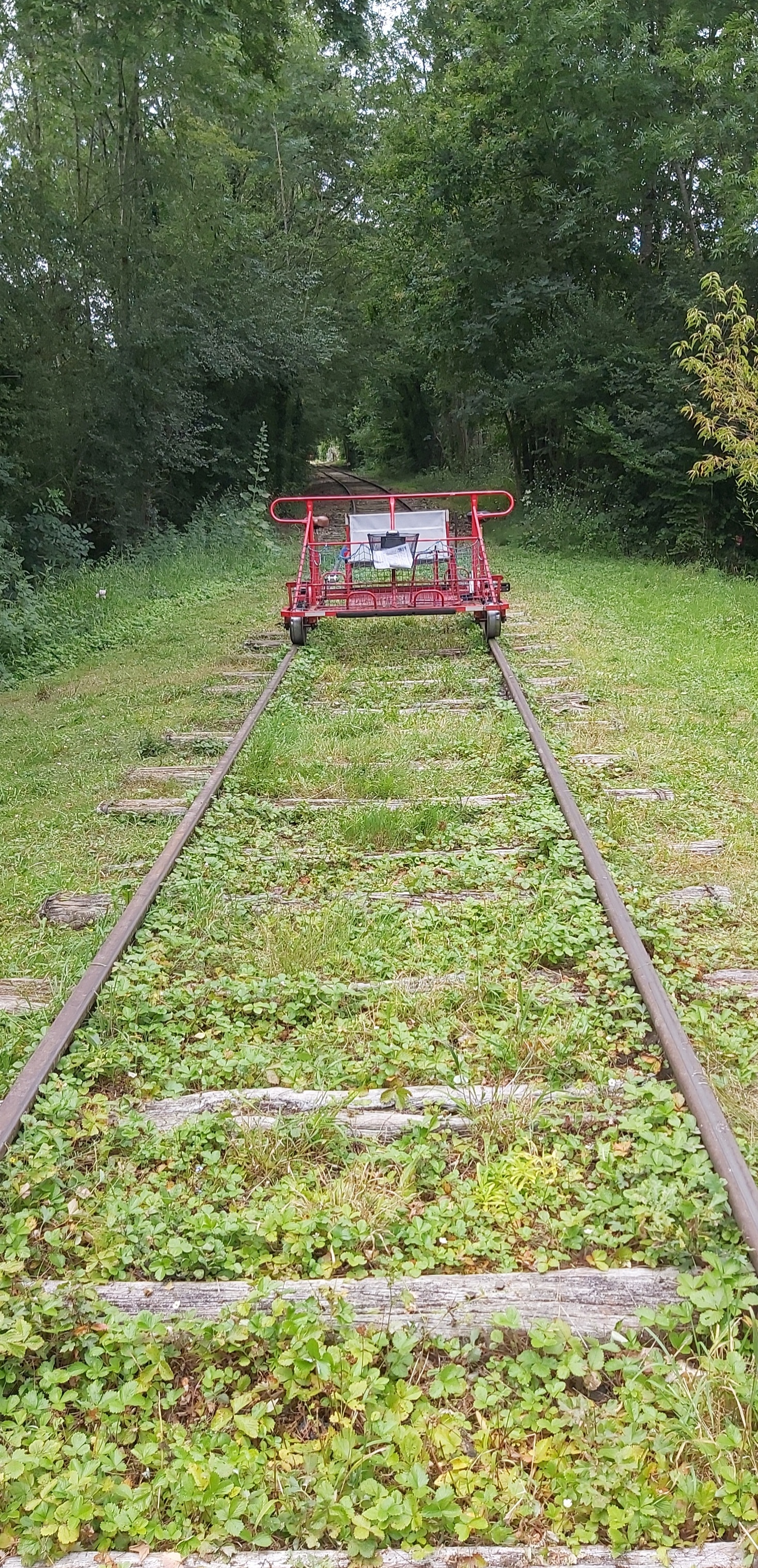 Activité vivement recommandée si vous passez un weekend ou un séjour dans le secteur. C'est original et ludique. Très bien organisé avec possibilité de s'arrêter pique niquer. 2 parcours de 14 et 30 km. On traverse des routes ou l'on doit descendre du vélo rail et pousser à la main. Nous l'avons fait avec des enfants et tout le monde a bien ri ! Sièges bébé possible. Les 2 Monsieurs très sympathiques .... Je recommande