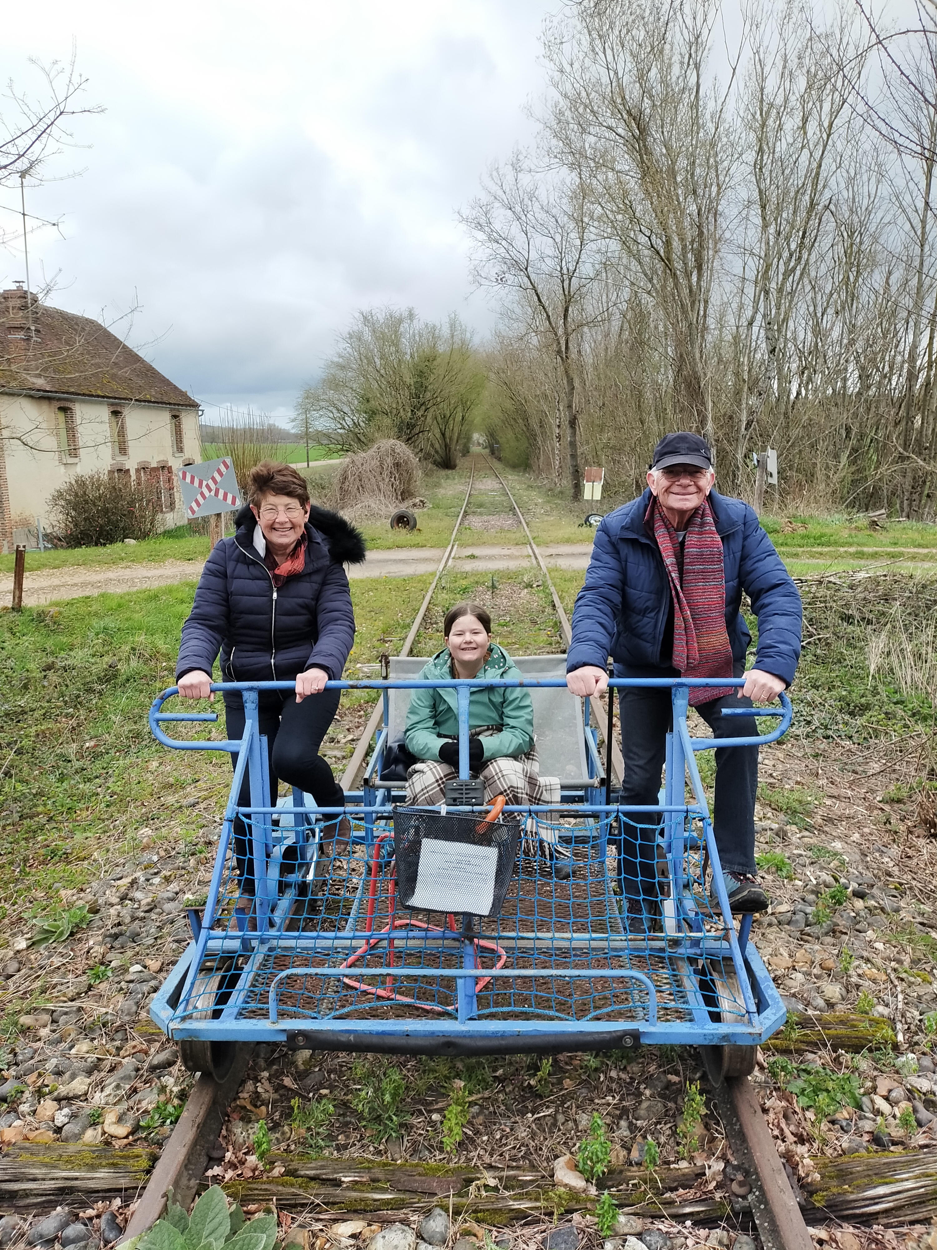 Découverte du cyclo-rail en compagnie de notre petit fils Zack 7 ans.Tout le monde a pédalé♡. Parcours agréable pour une durée de 3 heures avec la pause déjeuner au bord du cours d eau Accueil chaleureux Après la ballade ,possibilité de se mettre au frais pour une boisson ou glace. Nous recommandons.++