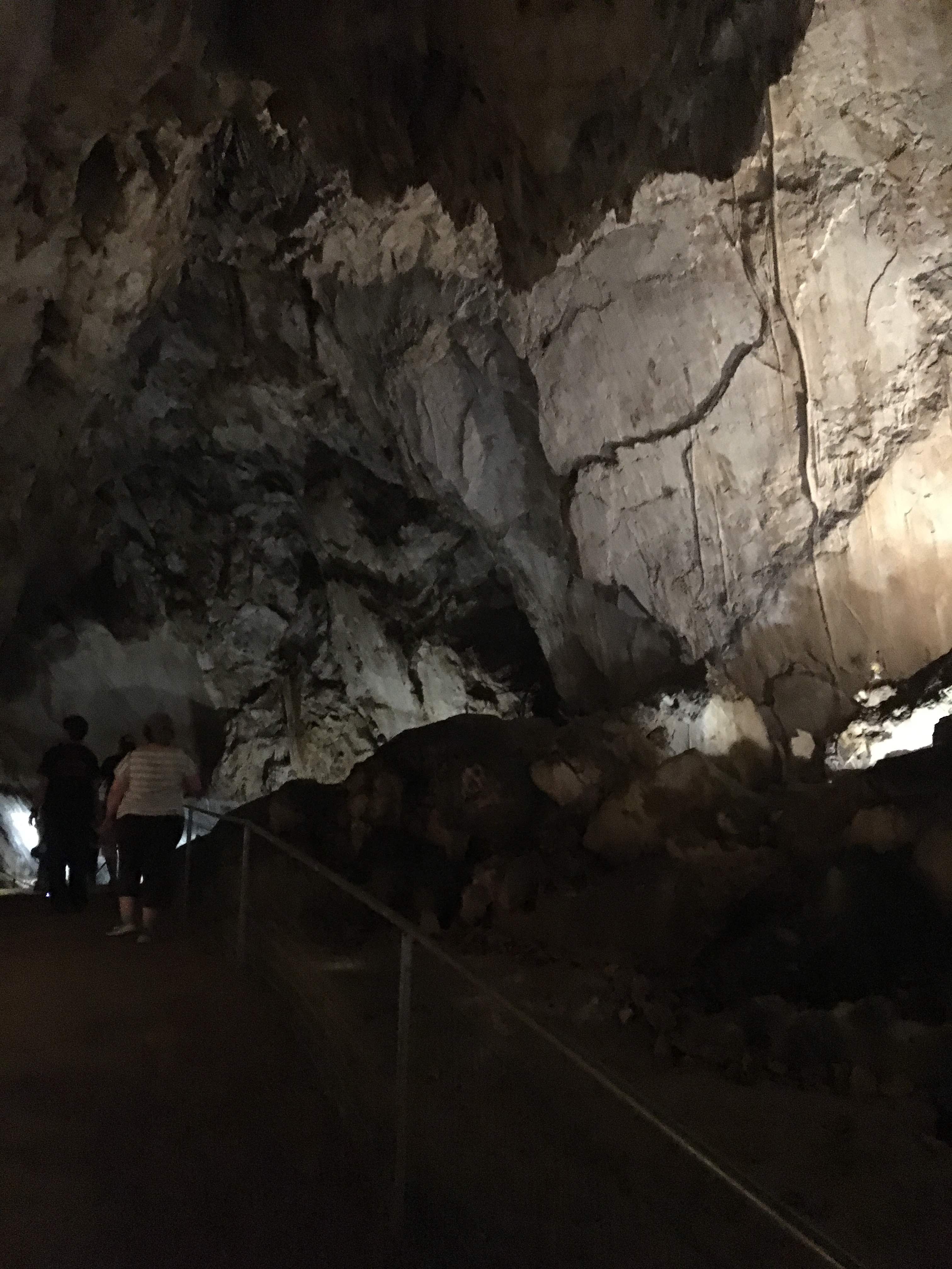 Annoncé comme seule grotte classée au patrimoine mondial de l’unesco… on s’attend à quelque chose de grandiose et… rien d’extraordinaire, pas de stalagmites ou stalactites… banal. Pas du tout adapté aux PMR car plusieurs escaliers très raides à monter, on le sait qu’une fois payé… Une expo sur les dinosaures, répliques des animaux bien faites certes, explications aussi, mais payer 15€ par adulte et 12€ par enfant (payant à partir de 1 mètre pas d’âge mini), c’est vraiment hors de prix. Réduction PMR de 10% autant dire rien.