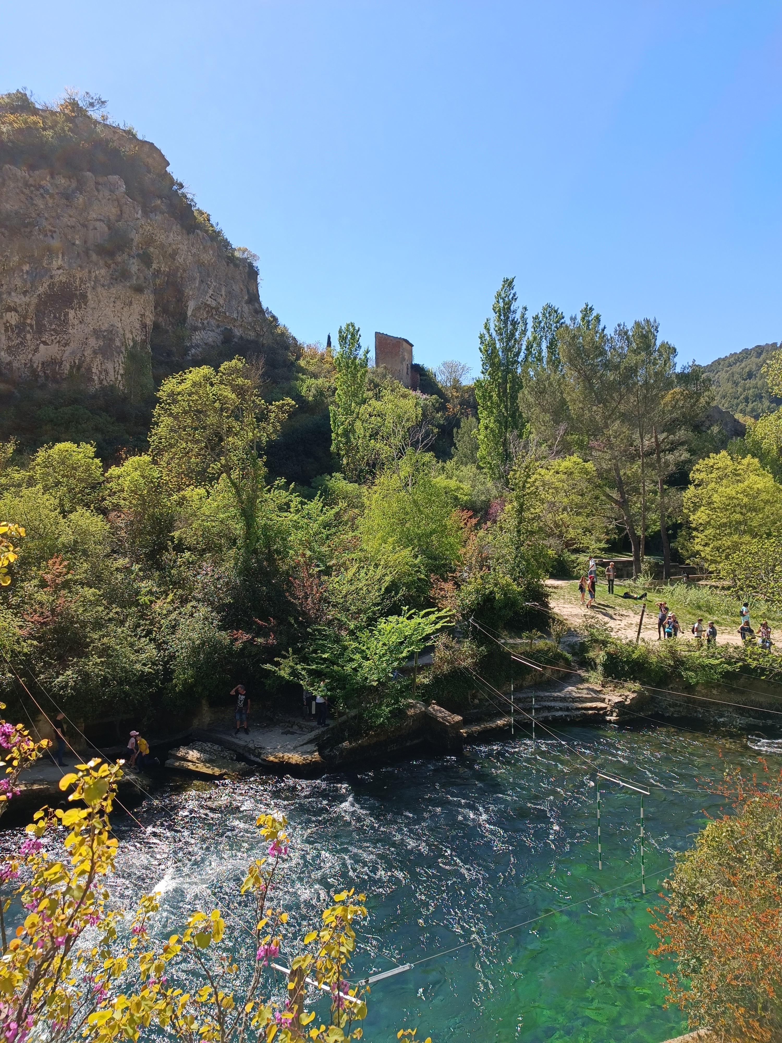 Etape magnifique et rafraîchissante. Utilisez les parkings en aval et cheminez au bord de la rivière jusqu'au village puis jusqu'au gouffre. De beaux arbres nous offrent une ombre salvatrice. La rivière est cristalline et fraîche : un régal ! Le village est agréable et propose une offre hôtelière variée où chacun trouvera satisfaction. Ne manquez pas le jardin du musée Pétrarque!