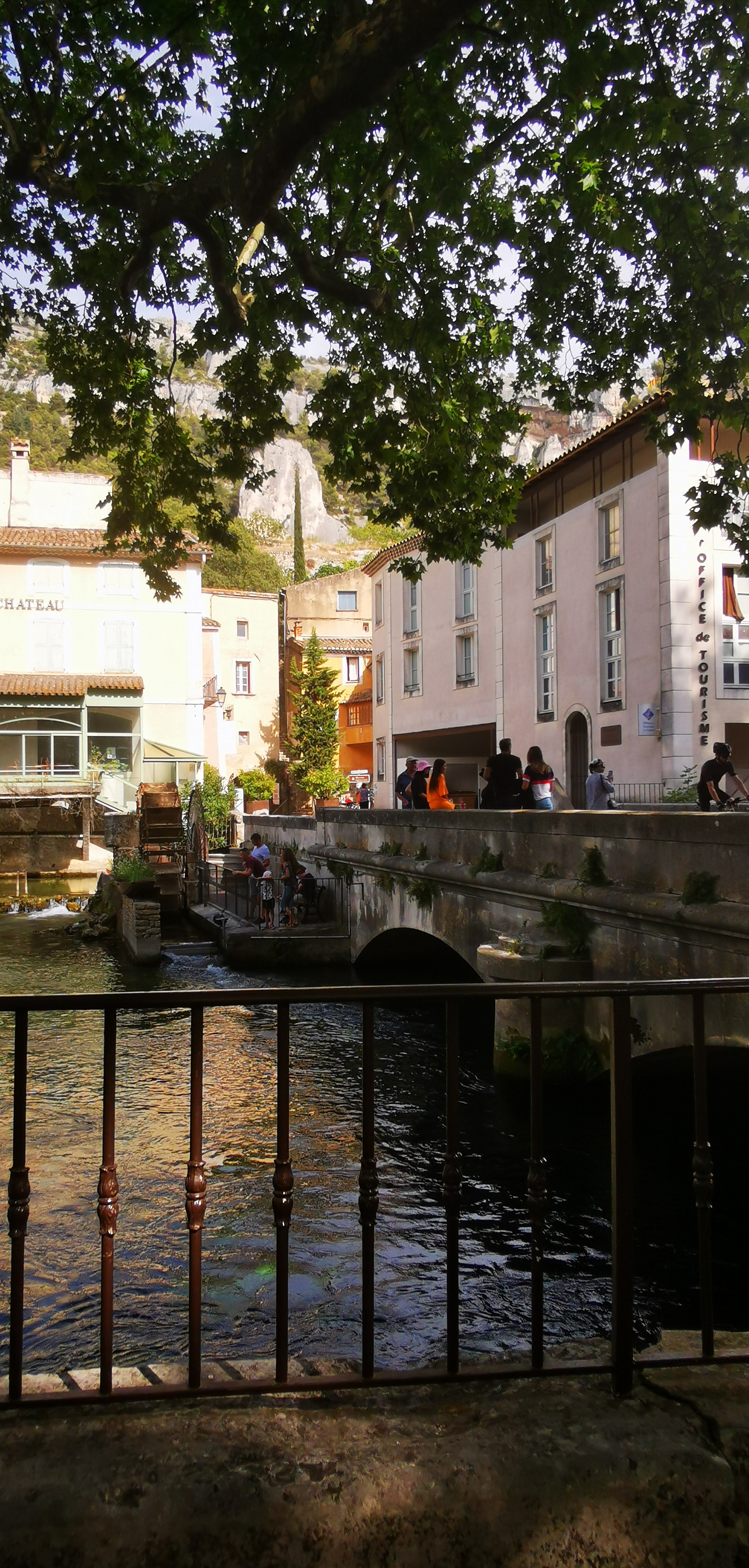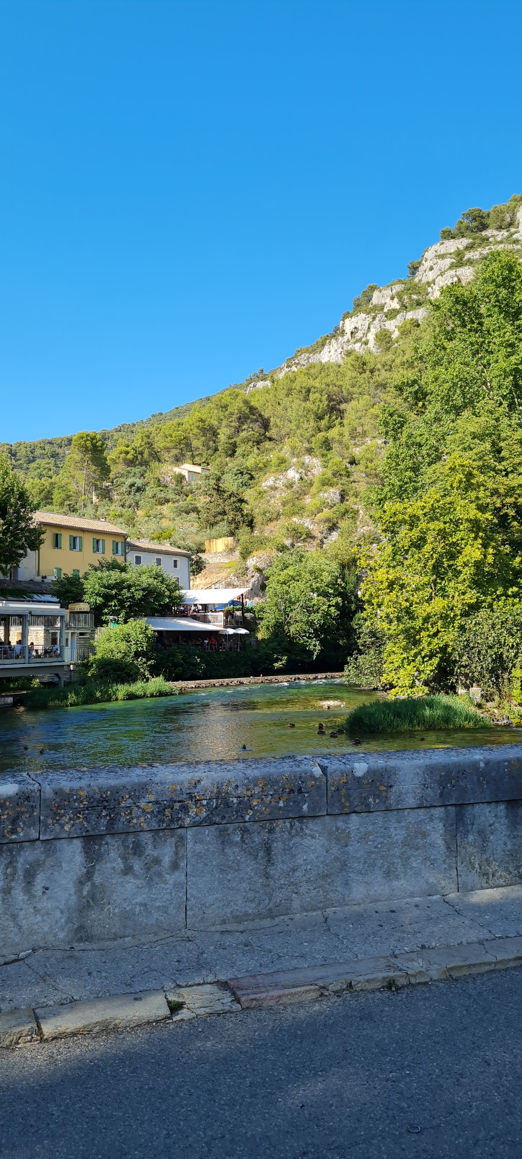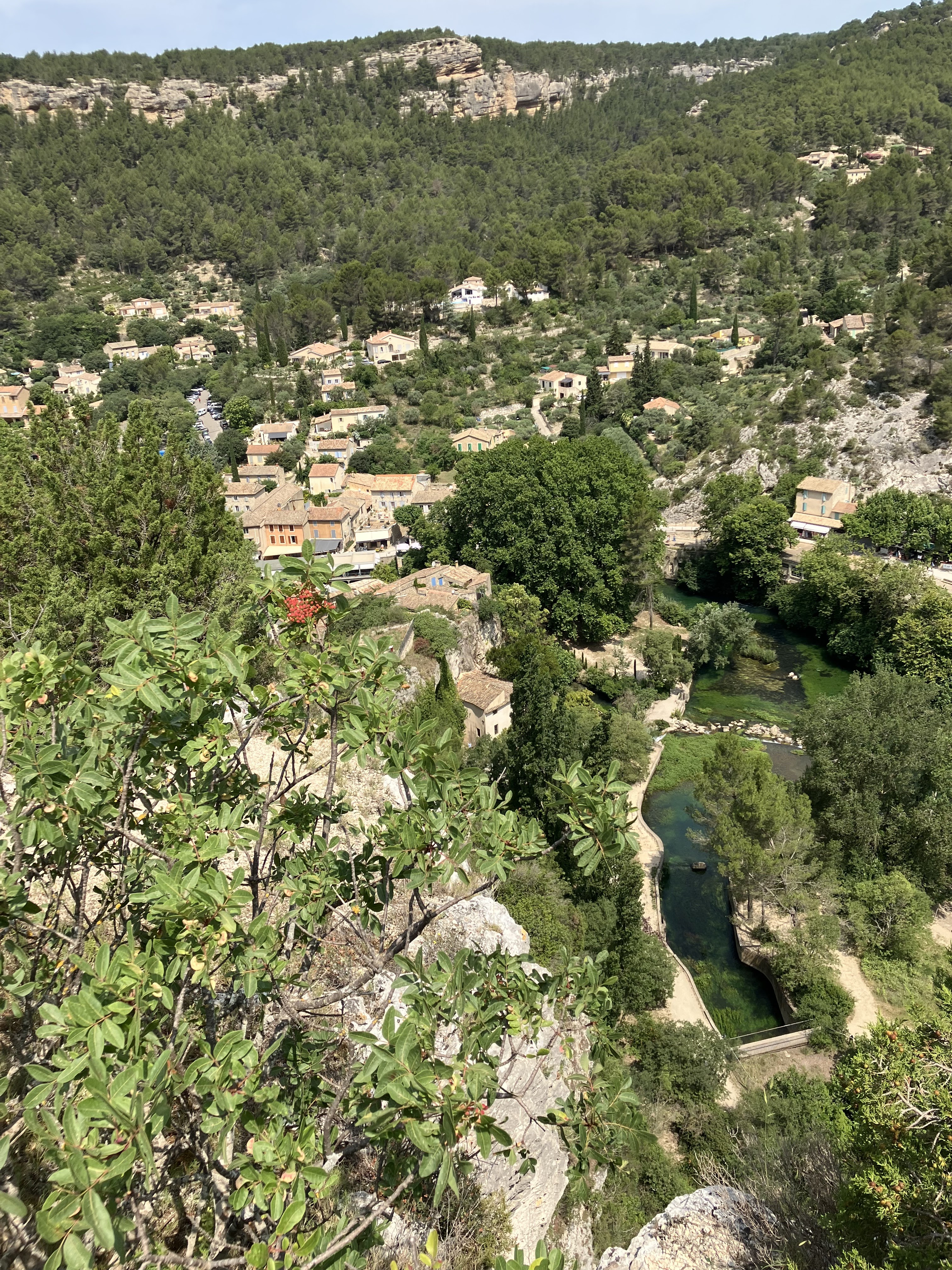 Superbe petit village plus authentique que l’Isle sur Sorgue. Bucolique, un chemin facile qui longe la Sorgue et nous mène jusqu’au gouffre de sa source. Des terrasses plongeant sur le cours très agréables. Un lieu de ressourcing. Et les contreforts du Luberon.