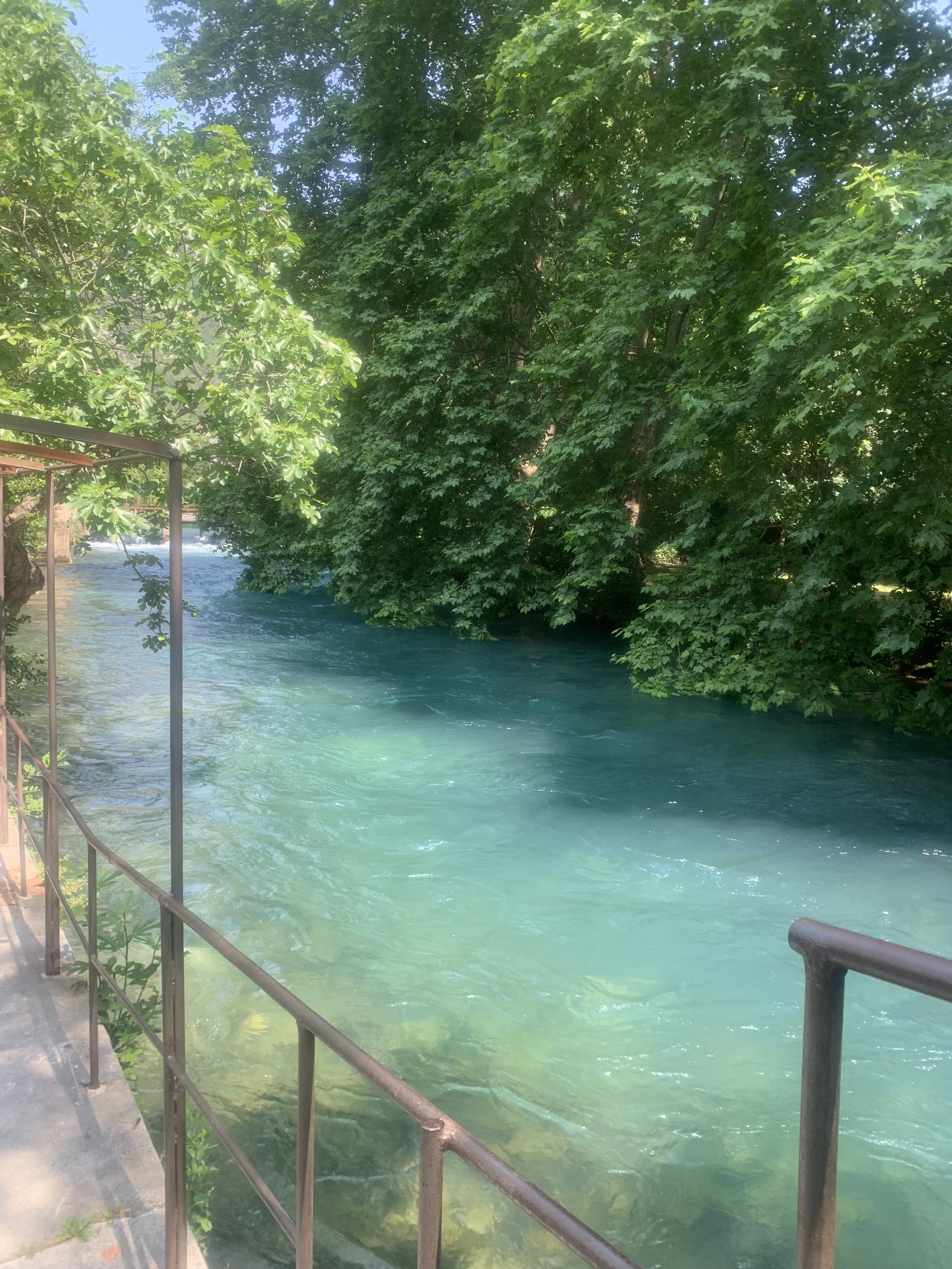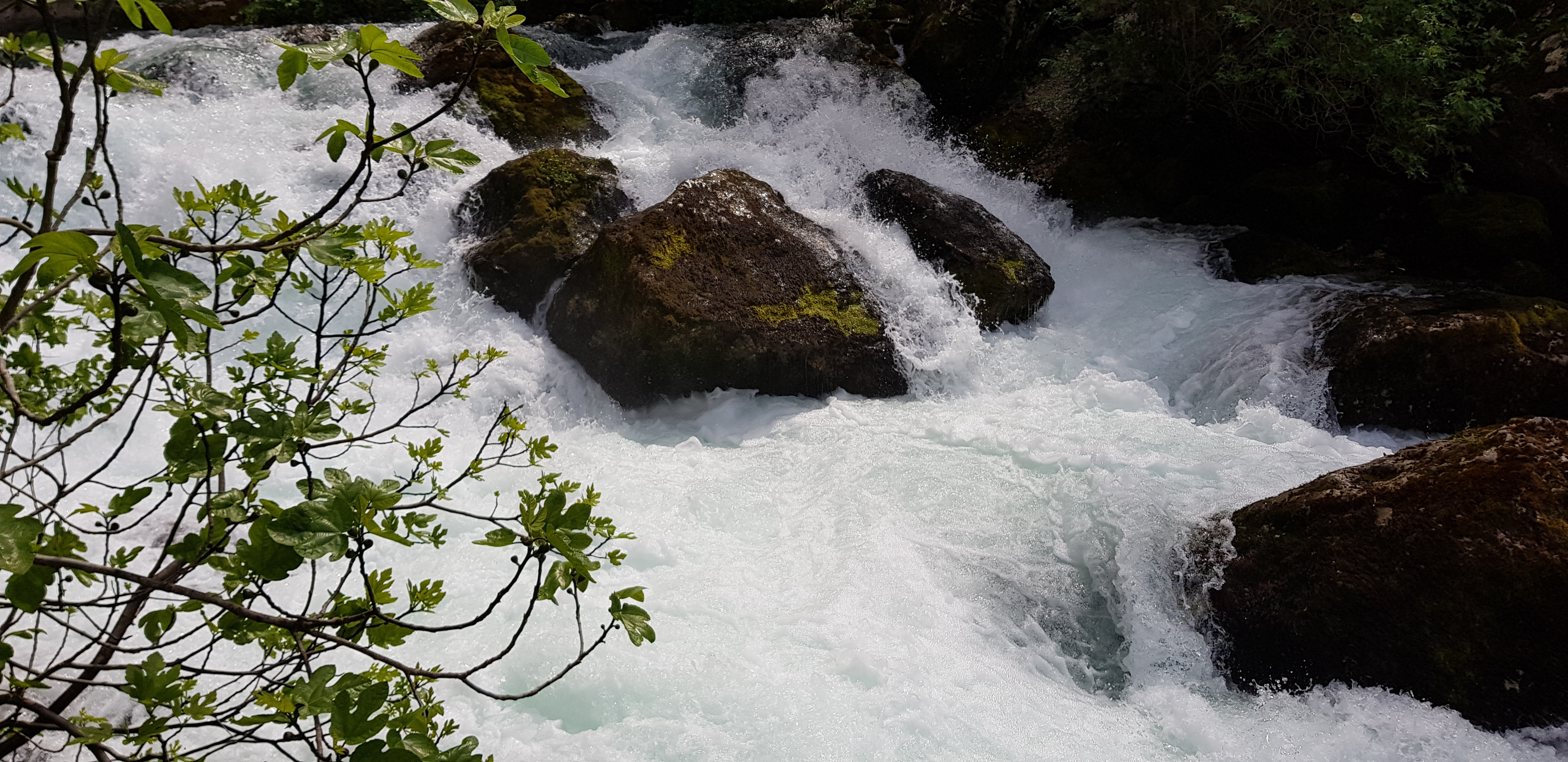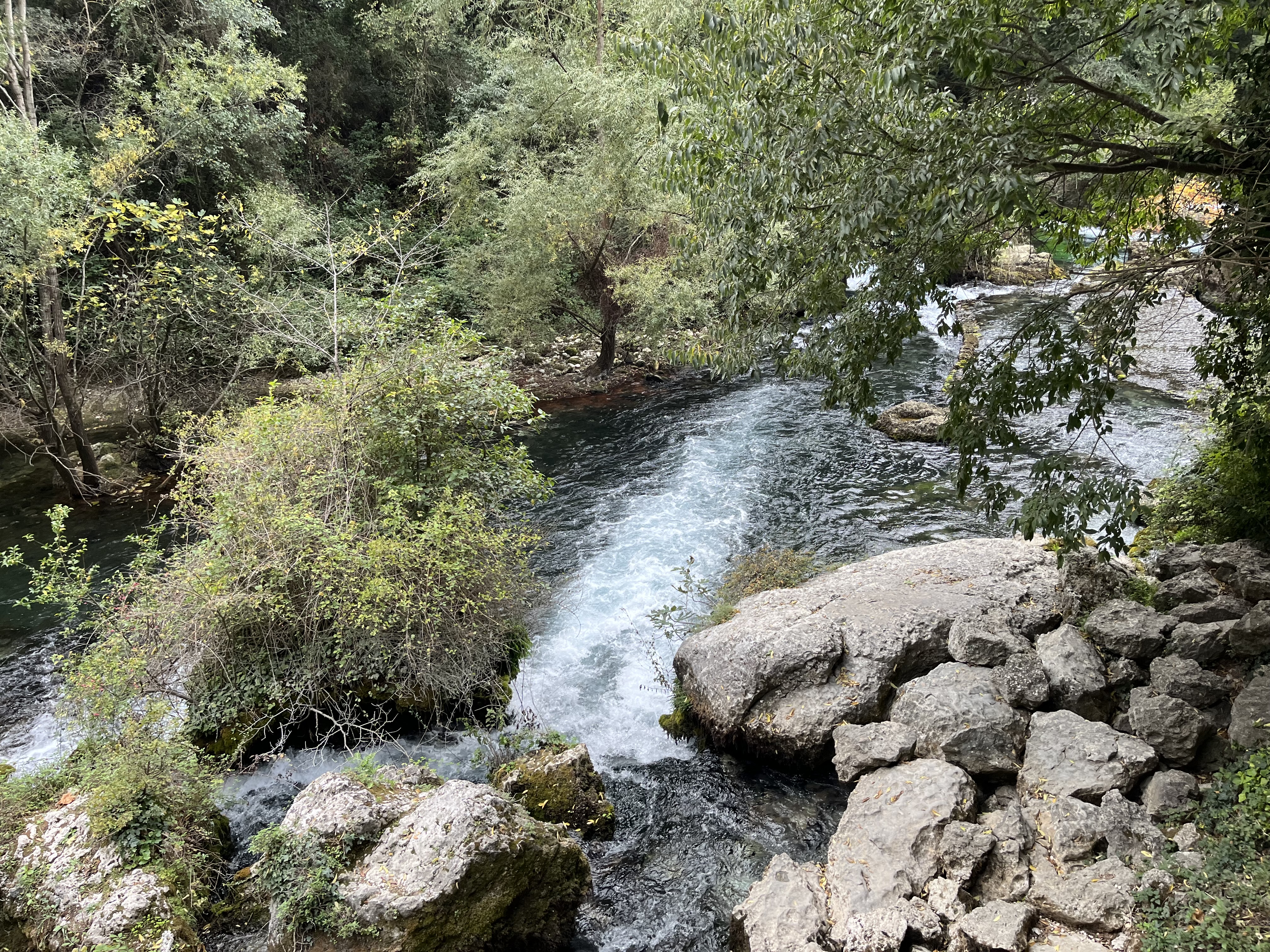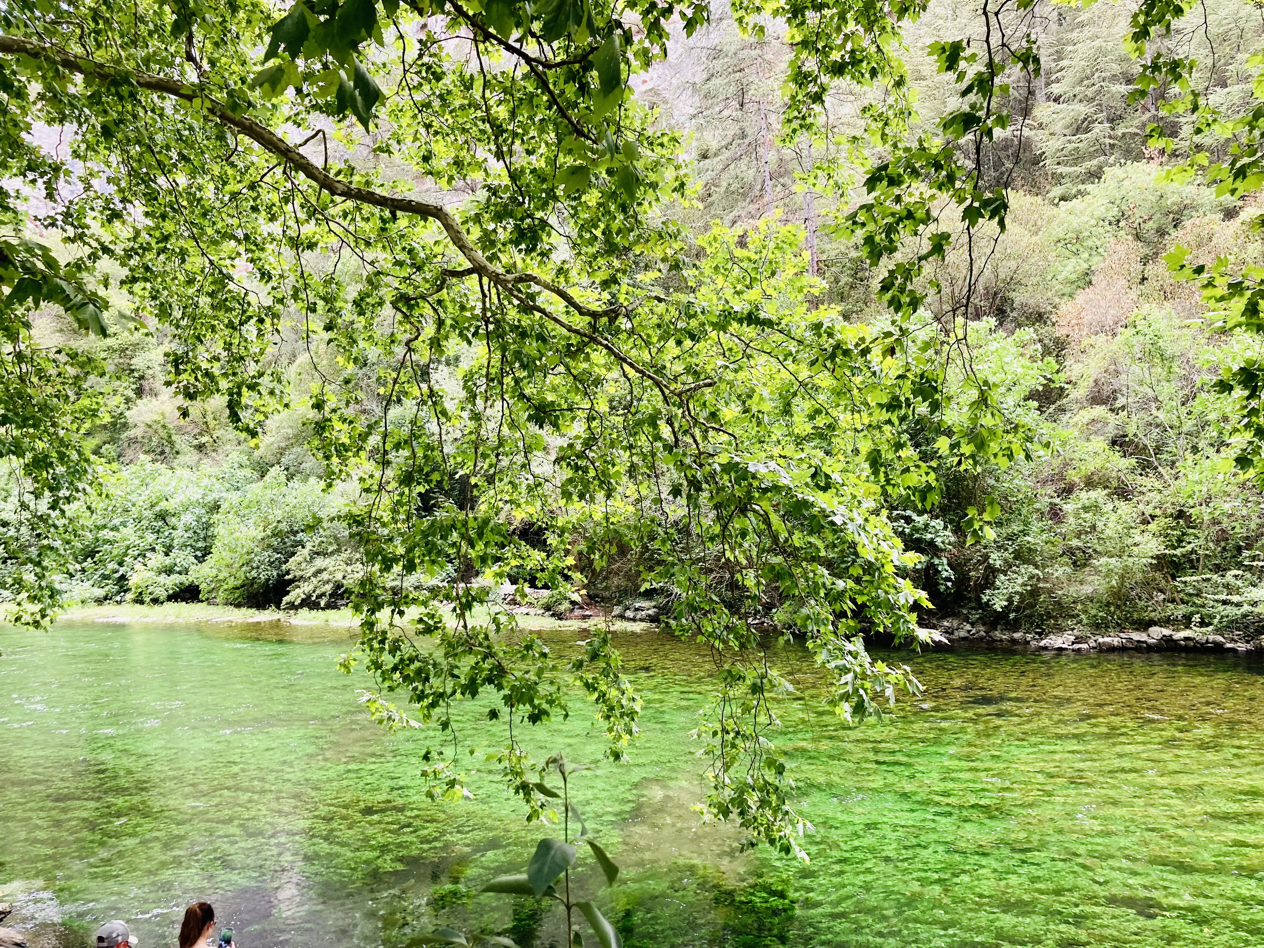 Fraîcheur et bruit de la riviere tôt le matin provoque une belle sensation d'évasion.... Mais vers 11h la population arrive en masse jusqu'à la source et c'est le bruit des gens qui casse l'harmonie de la nature exubérante avec le bruit de l'eau......
