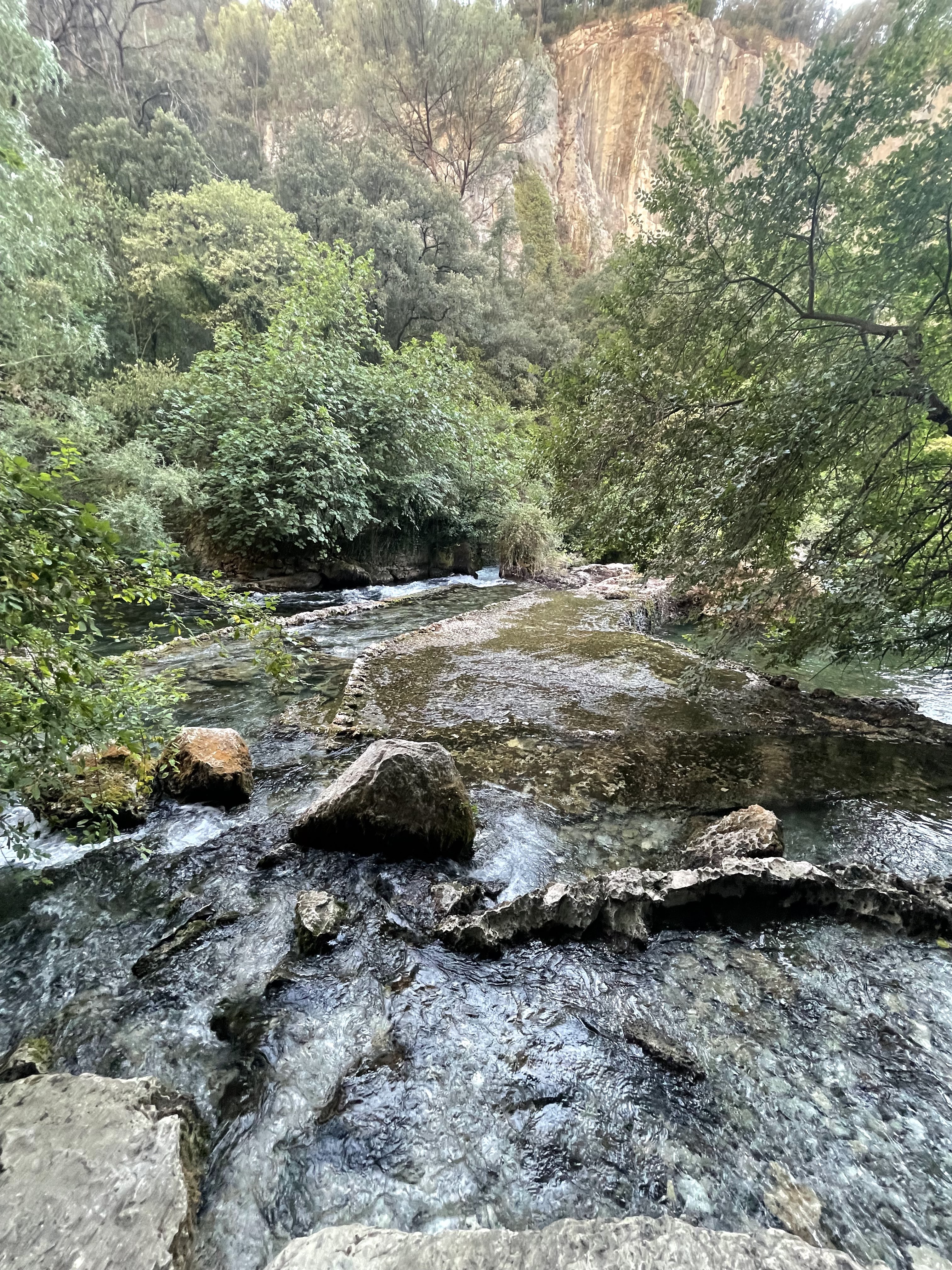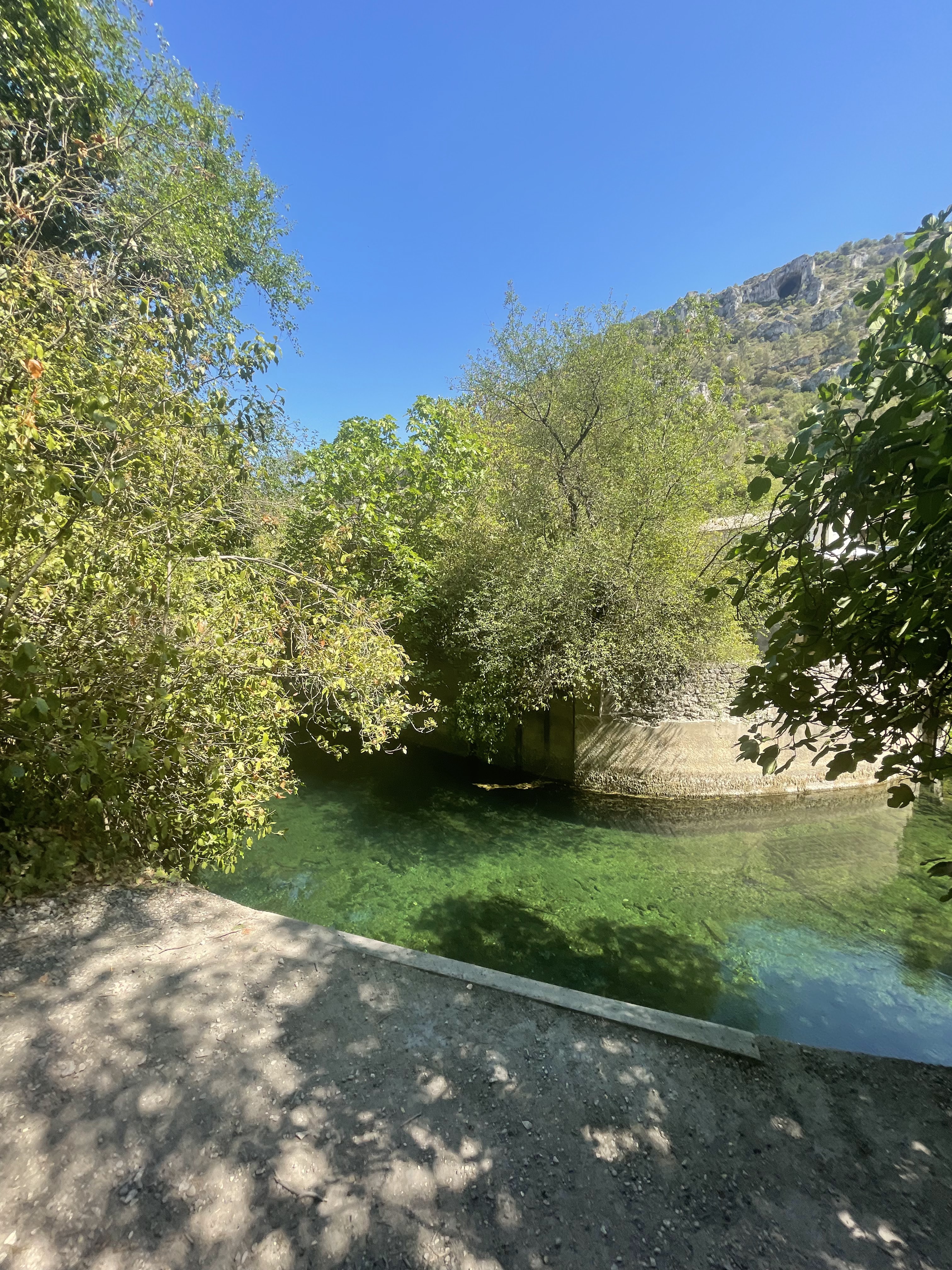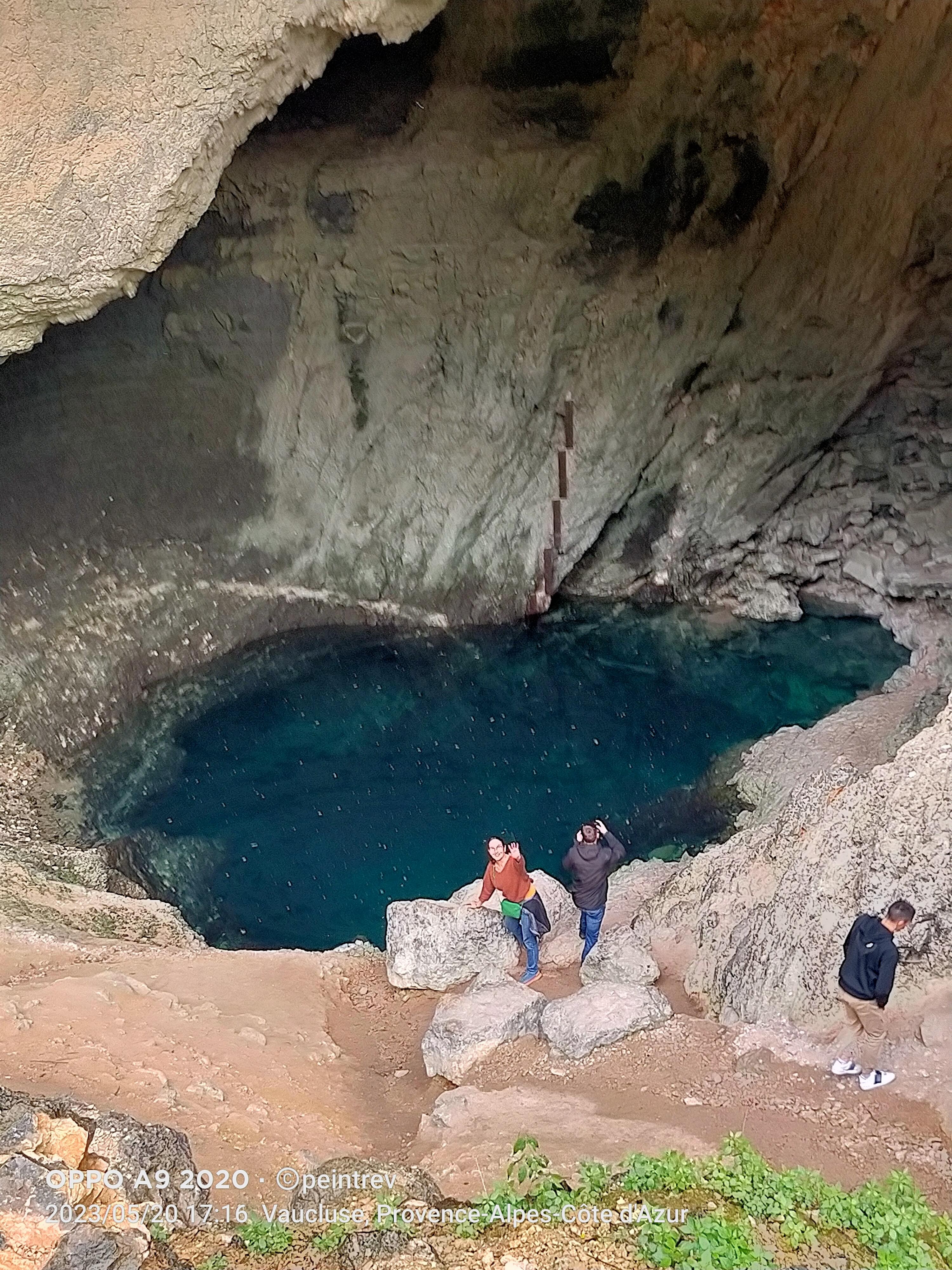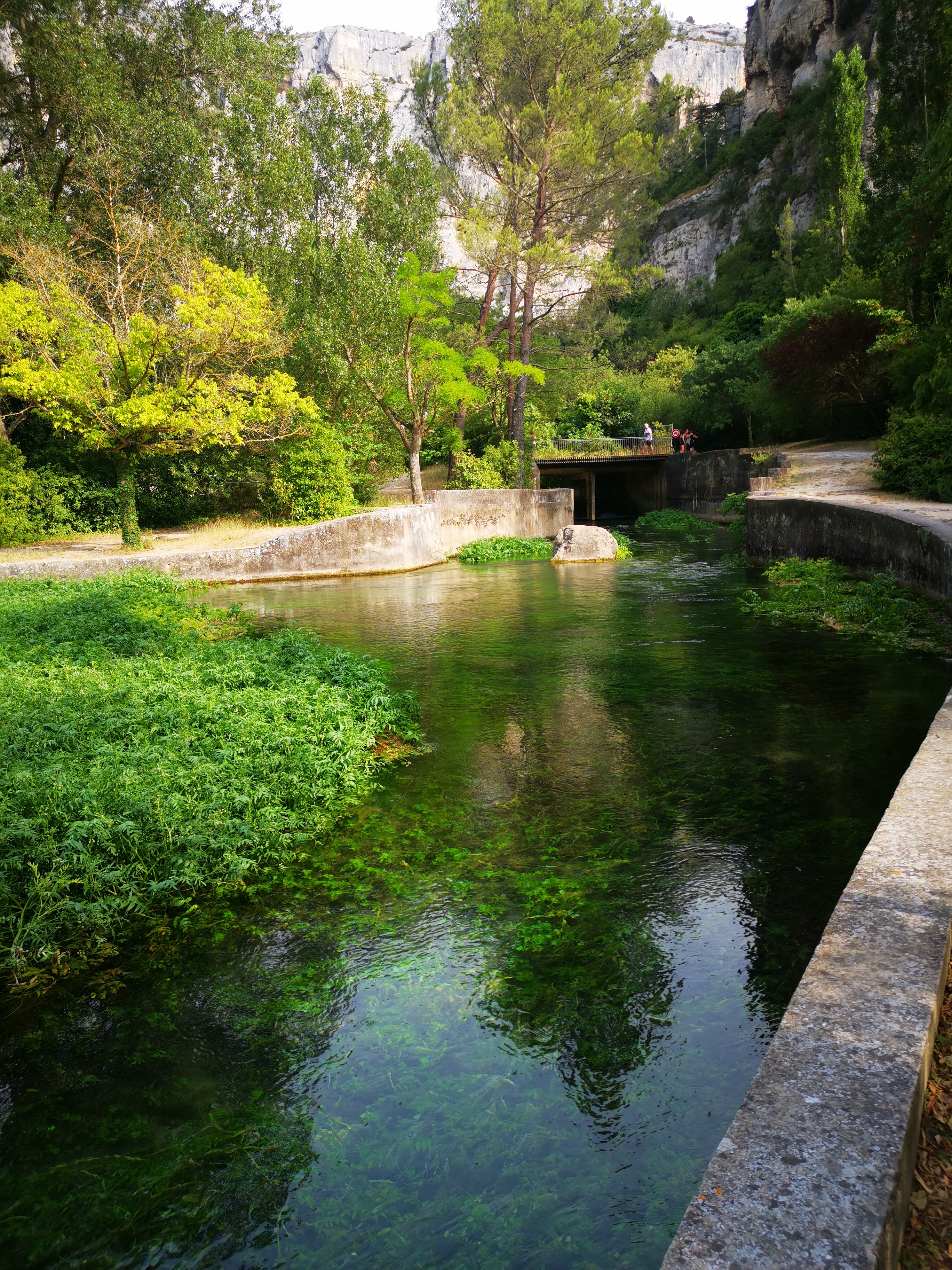 Virée jusqu'au gouffre, source de la Sorgue, impressionnant par le décors et le débit qui sort de terre.