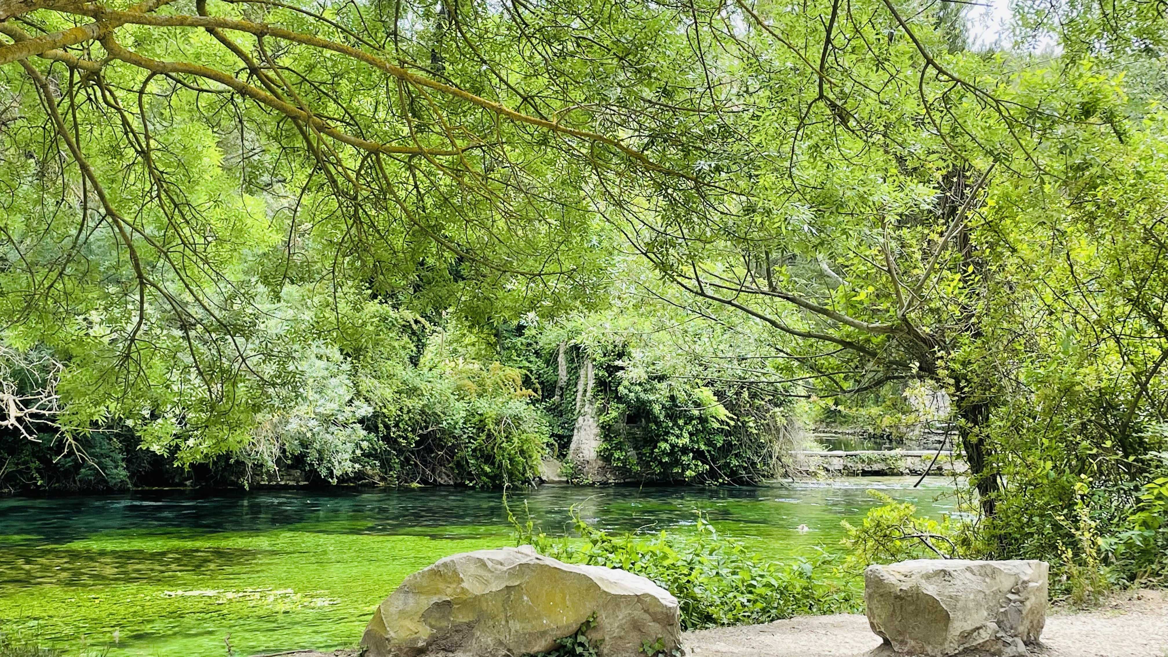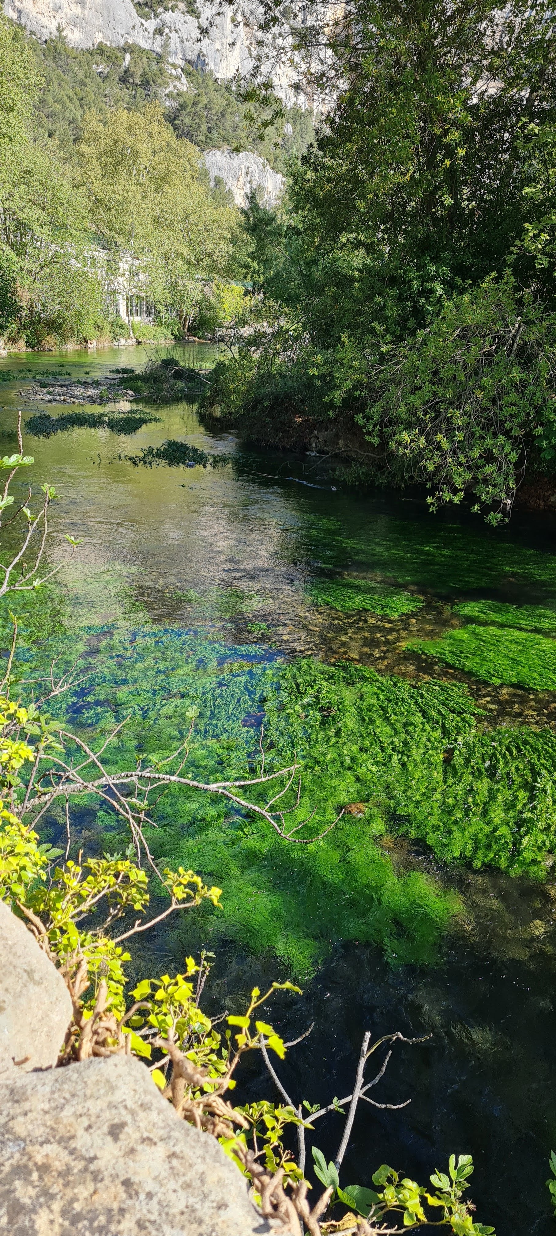 Très apaisant ce lieu jusqu à sa source , avec des couleurs , sortant du lit de la rivière , d un beau vert émeraude...