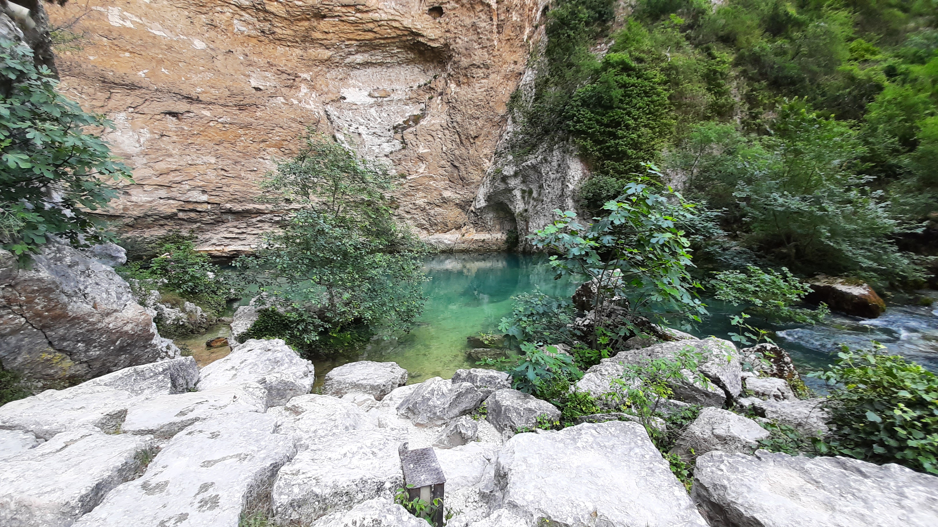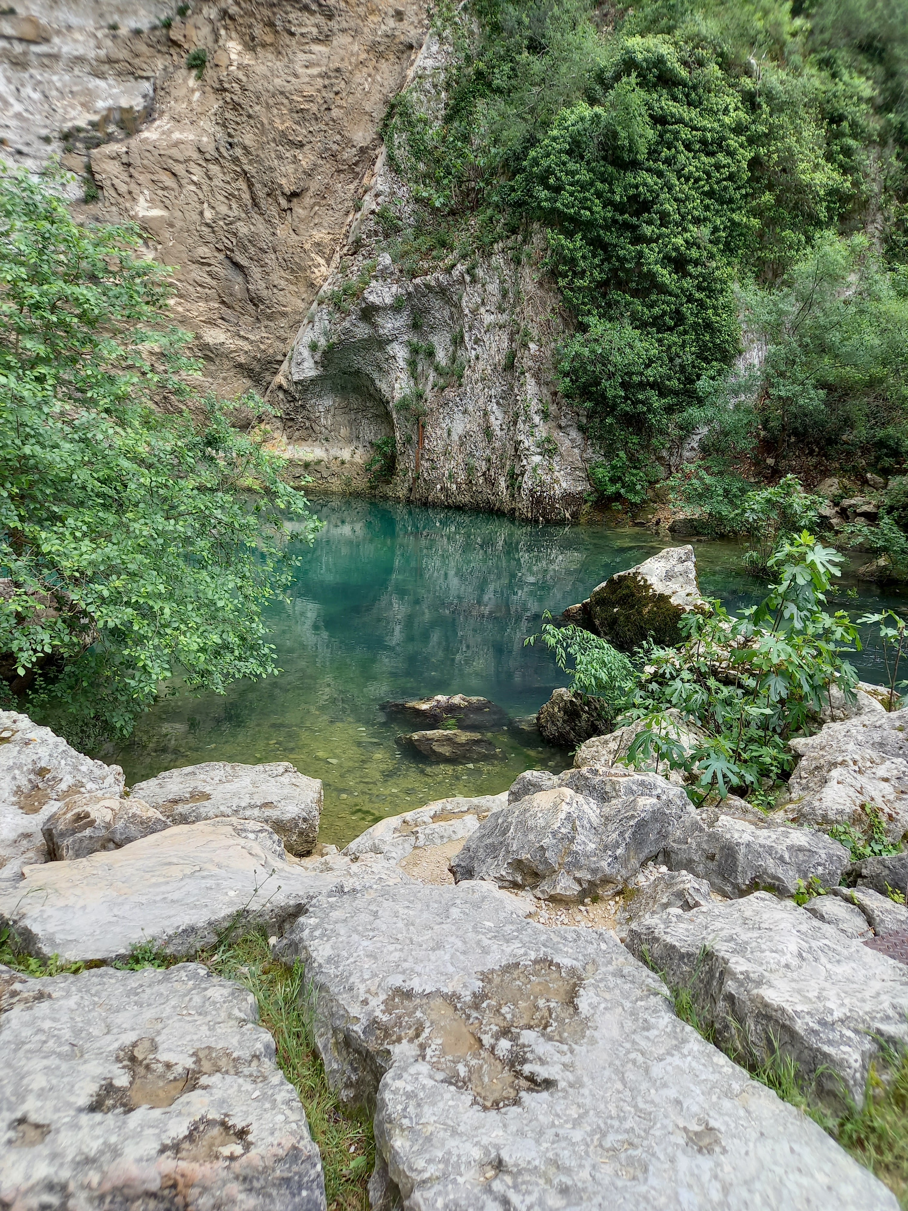 Très bel endroit, au frais. L eau est magnifique,de belles couleurs. Lieux pous s assoir et mettre les pieds à l eau. Balade jusqu'au gouffre en passant par l imprimerie.