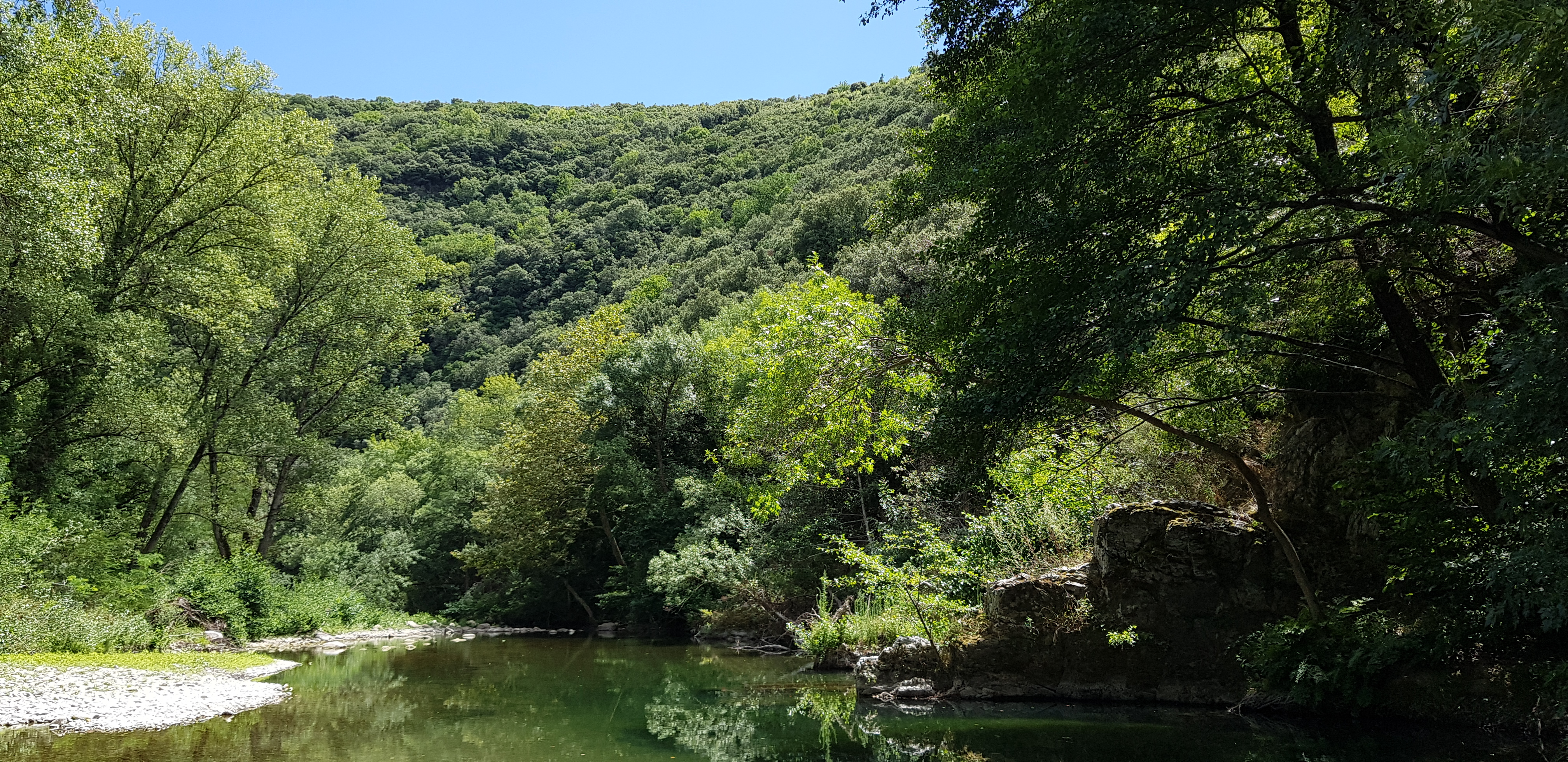 Facile d'accès à pied en marchant depuis Olargues en suivant la voie verte lieu calme et reposant sérénité absolue