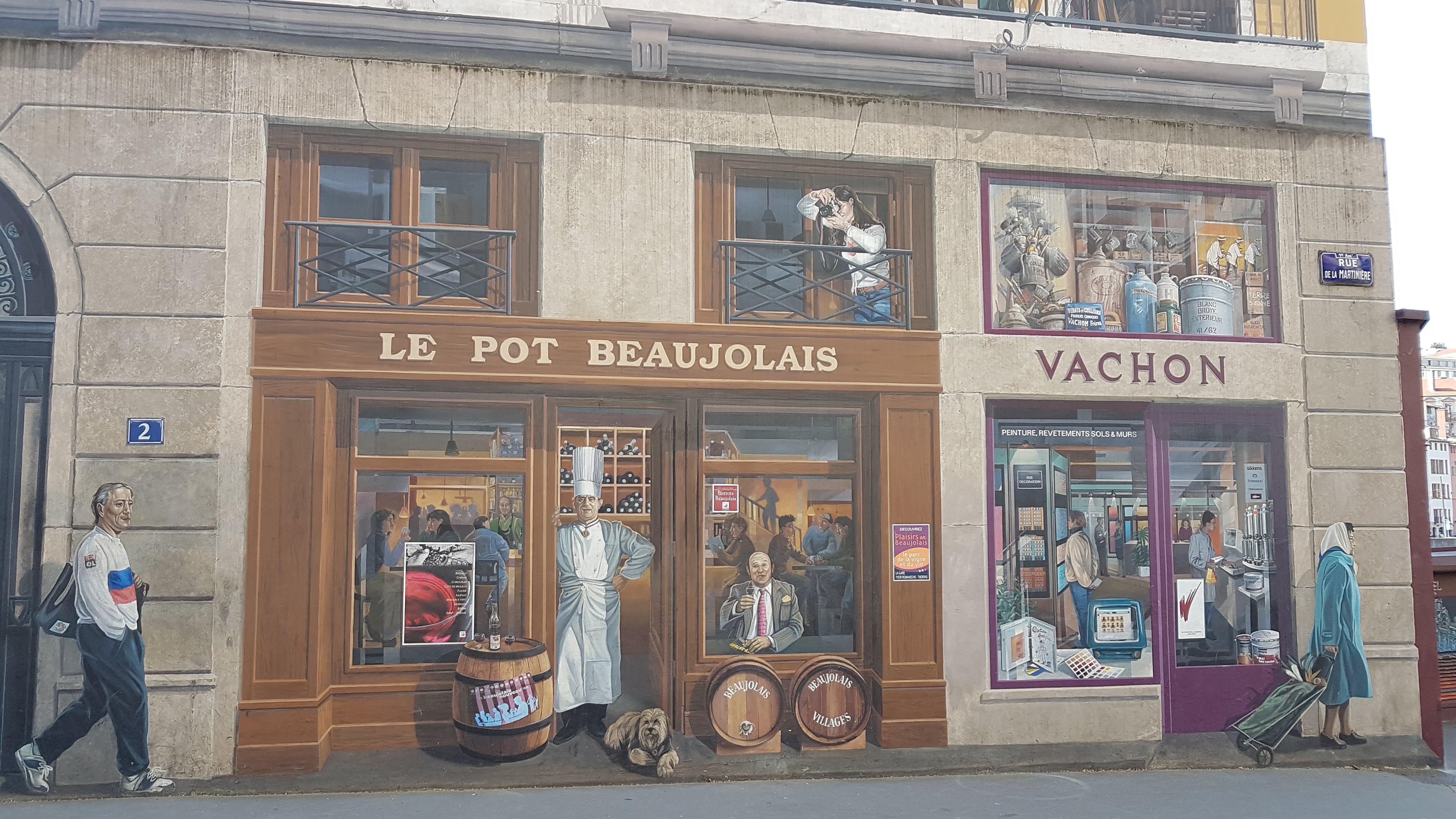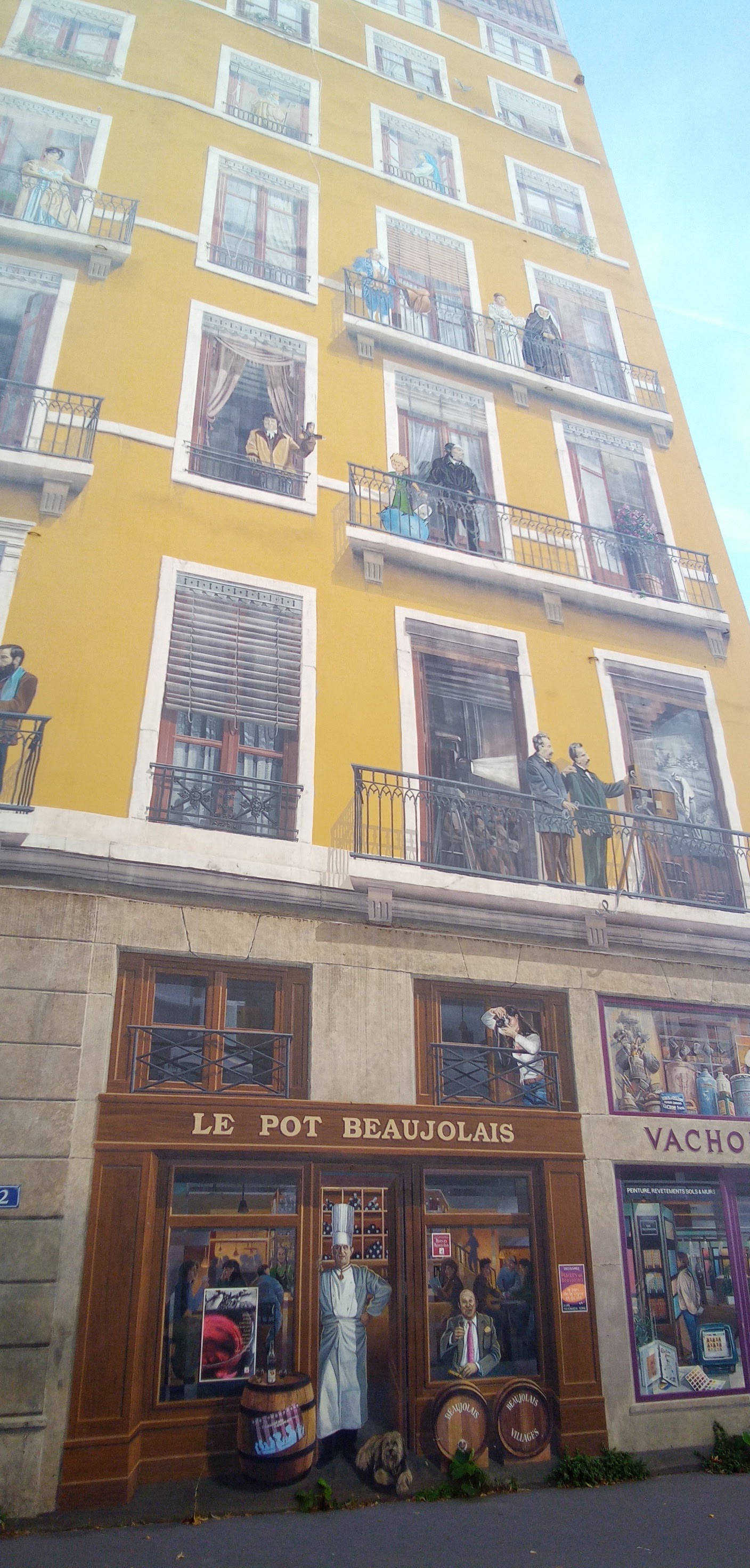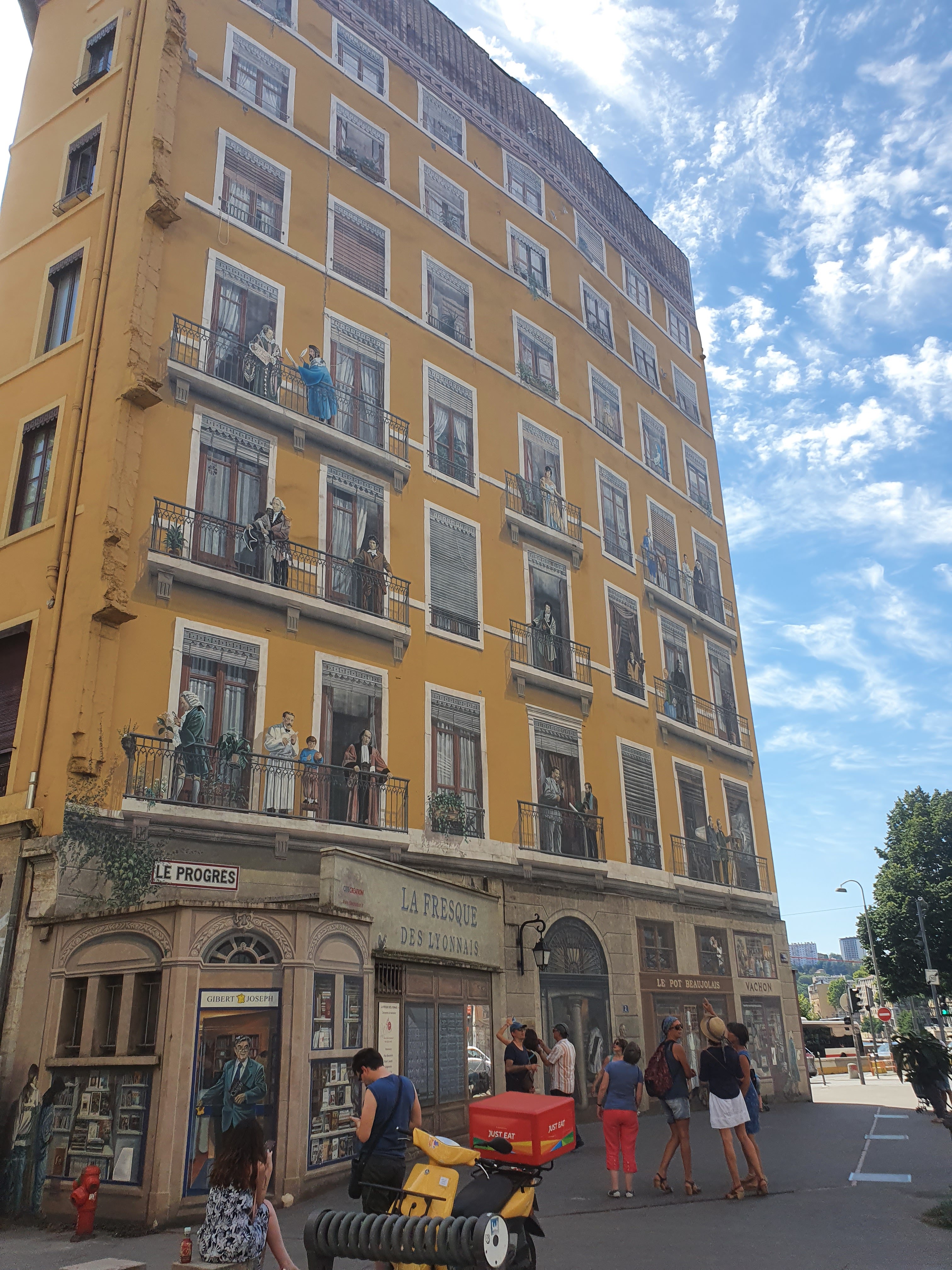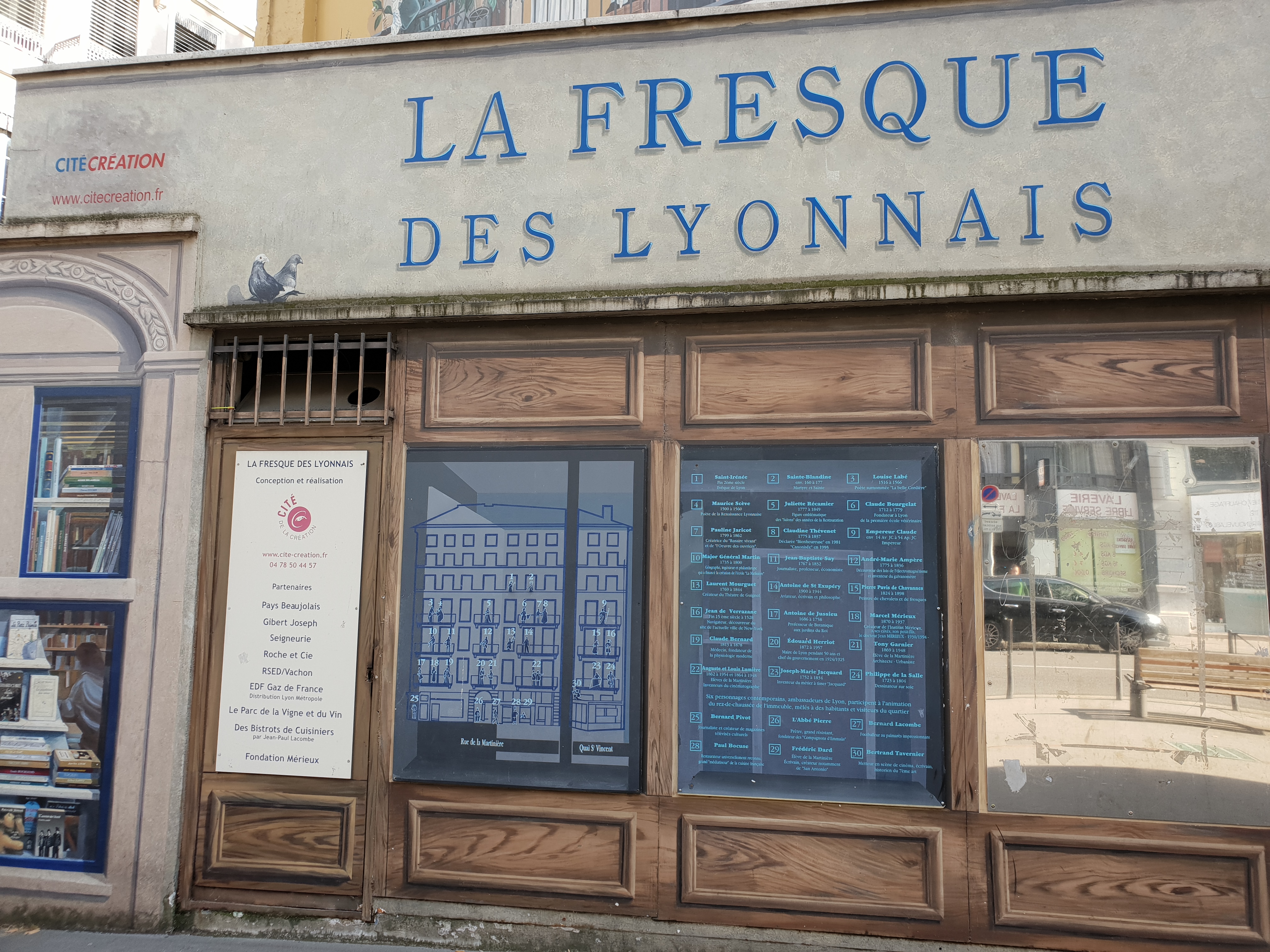 Un des murs-peints les plus célèbres de Lyon. Il figure de nombreux personnages historiques de Lyon, de même que l'architecture typique de la ville.