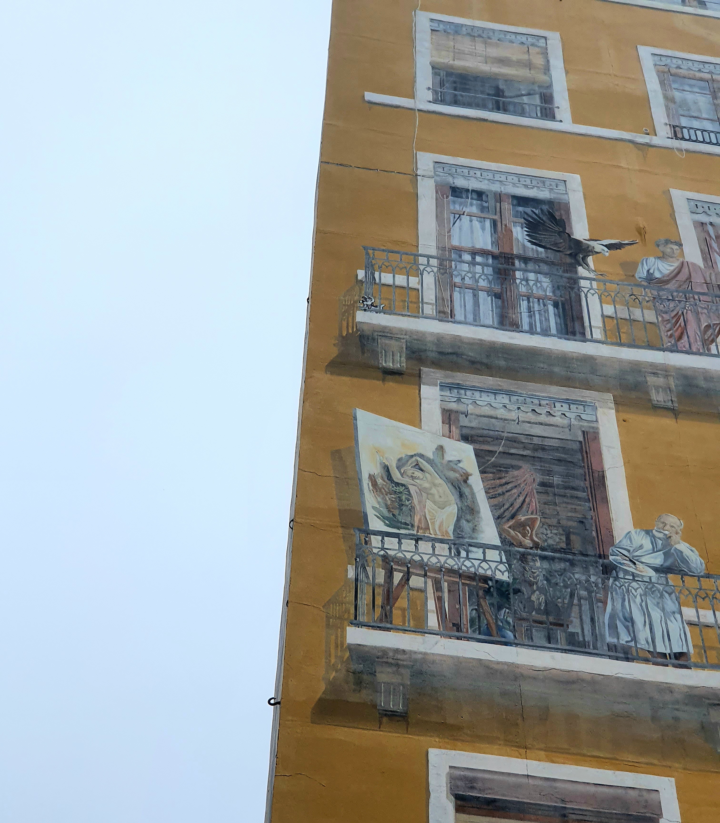 Quelle magnifique fresque j ai vu là Très réaliste, des petits détails, en trompe l'œil, c est impressionnant en plus, vu la. Heureux du bâtiment