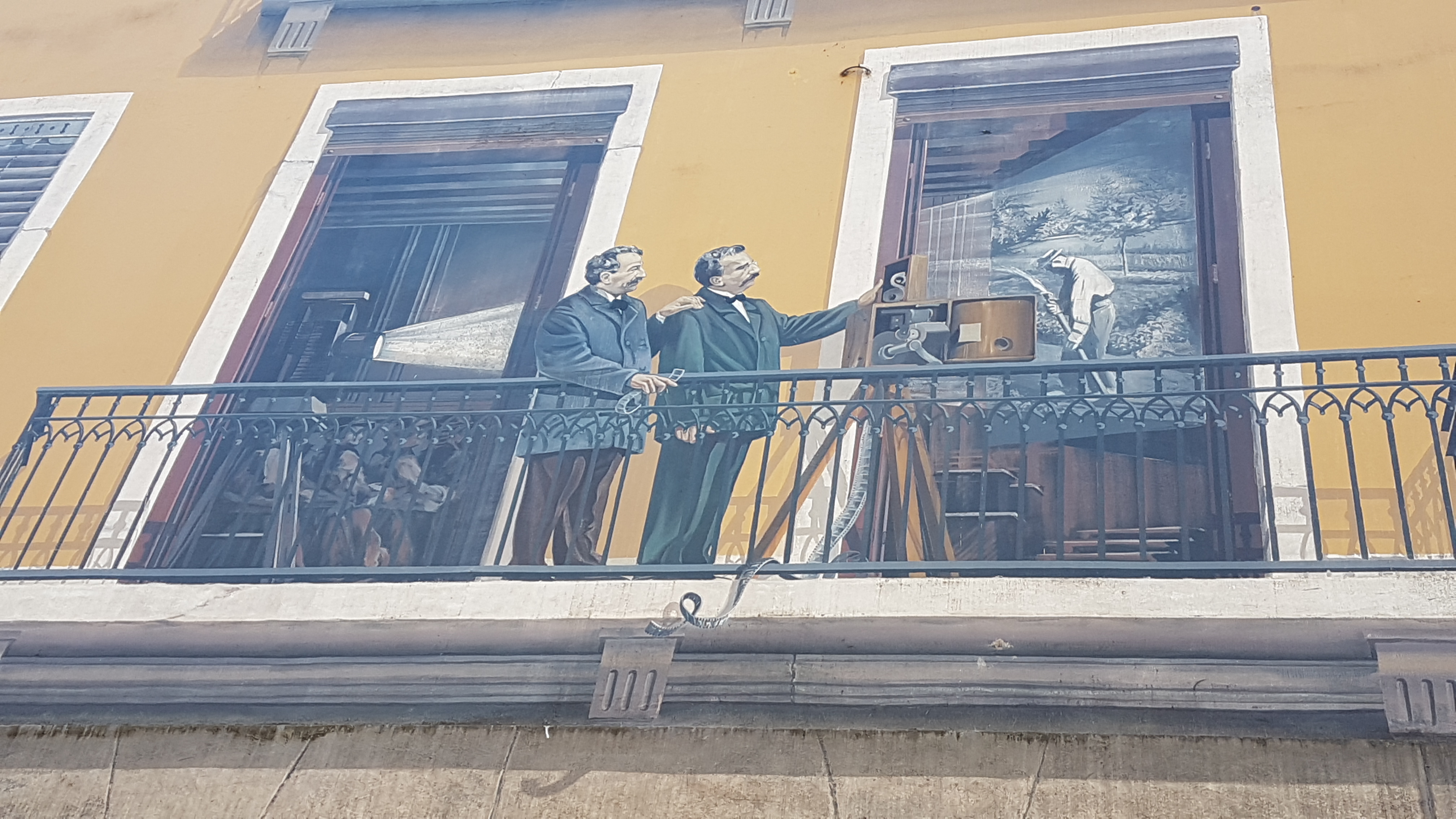 Sympa de découvrir les Lyonnais célèbres en trompe l oeil. Il reste encore quelques fenêtres pour ceux a venir :-) un clin d oeil particulier aux frères Lumière, a St ex et a Frédéric Dard :-D