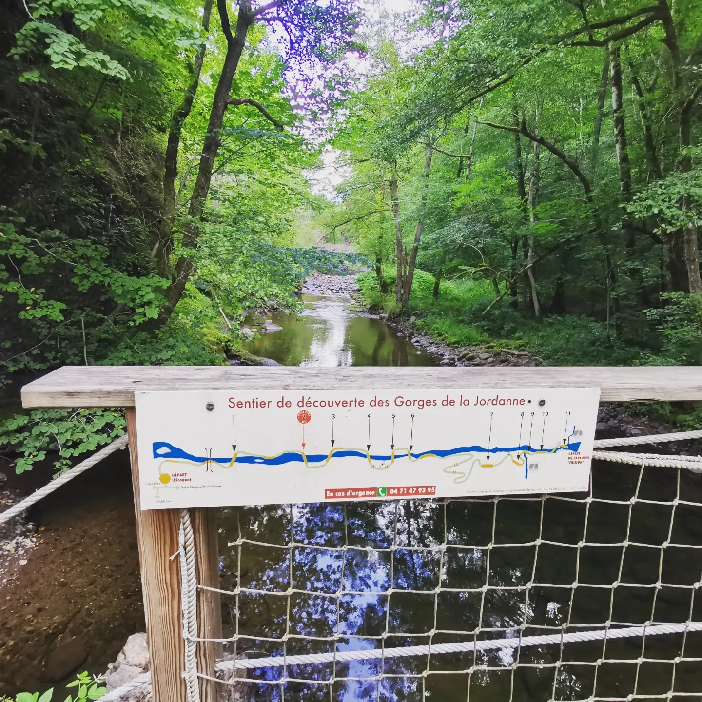 Visite des gorges de la Jordanne.... Si tu aimes les bois, les rivières, les passerelles (beaucoup les passerelles) ce sentiers de 4km(a/r) est pour toi ! Bravo à l association qui a aménagé cette visite ( beau boulot) en ....2006! Et voilà ça fait 17 ans ...et ça se voit ...sentiers découverte vieillot...et fin de la balade ( une cascade ???) Impossible à faire suite éboulement.... Sinon c'est 4 € par personne (heu ...pour longer une rivière ???) faut soutenir l'association.... Les 🐕 🐕 par contre ont adoré 😉 car ouf ils sont admis en laisse ..et en plein été ça doit être rock and roll les croisements sur les passerelles ...