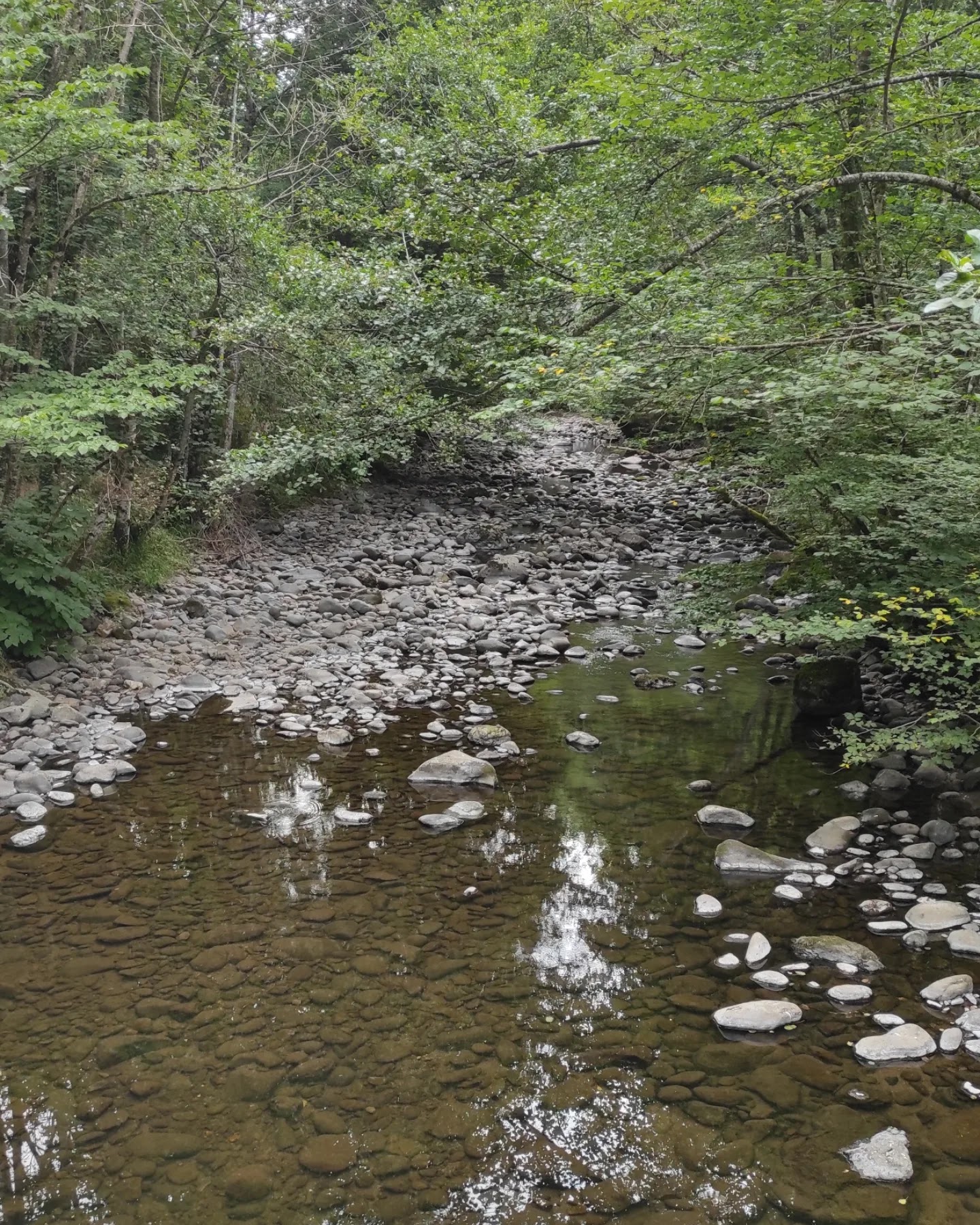 Superbement ombragé parcours avec nombreuses traversées de la jordanne. Petits points noir la marche sur les galets(gros) pas top.