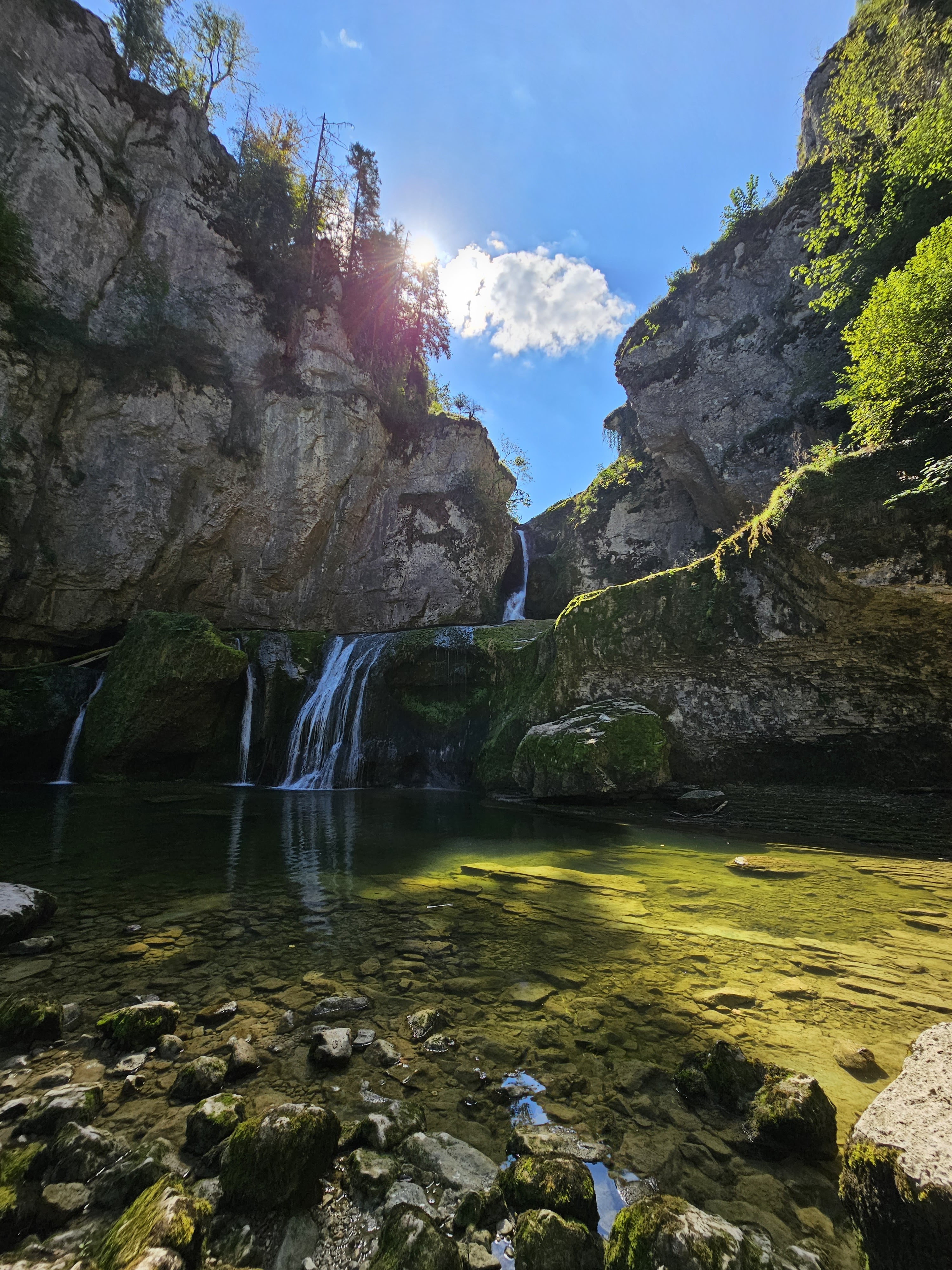 Un site du Jura qui mérite le détour. Des gorges impressionnantes et une cascade qui « dépote ». Petite randonnée le long des gorges jusqu’au moulin qui mérite de nous rendre 30 minutes.