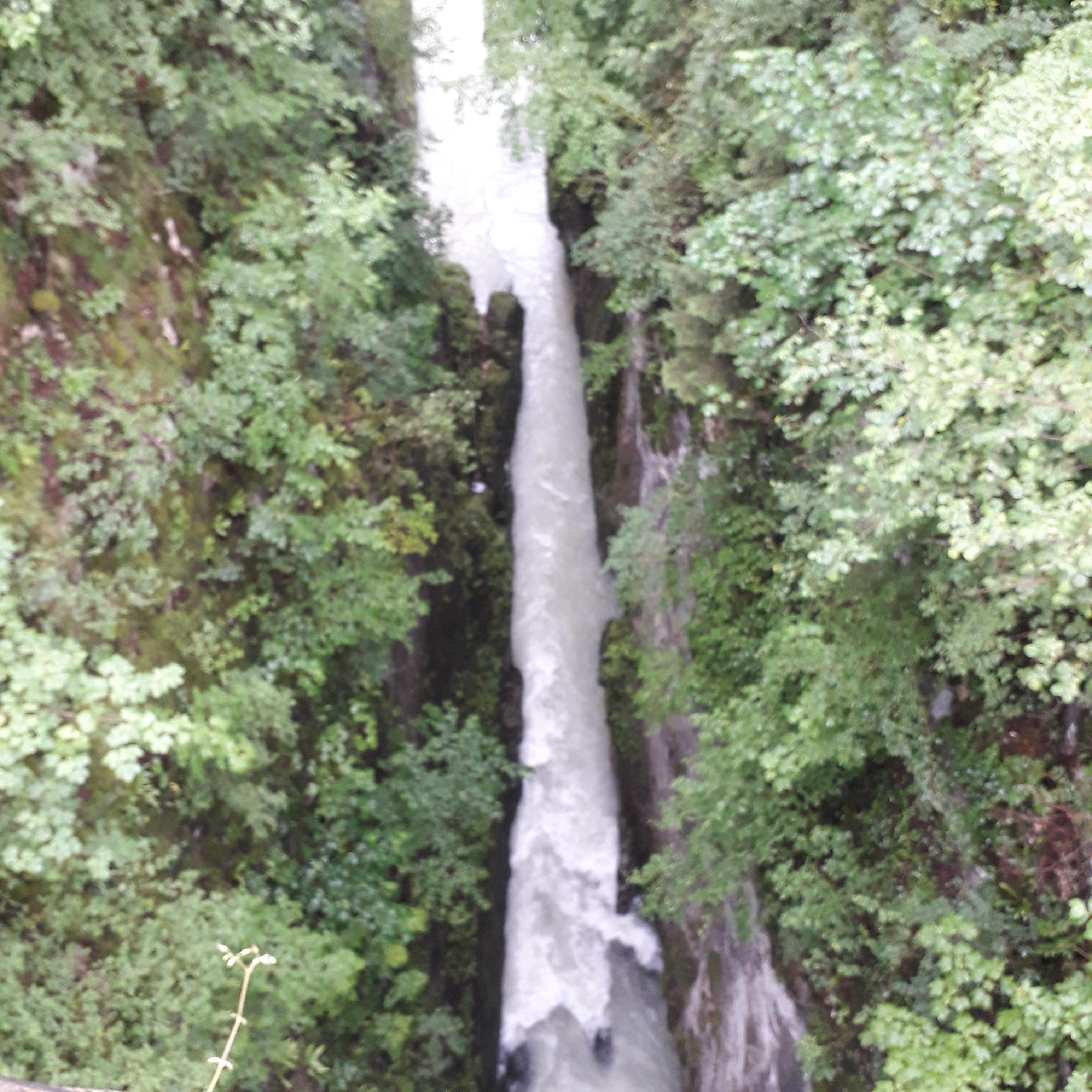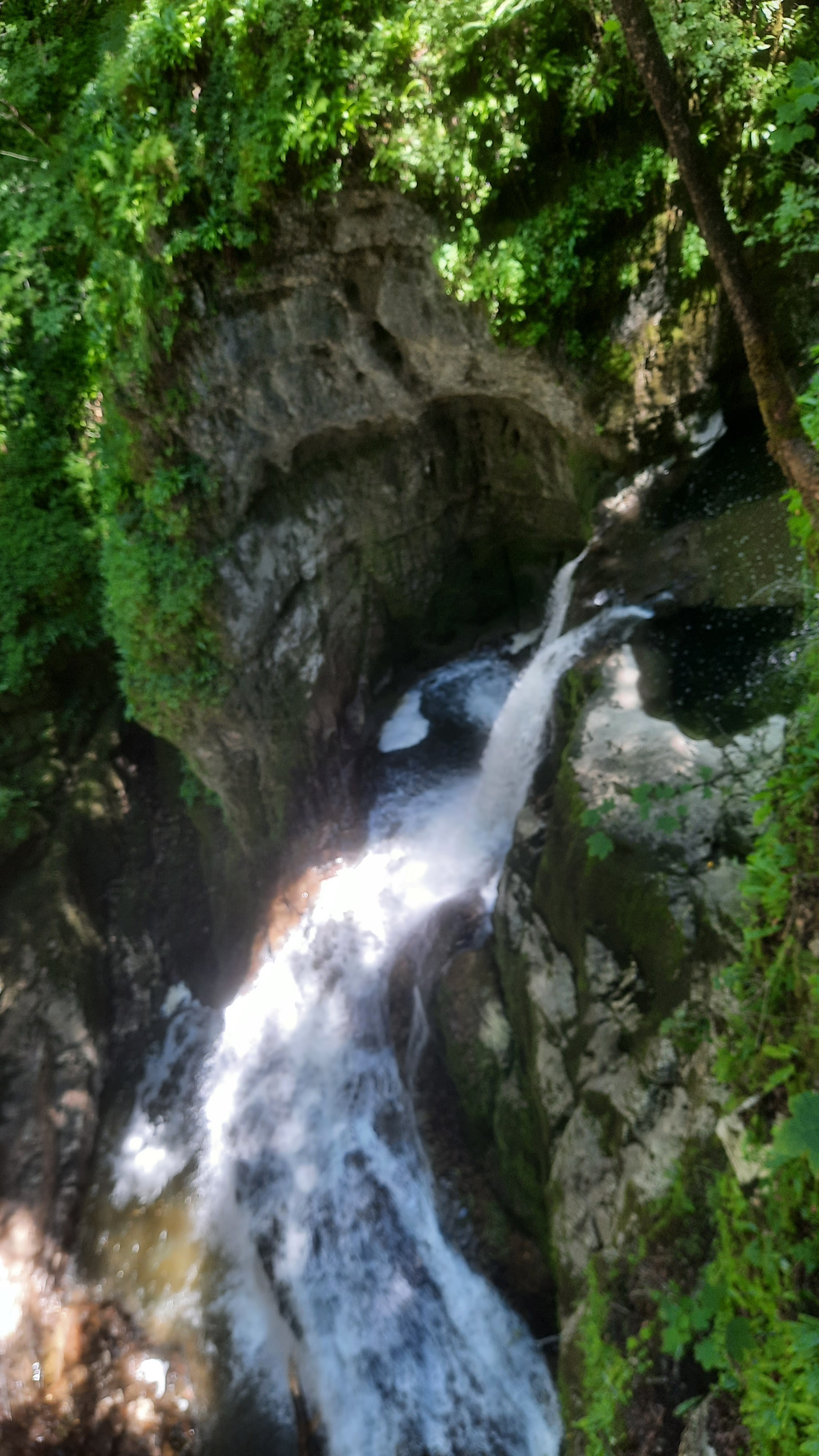 Site touristique impressionnant où l'eau vrombissante vous surprend dès l'arrivée sur le pont . Ensuite prenez les escaliers sur le côté du pont et suivez les panneaux ronds avec une fée dessinée . Vous ne serez pas déçus du déplacement !