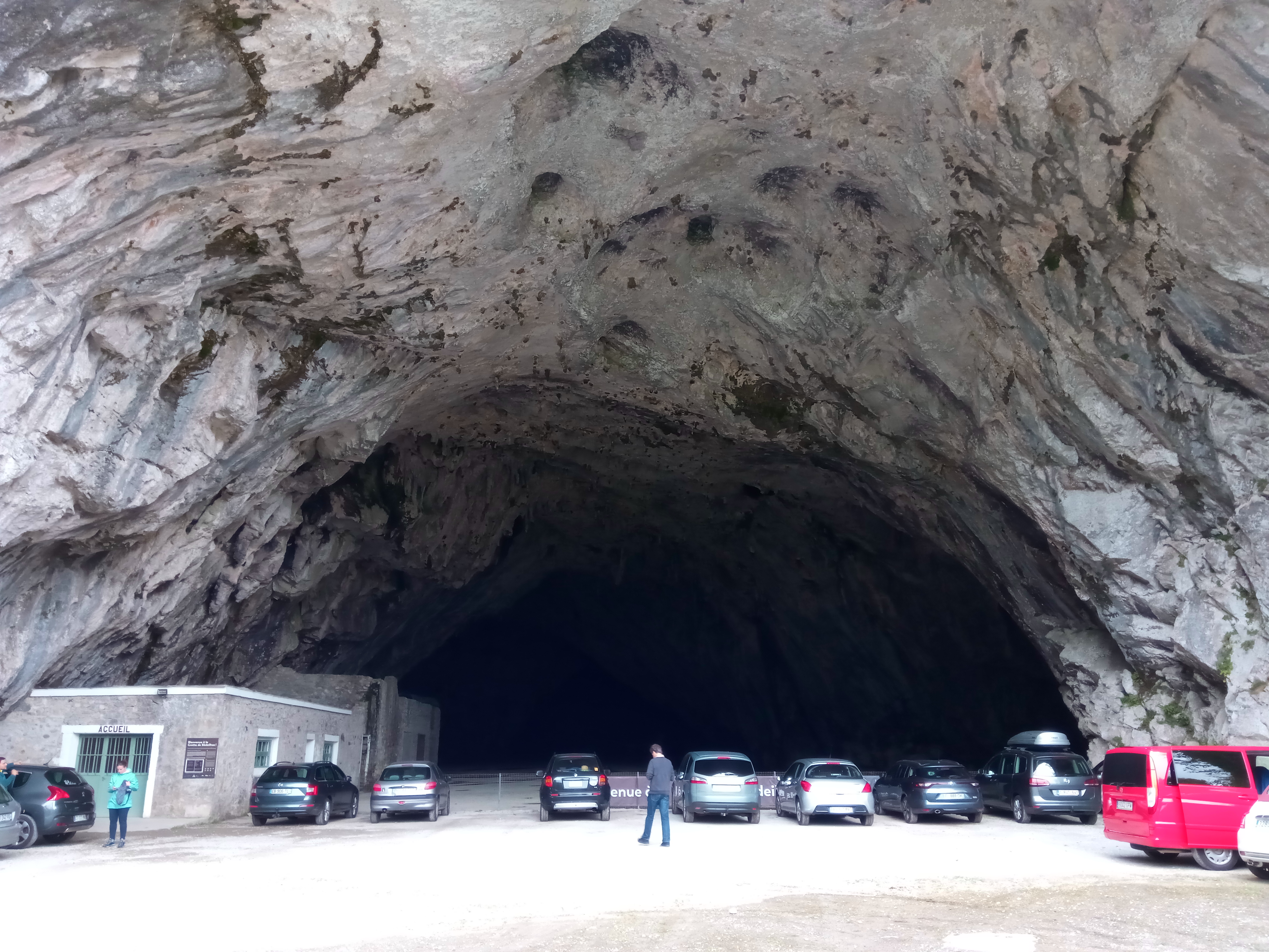 Vaste entrée de grotte mais entrée piéton sur le côté. Prévoir lainage.