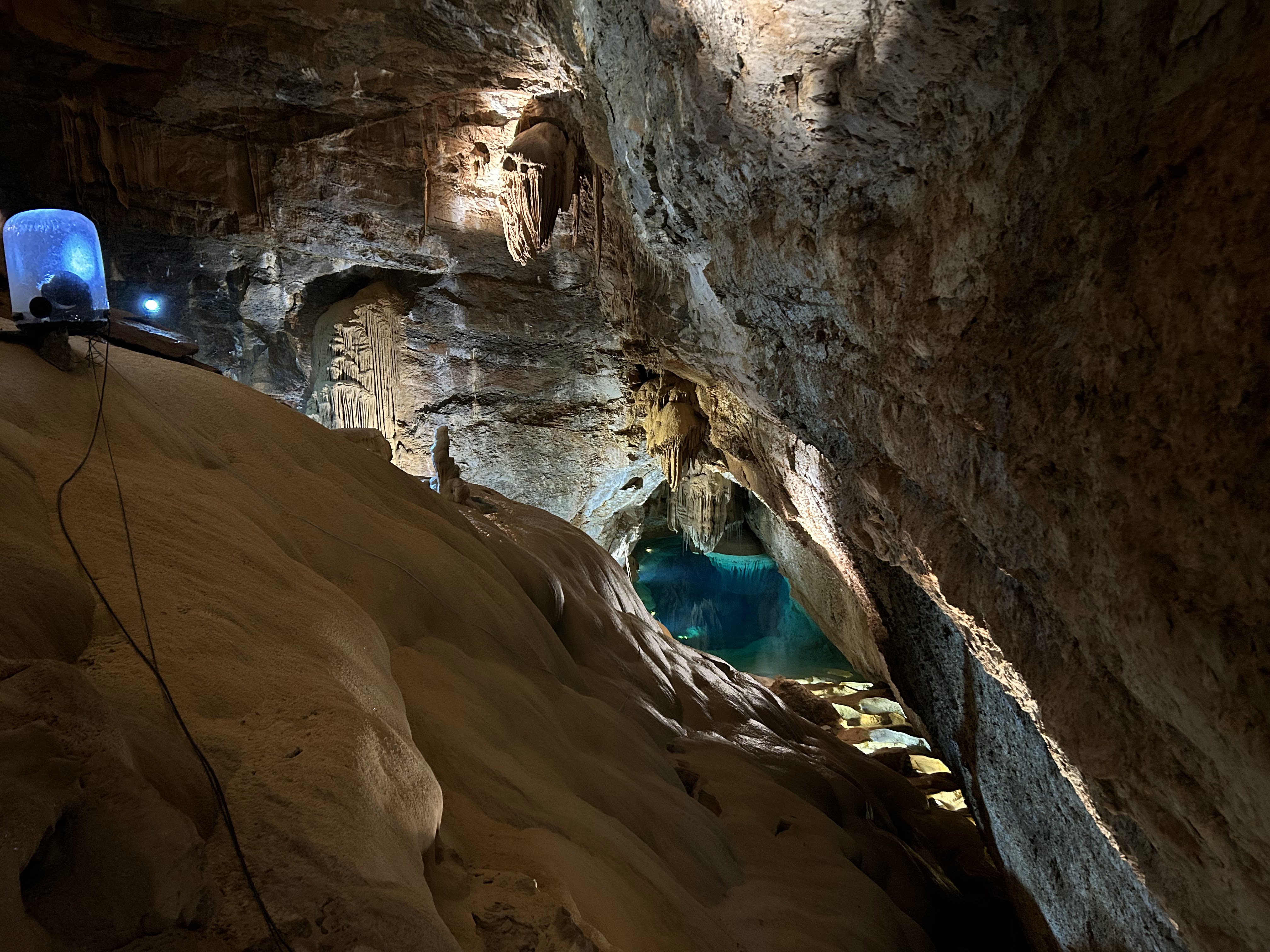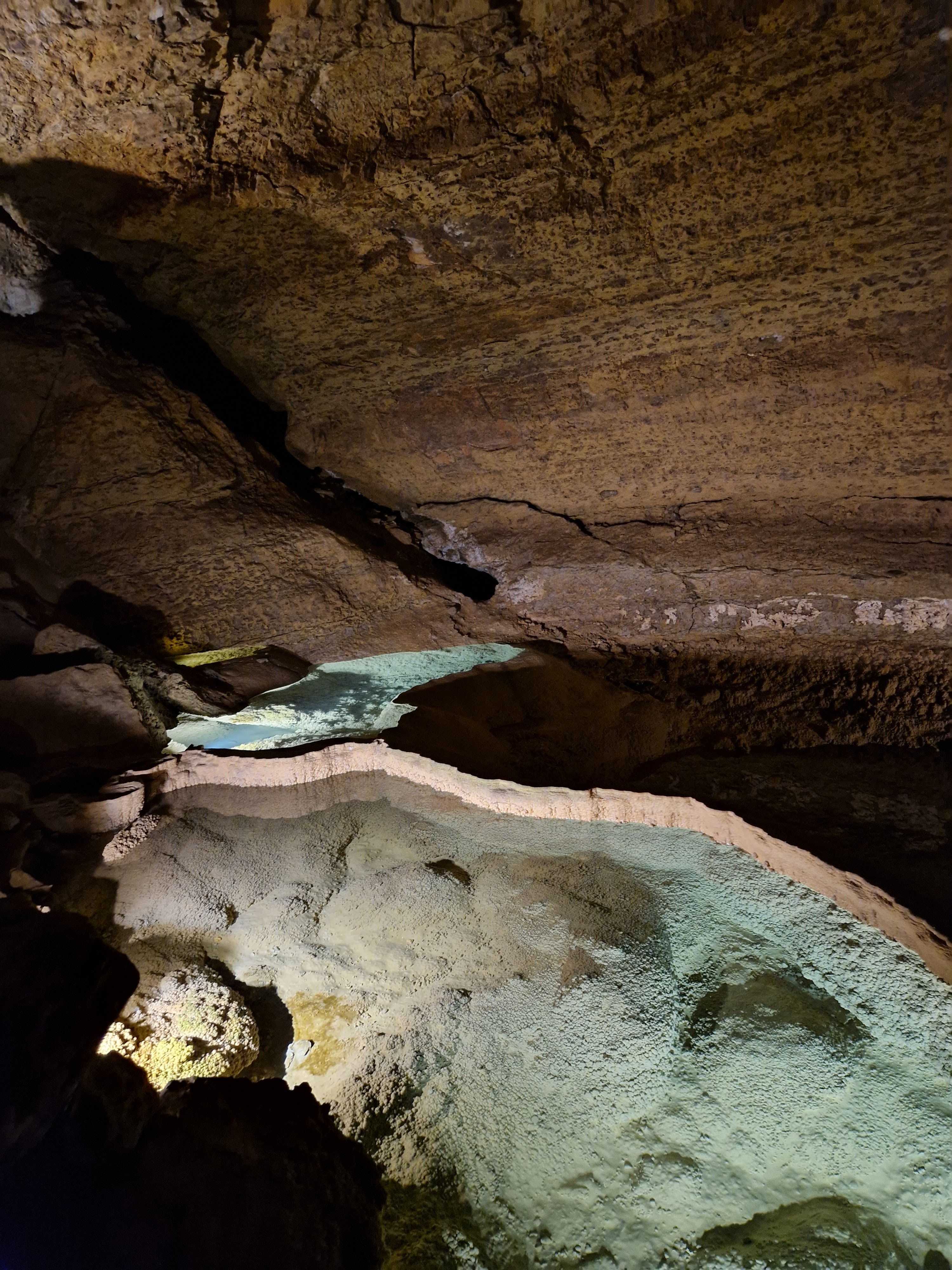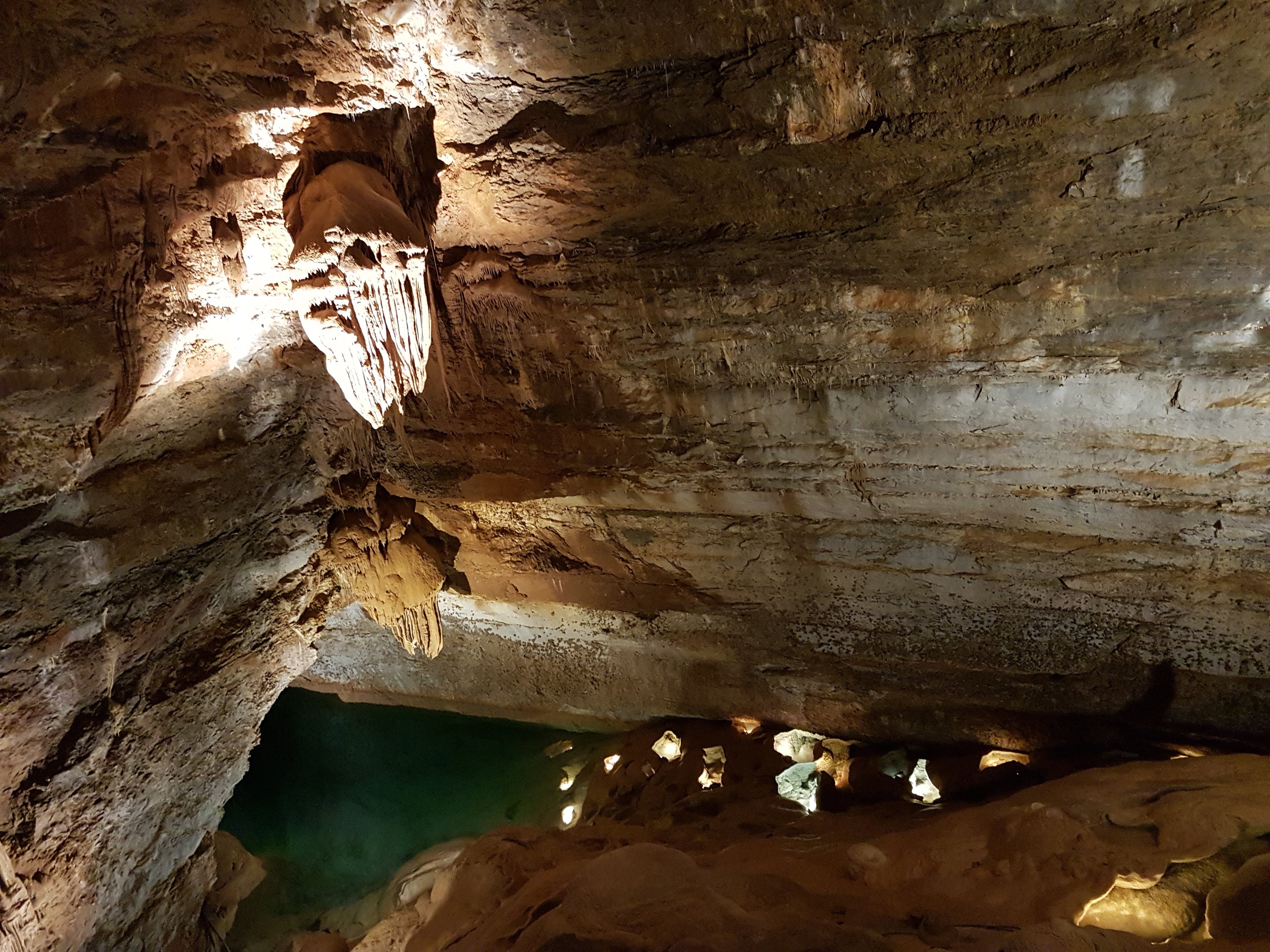 Lieu à visiter près du musée du désert. Un excellent accueil et de très bons guides . Particularité de cette grotte, un lac souterrain avec une parfaite scénographie. De très belles photos à faire.