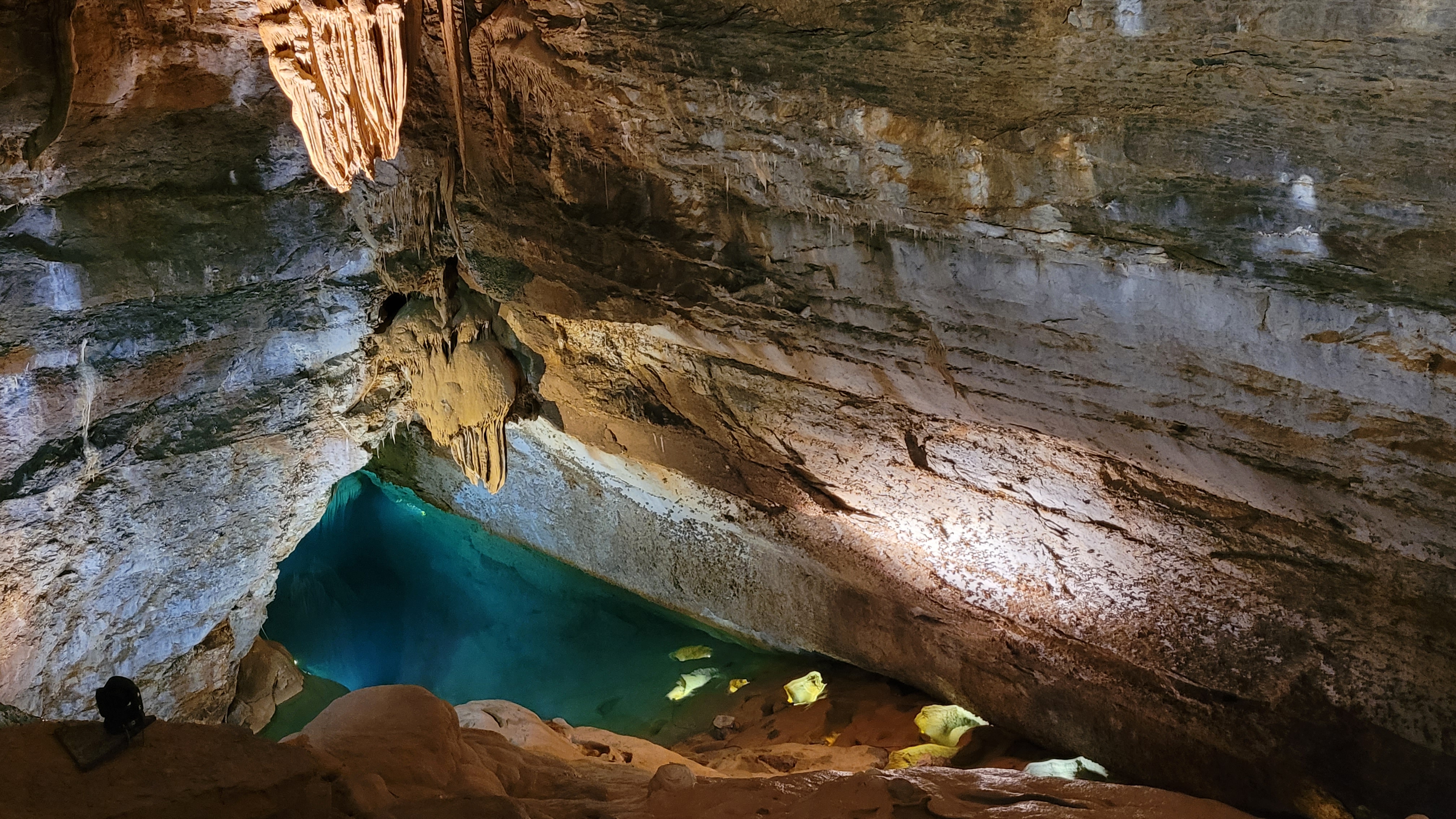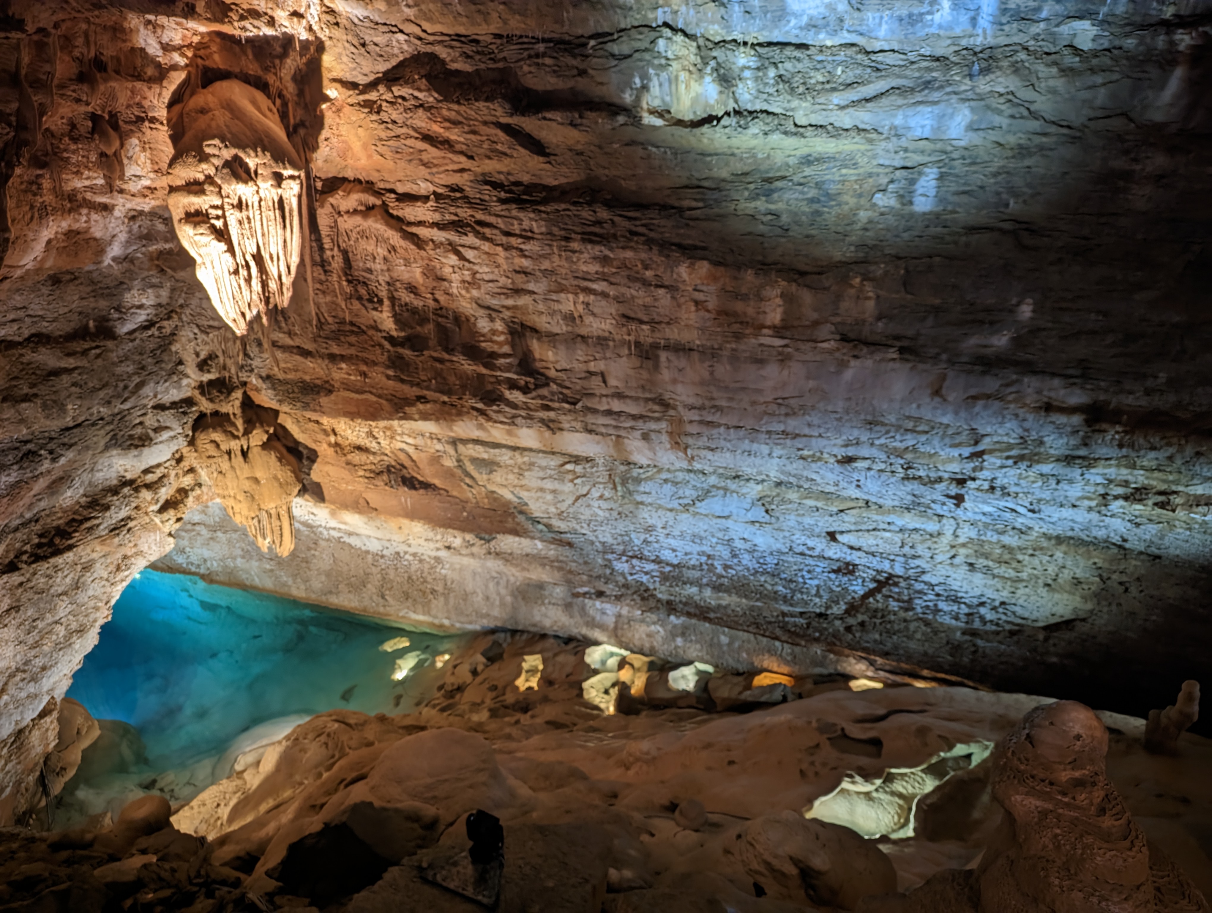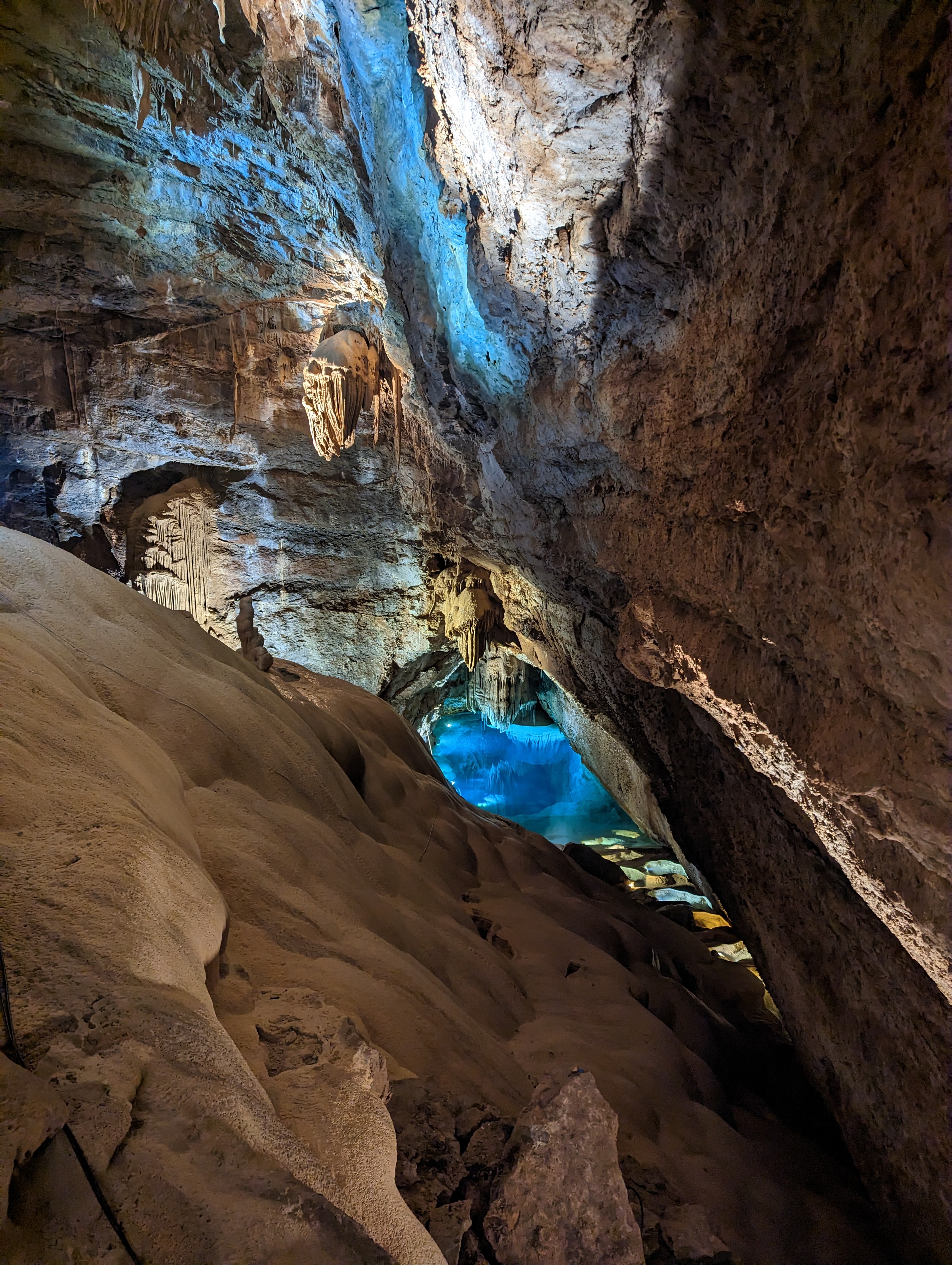 Lieu à visiter près du musée du désert. Un excellent accueil et de très bons guides . Particularité de cette grotte, un lac souterrain avec une parfaite scénographie. De très belles photos à faire.