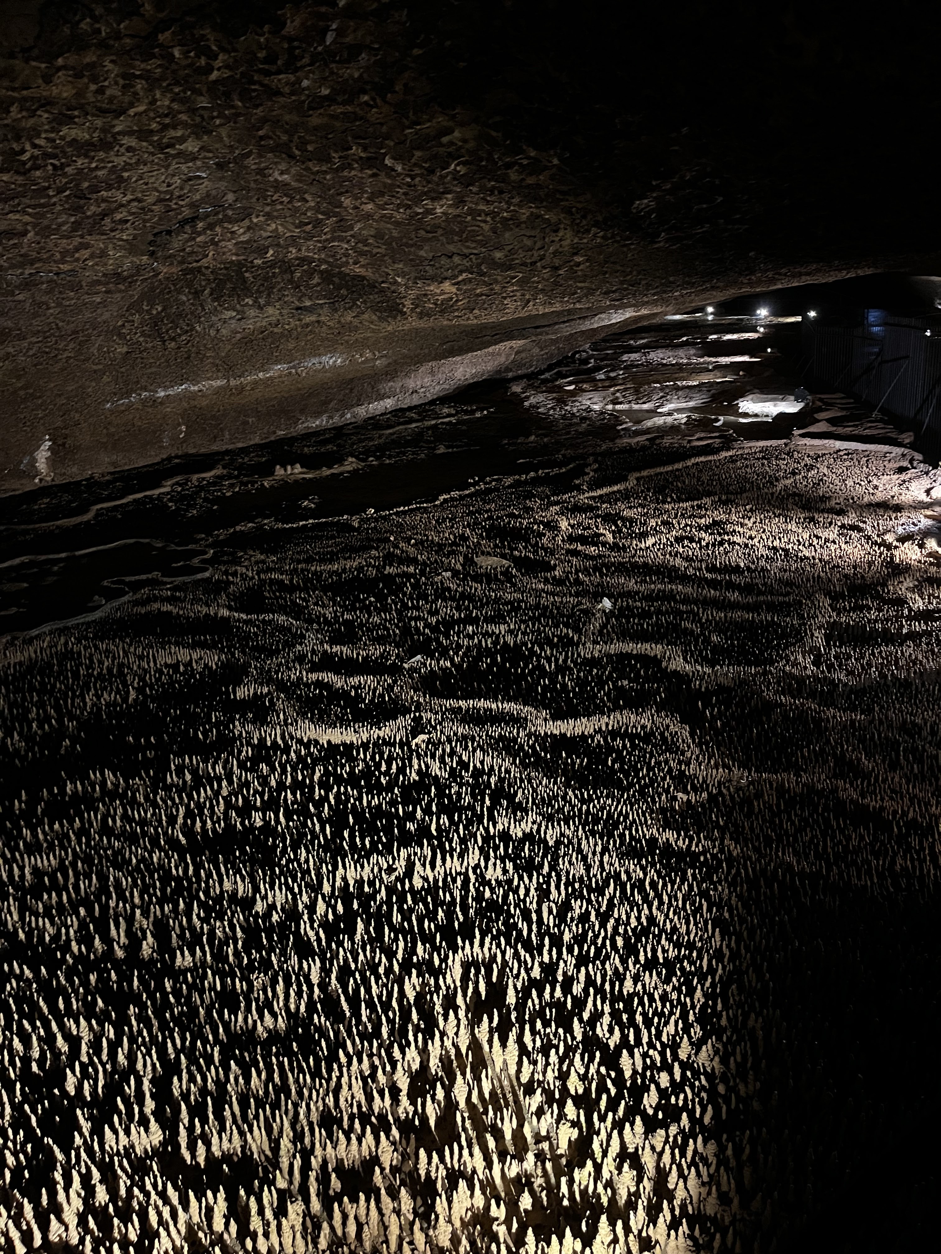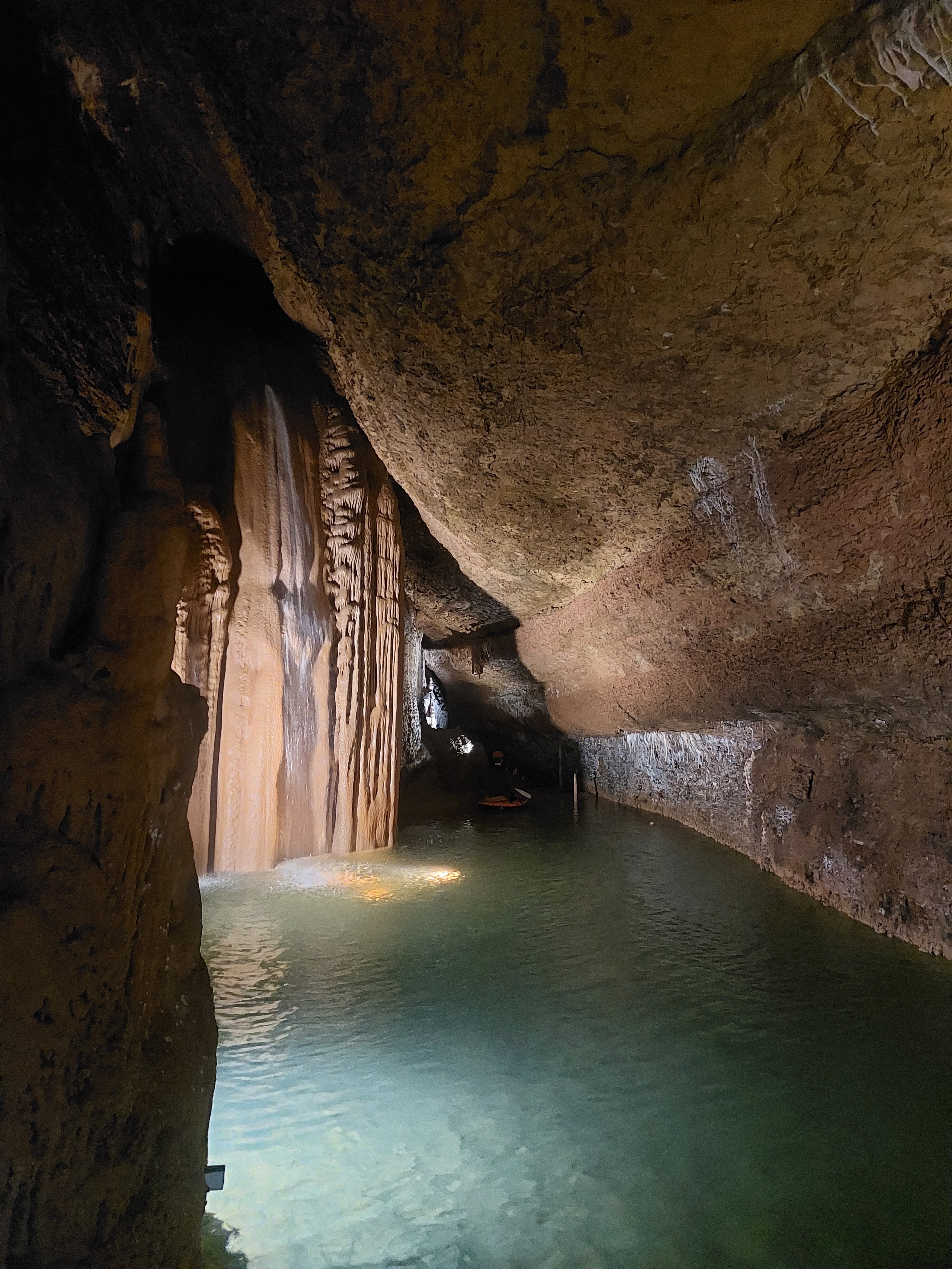 Grotte très intéressante, avec des commentaires réguliers et une musique d'ambiance particulièrement bien adaptée au clapotis de l'eau qui ruisselle : cascades jusqu'au somptueux lac de Minuit aux eaux turquoises. Une particularité géologique à découvrir : les 100 000 soldats.