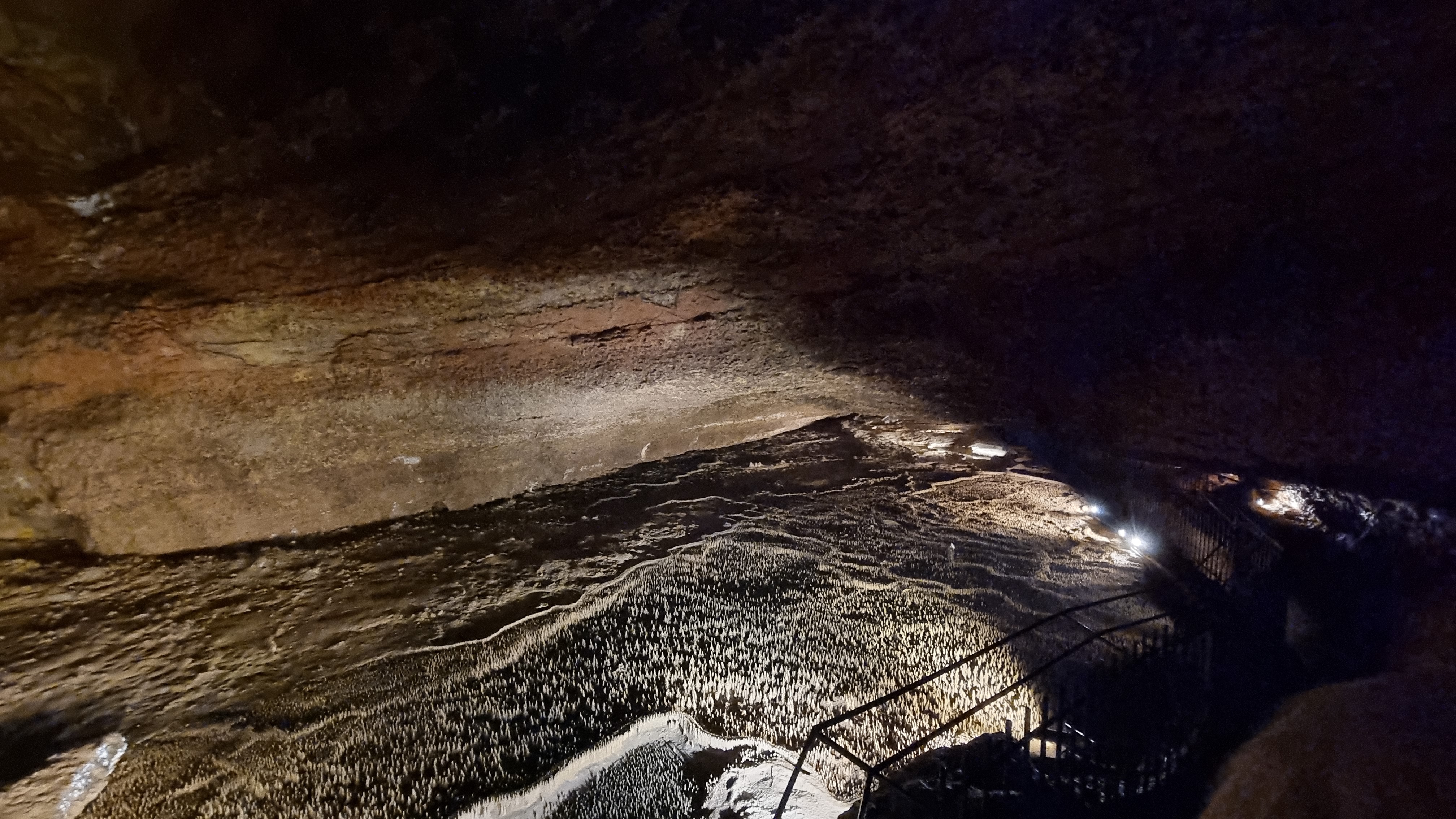 J'ai pris quelques images sur mon hero5 et il a vraiment capturé l'endroit. 14 degrés C et 95% d'humidité... c'était frais mais tellement rafraîchissant. Vraiment calme quand nous y sommes allés. Les escaliers sont raides, alors assurez-vous de tenir bon... envisagez même une lampe frontale si votre pauvre pied juste pour vous aider. Je ne dis pas qu'il est mal éclairé, plus pour aider. Nous avons fait la visite audio et c'était vraiment instructif. J'y retournerais