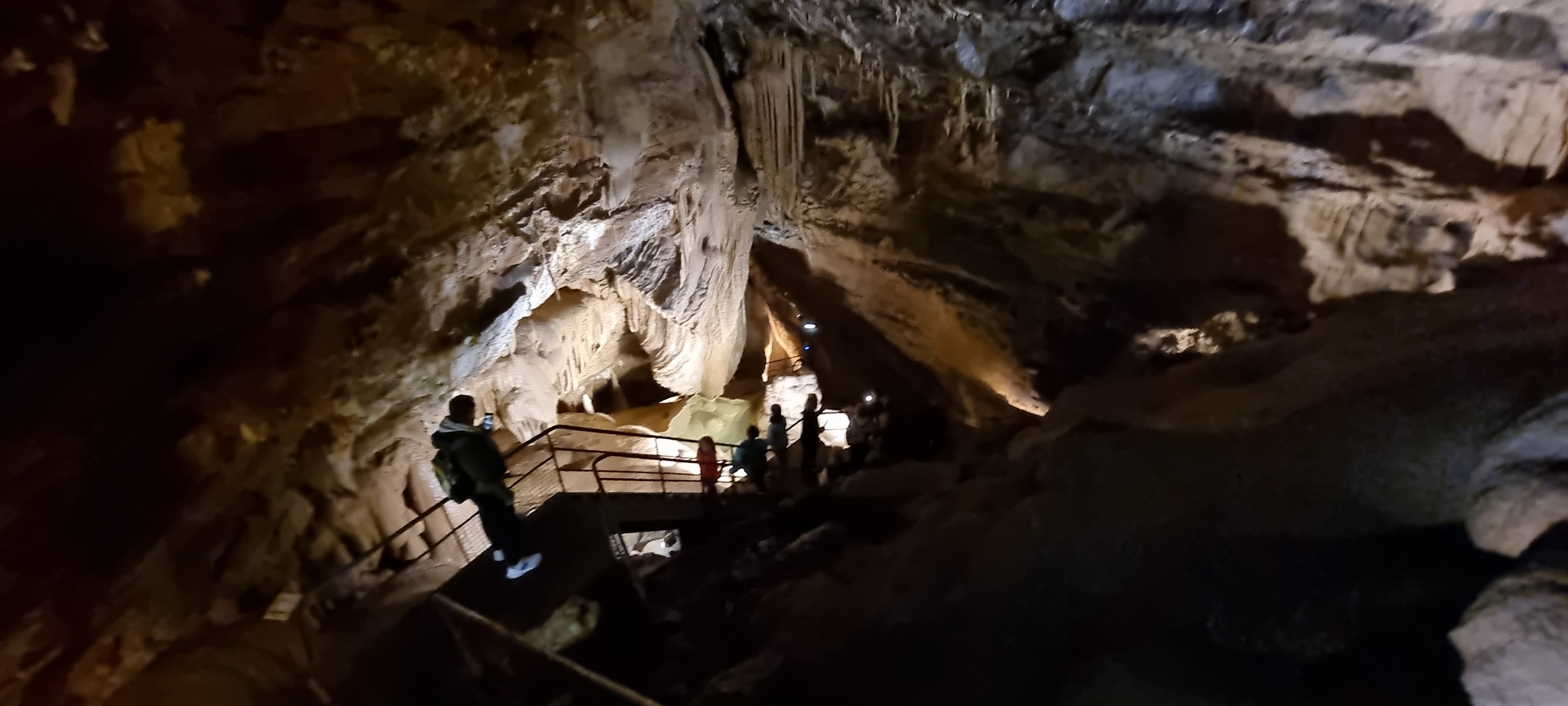 Belle grotte, victime de son succès en été. Il aurait été plus qualitatif pour tout le monde d'éviter d'empiler des gros groupes de 70-80 personnes à l'intérieur; dans cette configuration, ceux du fond ne peuvent pas toujours entendre les explications du guide, les groupes se croisent dans les escaliers souterrains, et l'on se retrouve facilement à 200-300 personnes au fond de la grotte; à privilégier pour les premières visites de la journée, ou hors-saison.