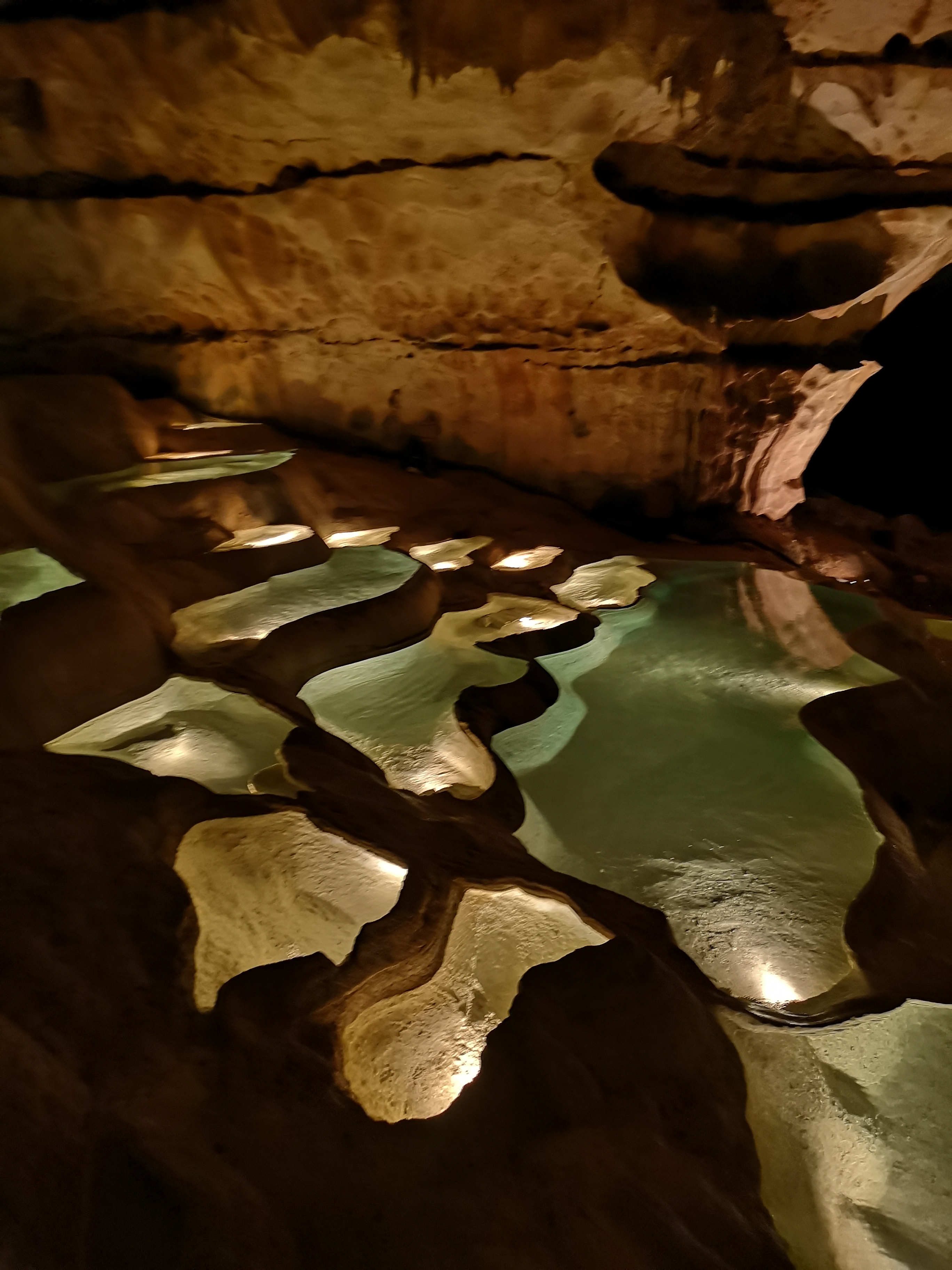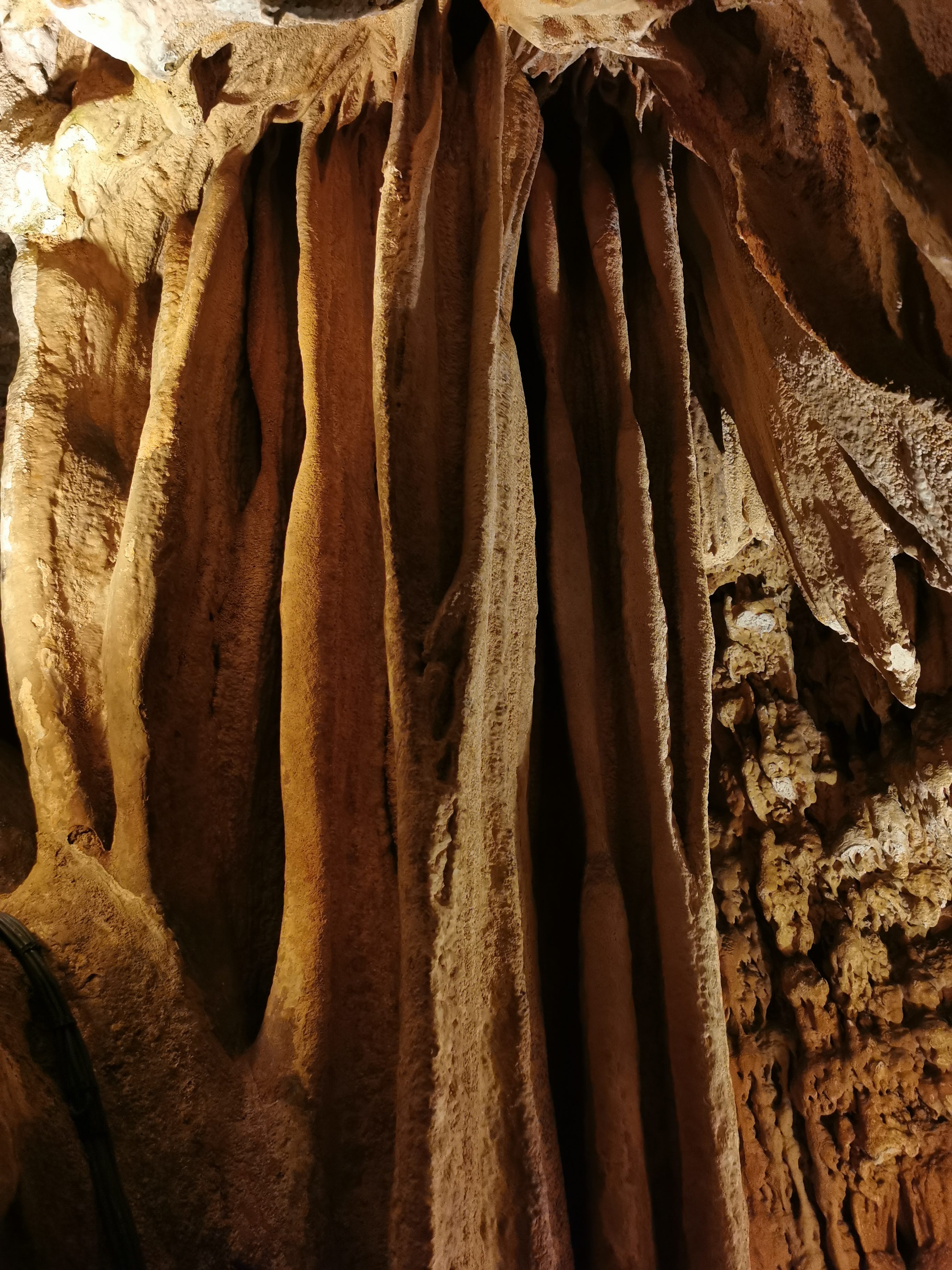 Toutes les grottes se ressemblent et toutes ont des différences. Dommage, pas de guides les après-midi. La première salle immense, avec des traces laissées par l'eau sur les murs, super joli, on dirait du sable. La suivante, petits bassins d'eau qui coule. Ils ont mis des leds couleur, MAGNIFIQUE. Dernier point, un grand merci pour les pièges à guèpes placés près du bar.
