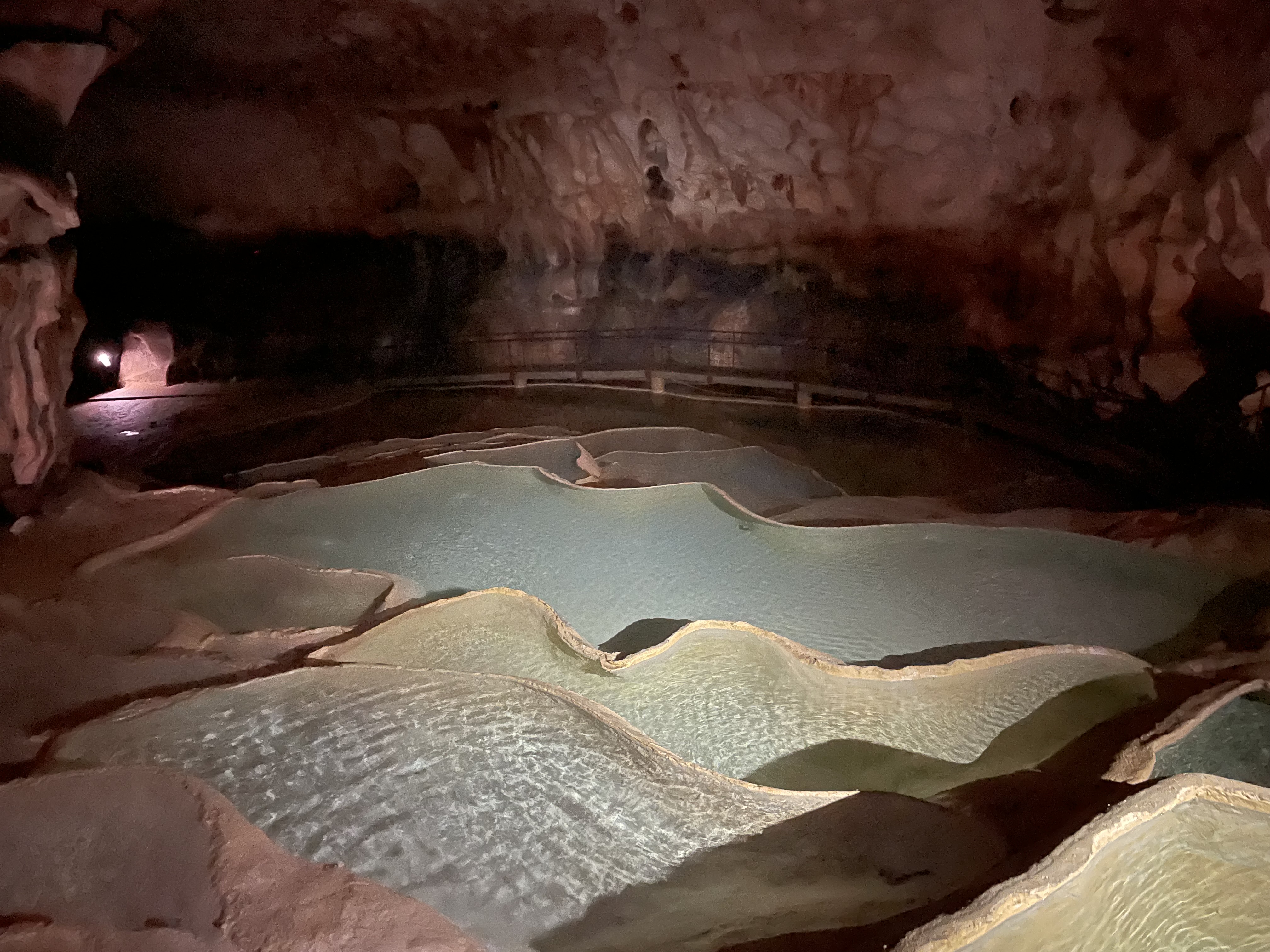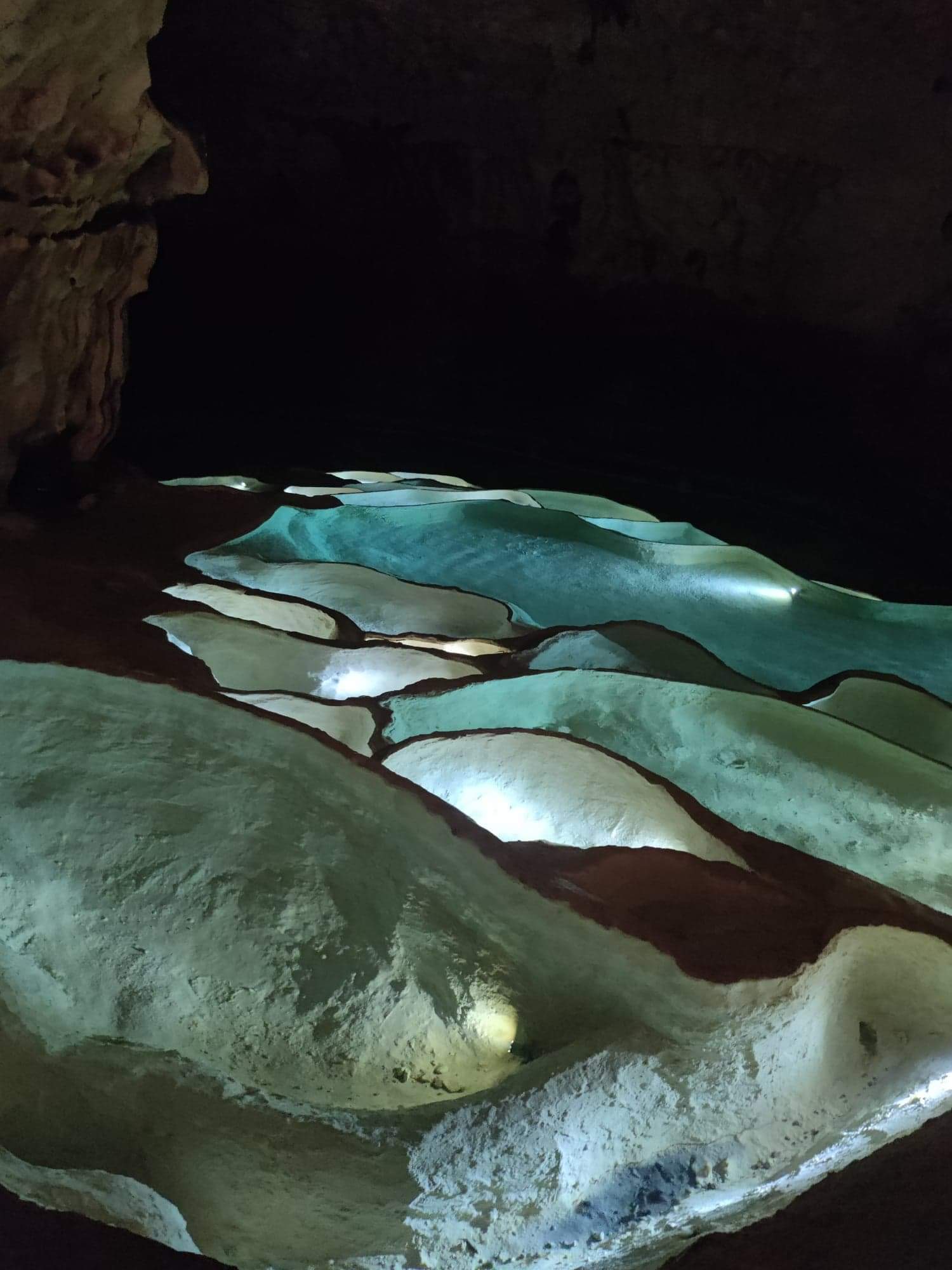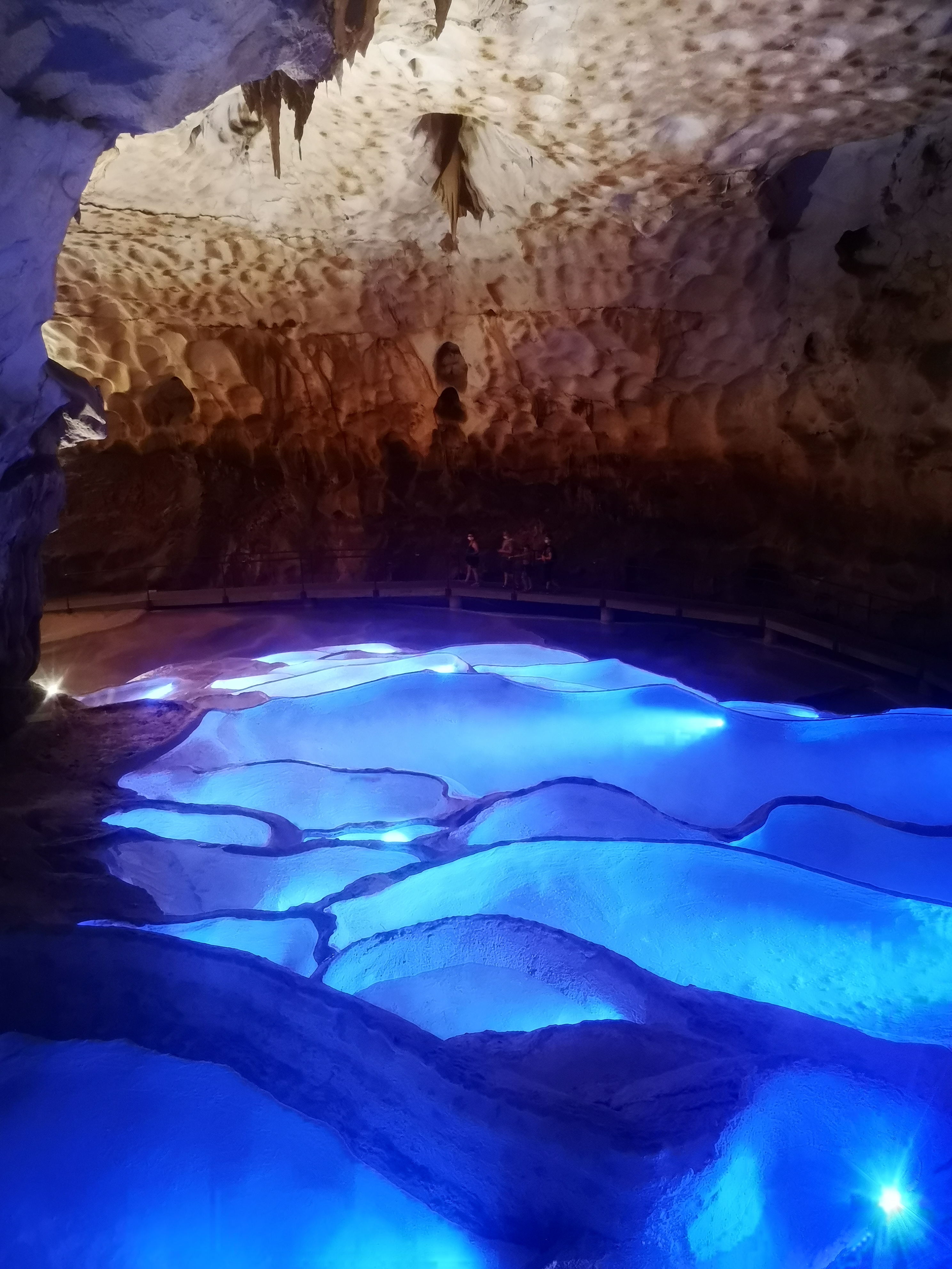 Une belle grotte à voir avec sa cascade de bassins et des guides très intéressants.
