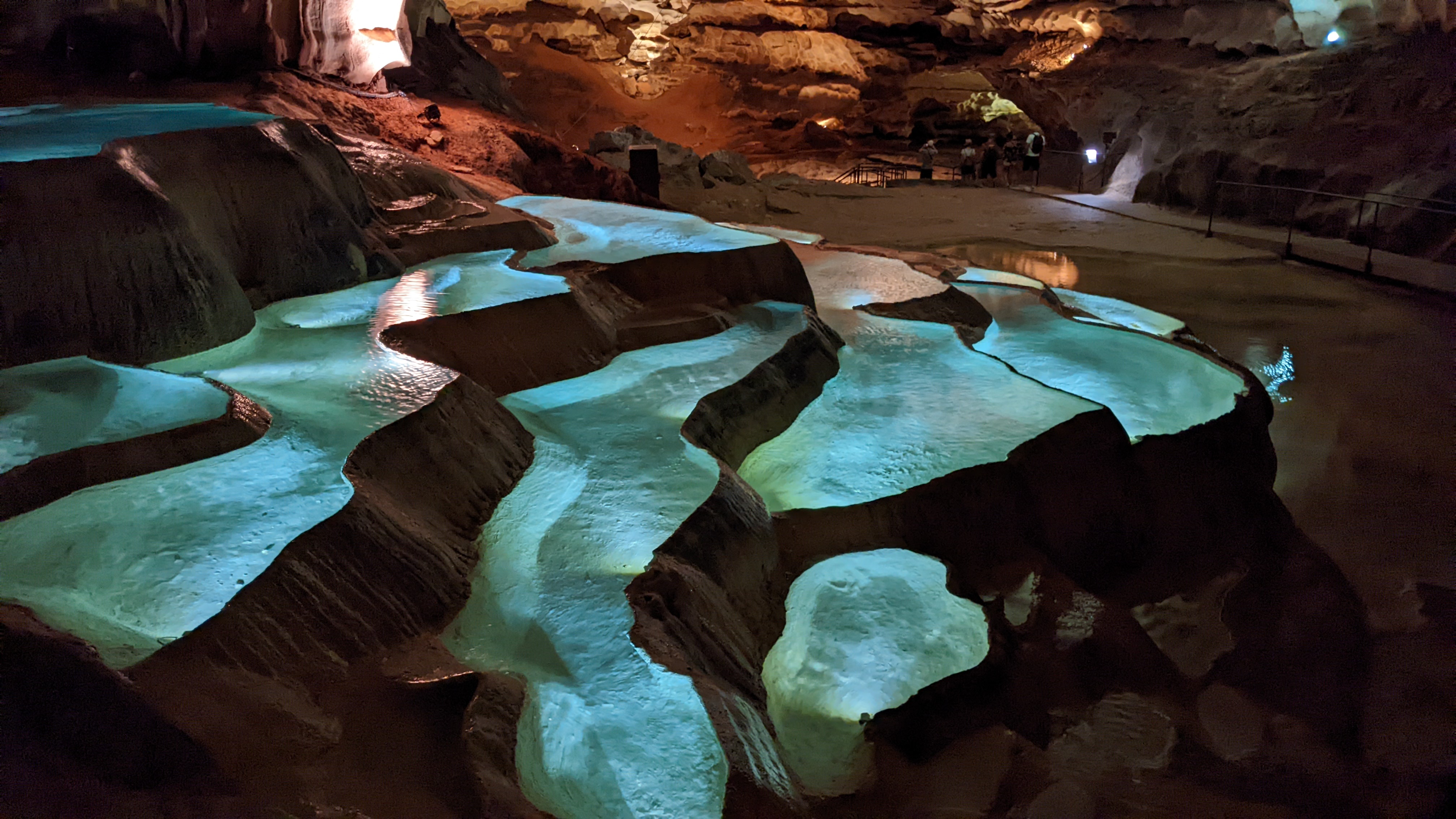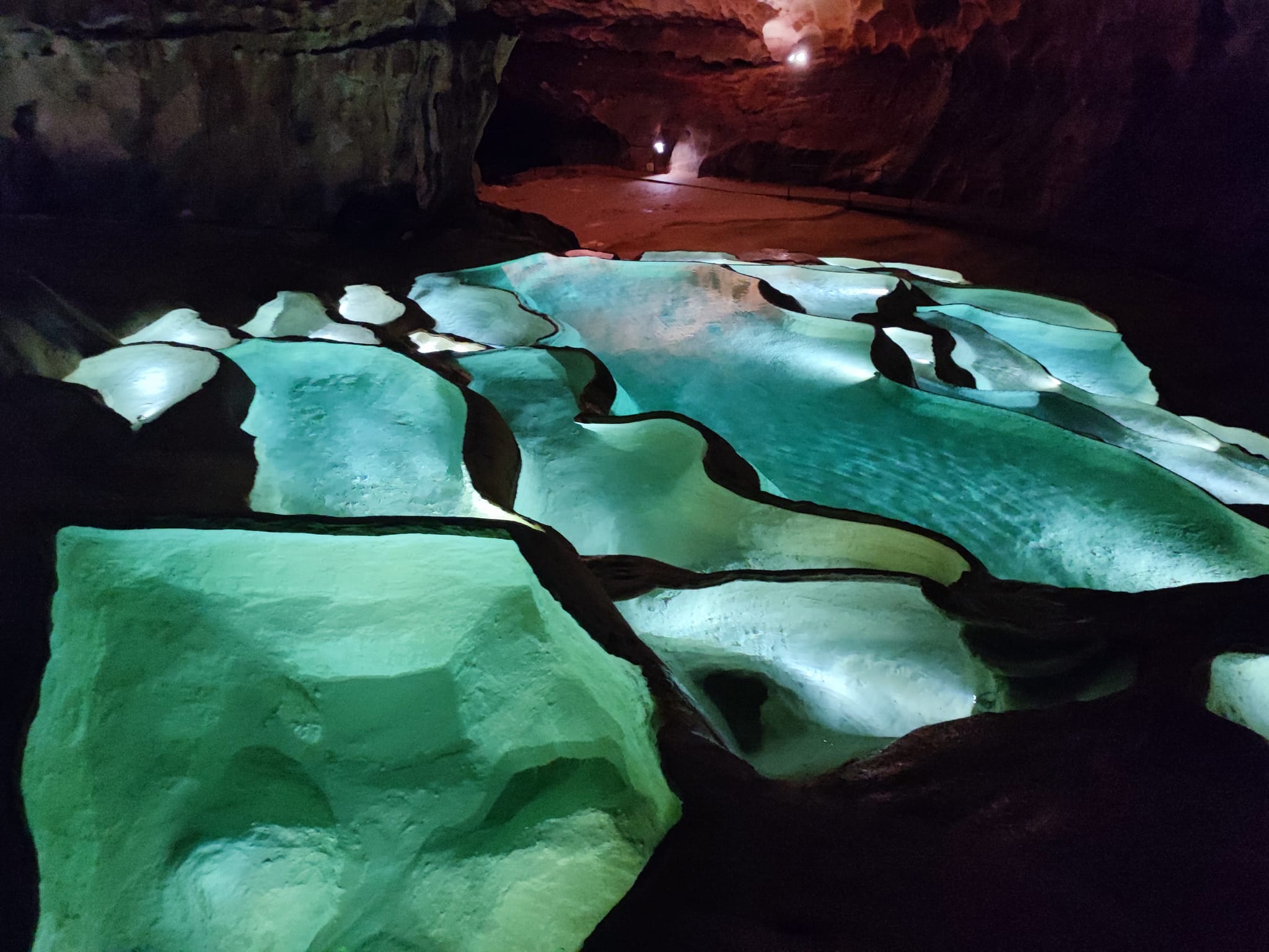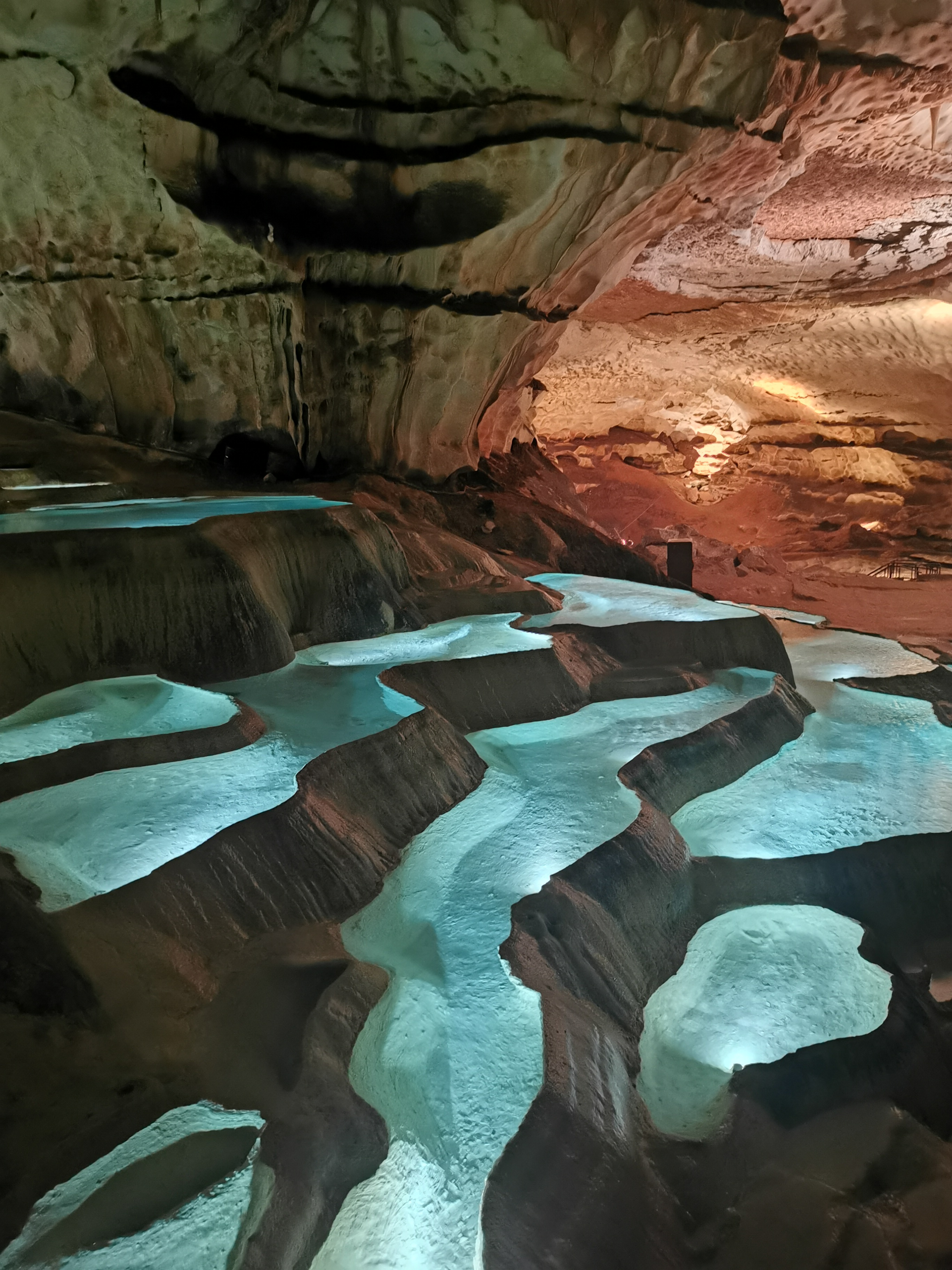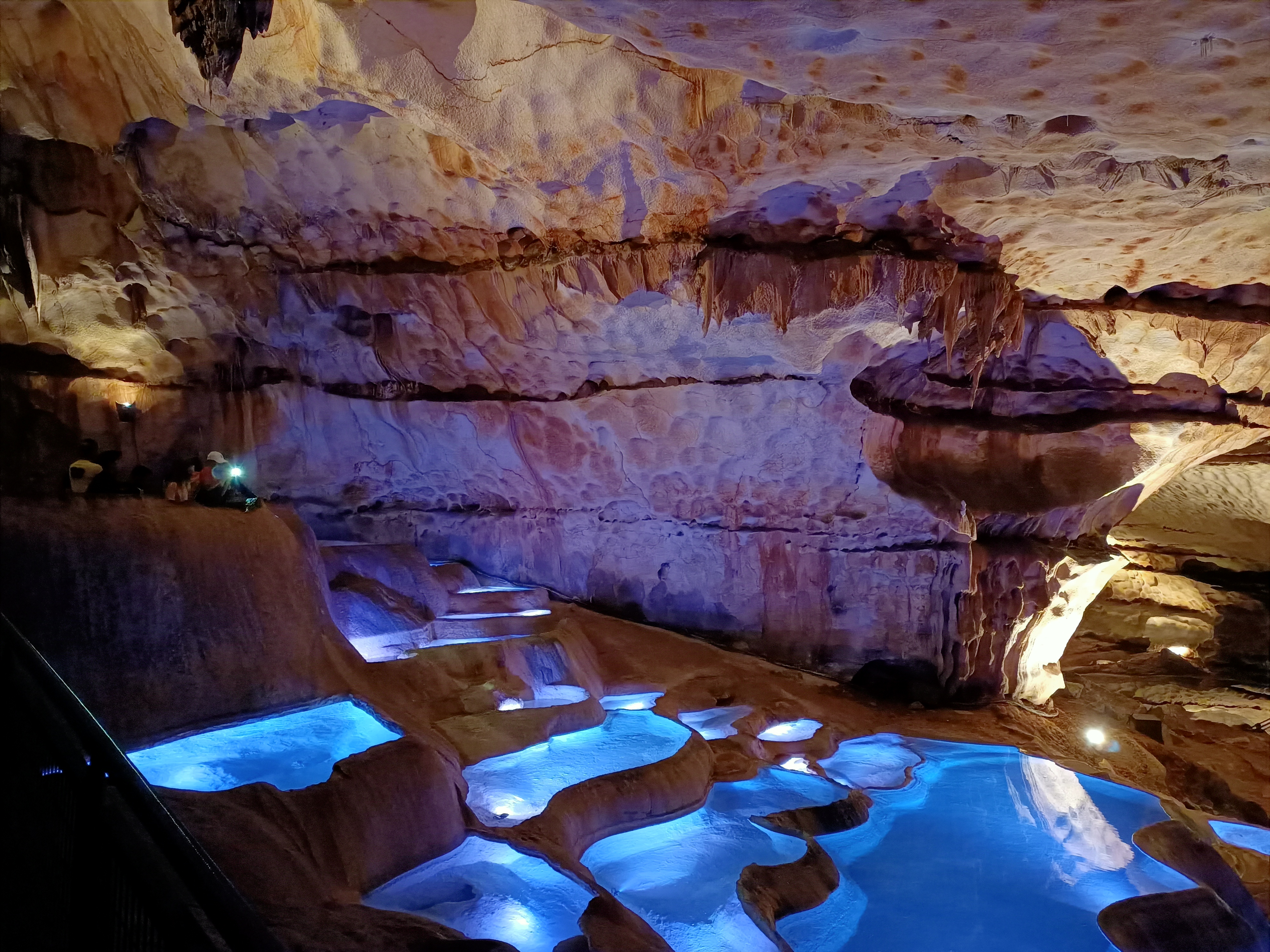 Une belle grotte à voir avec sa cascade de bassins et des guides très intéressants.