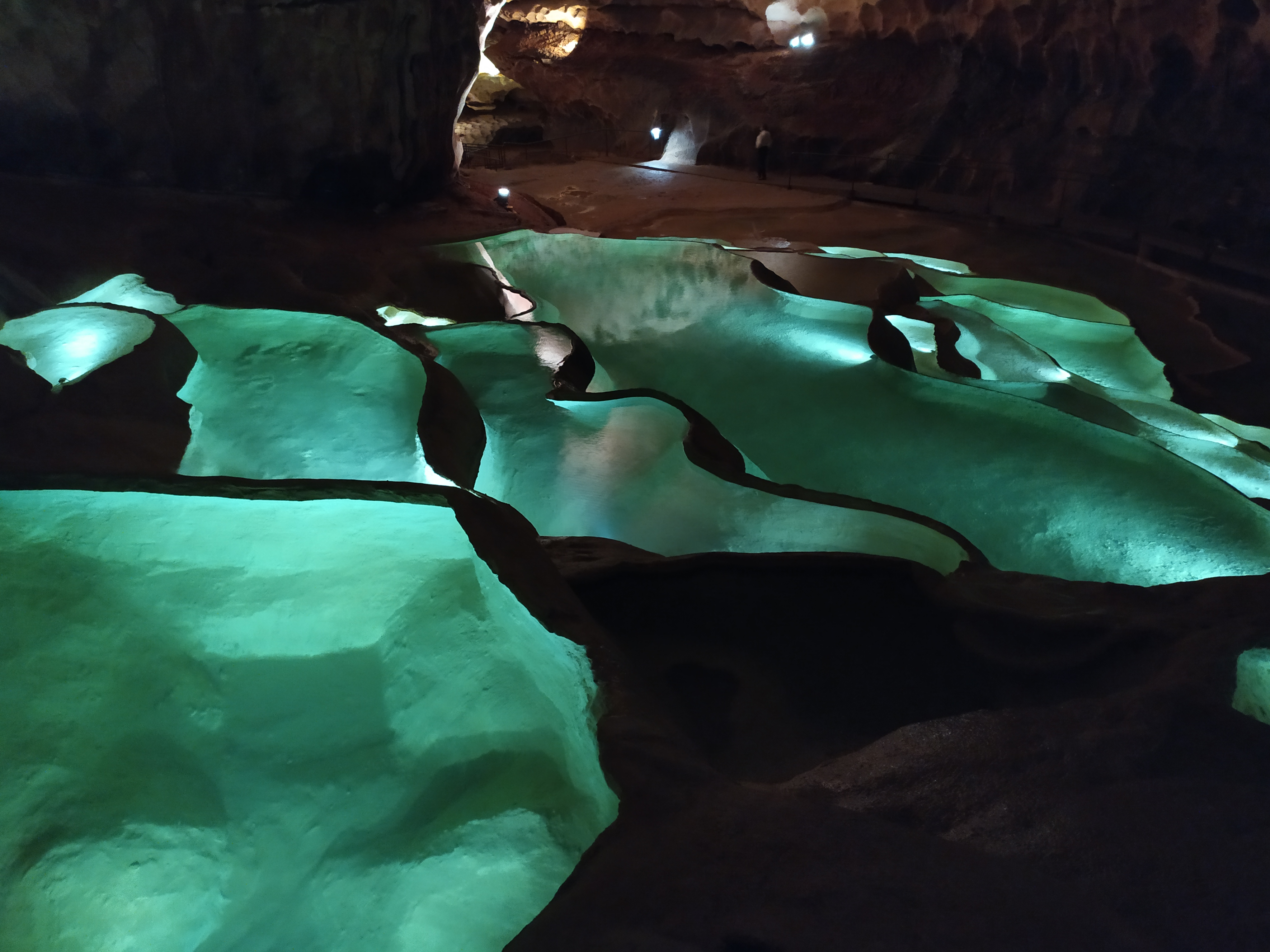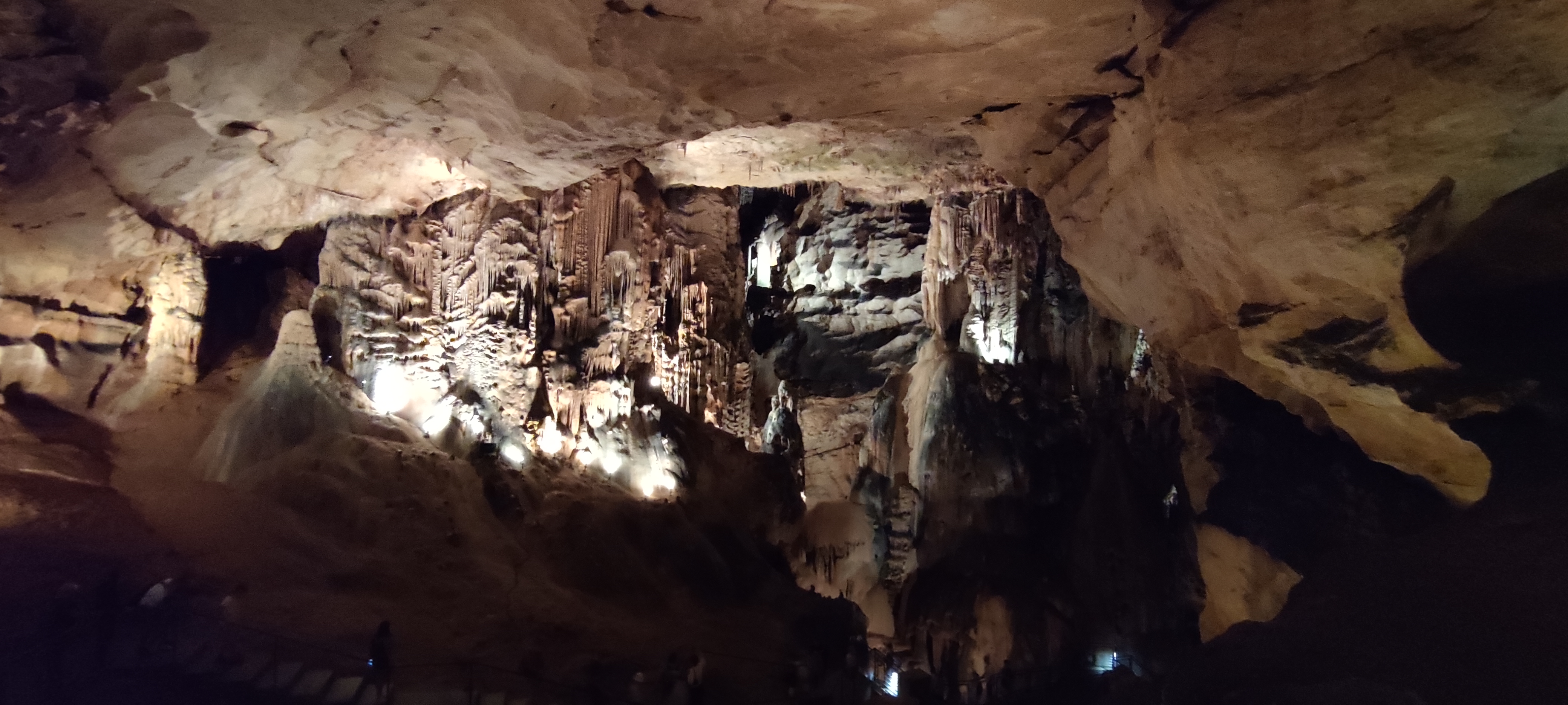 Très belle visite, une balade avec un guide à travers de grands tunnels admirant toutes sortes de formations pierreuses, un spectacle de lumières et de musique et des réservoirs d'eau naturels illuminés. A l'extérieur il y a un petit bar, des toilettes et quelques parkings. Nous n'avons pas réservé et nous avons dû attendre une demi-heure, et même si ce n'était pas la haute saison, il y avait déjà un peu de monde. Un sentier part de la grotte pour une promenade panoramique jusqu'à la colline au-dessus pour un petit tour dans la nature.