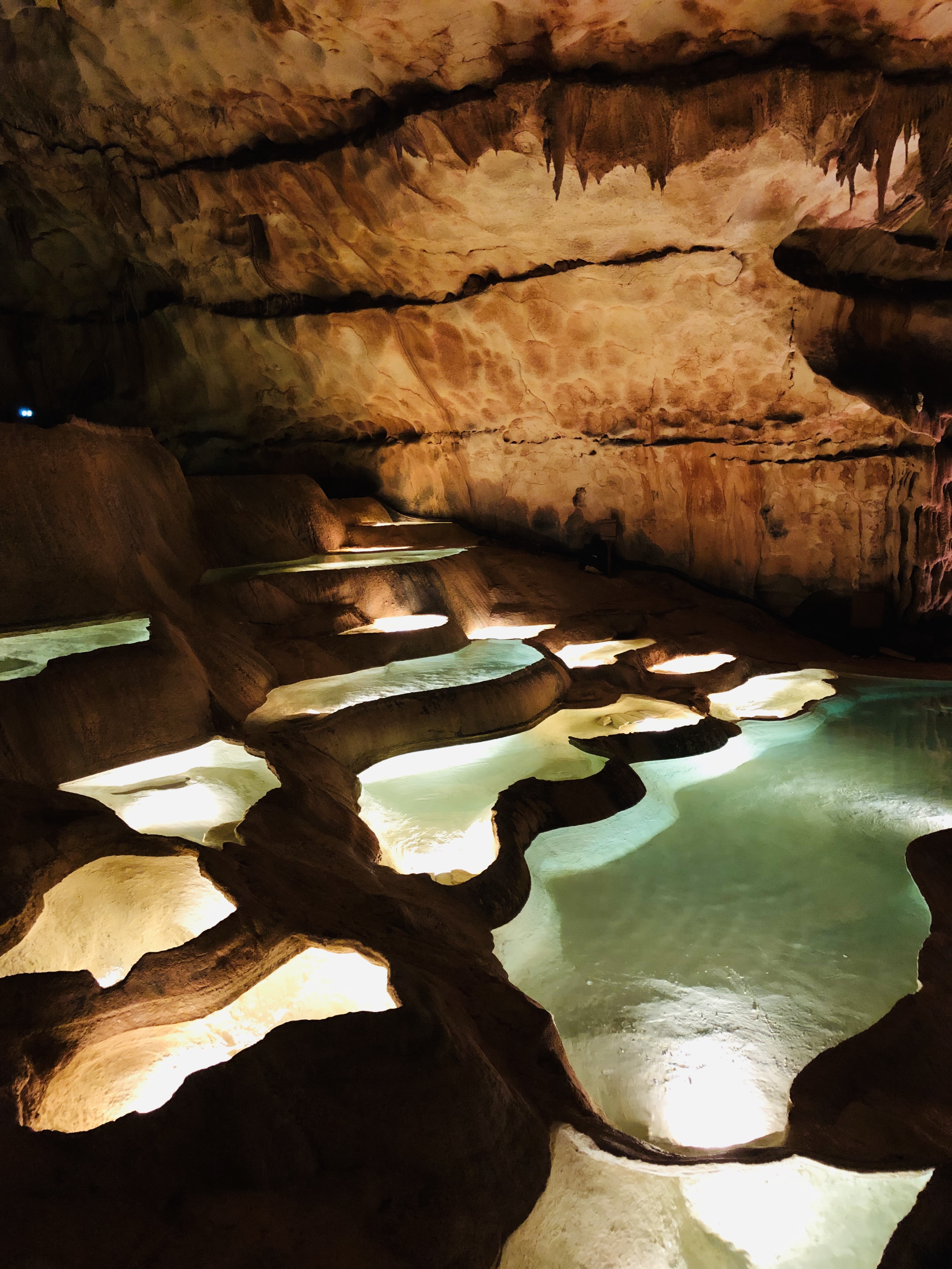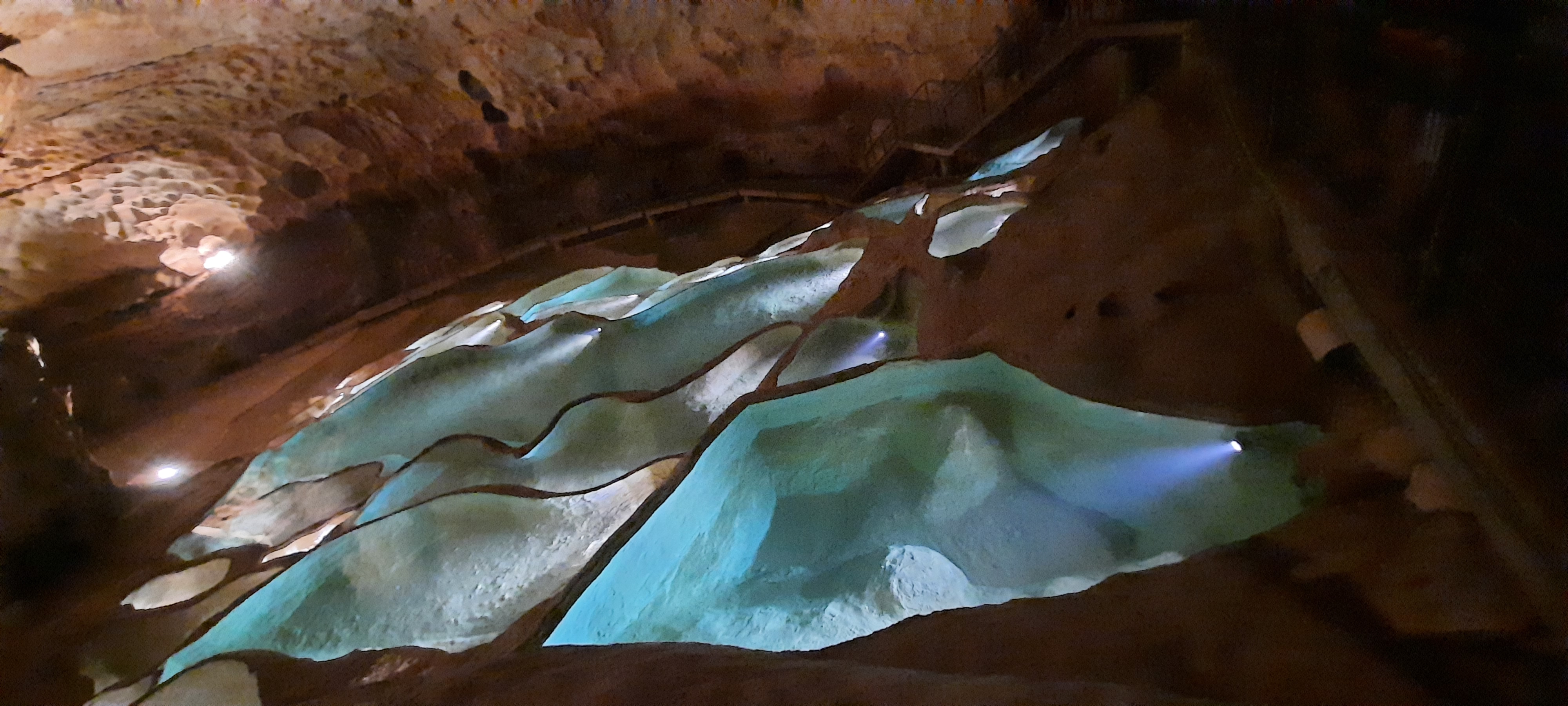 Une visite bien agréable de 1h avec deux spectacle son et lumière l'un dans une grande salle et l'autre près de bassins naturels par contre il faut être 10 minutes avant la visite pour prendre son ticket on descend 70 m sous terre il y a 400 marches aller-retour mais l'endroit est magique