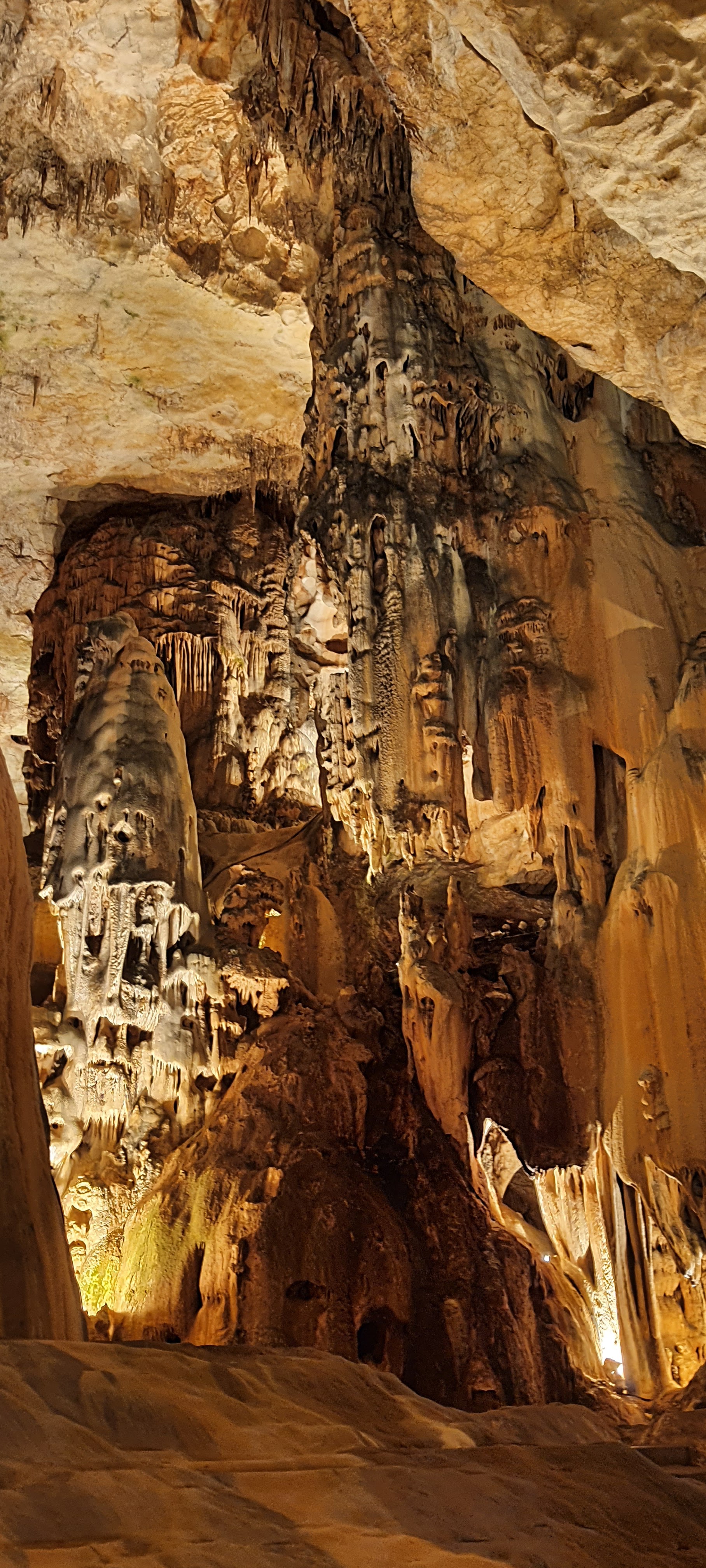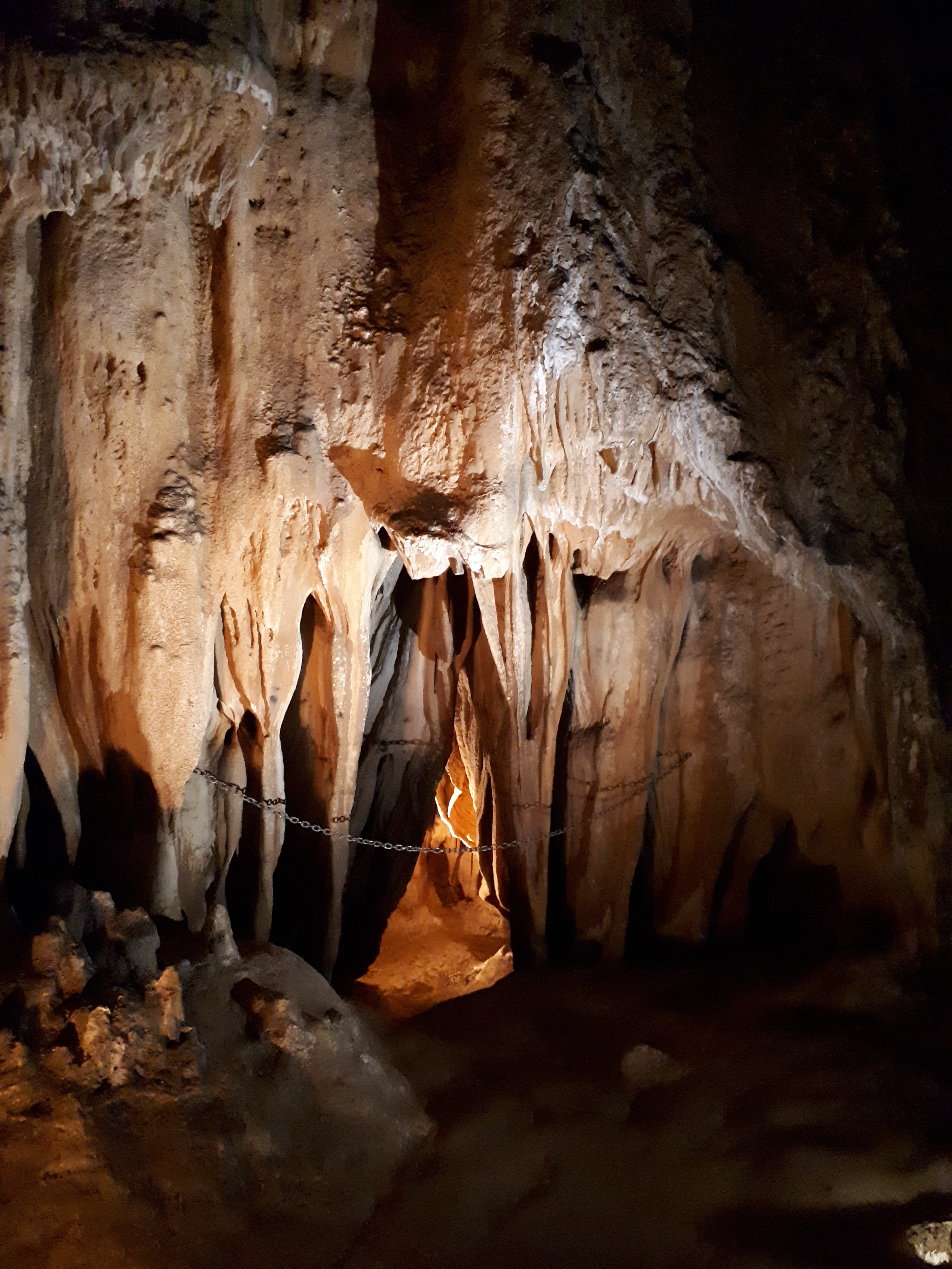 L’entrée de la grotte est assez surprenante ou l’on a l’impression d’entrée dans un tunnel et l’on fini devant une porte de garage. Passé la celle ci la visite de la grotte est magnifique, vous trouverez deux sons et lumières en spectacle avec les draperies en fond. Visite le matin avec un guide et c’est visite libre l’après-midi.
